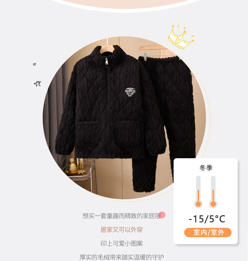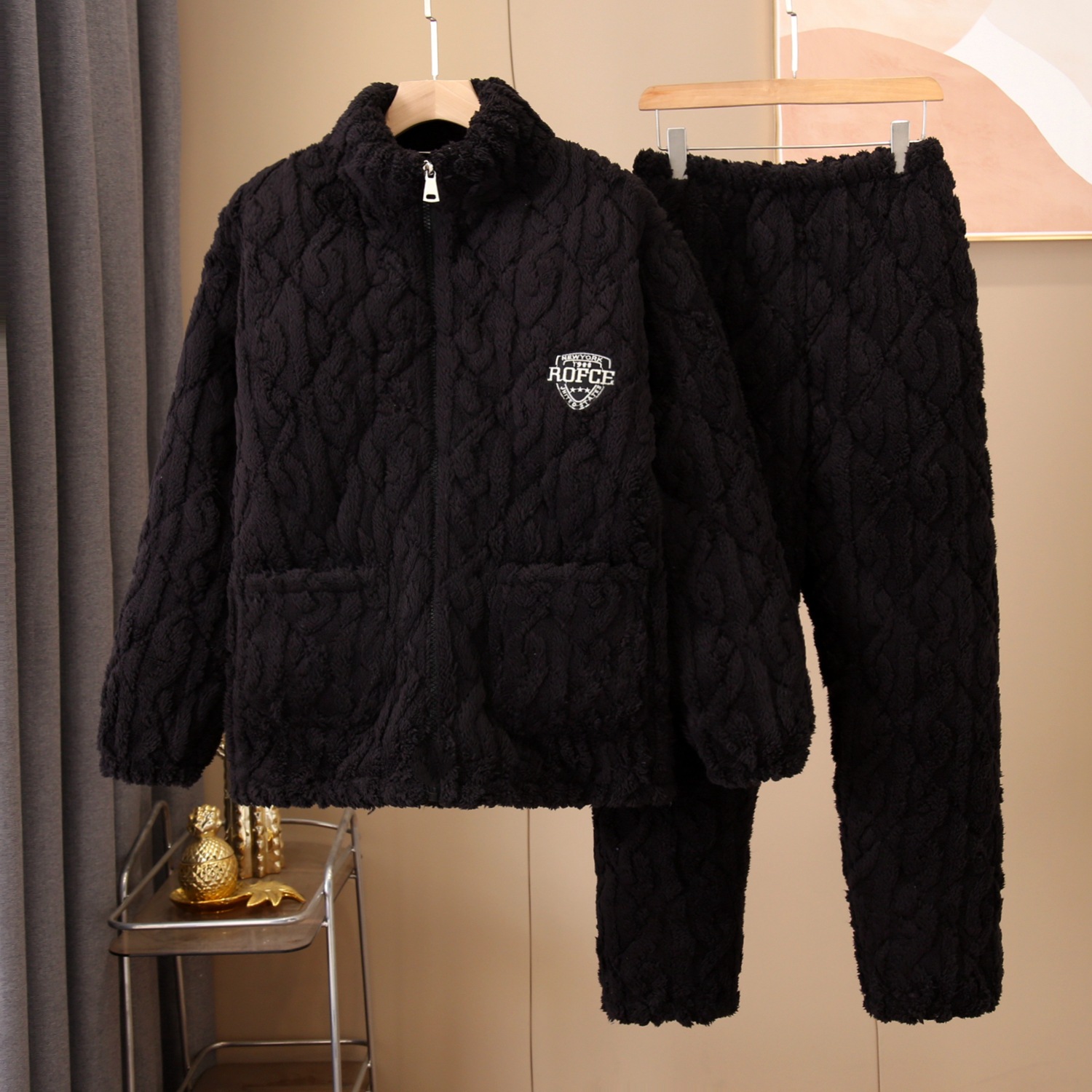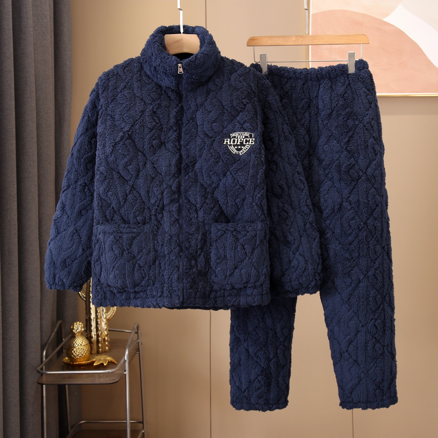 男士冬季三层加厚珊瑚绒夹棉保暖加绒法兰绒秋冬款睡衣家居服套装