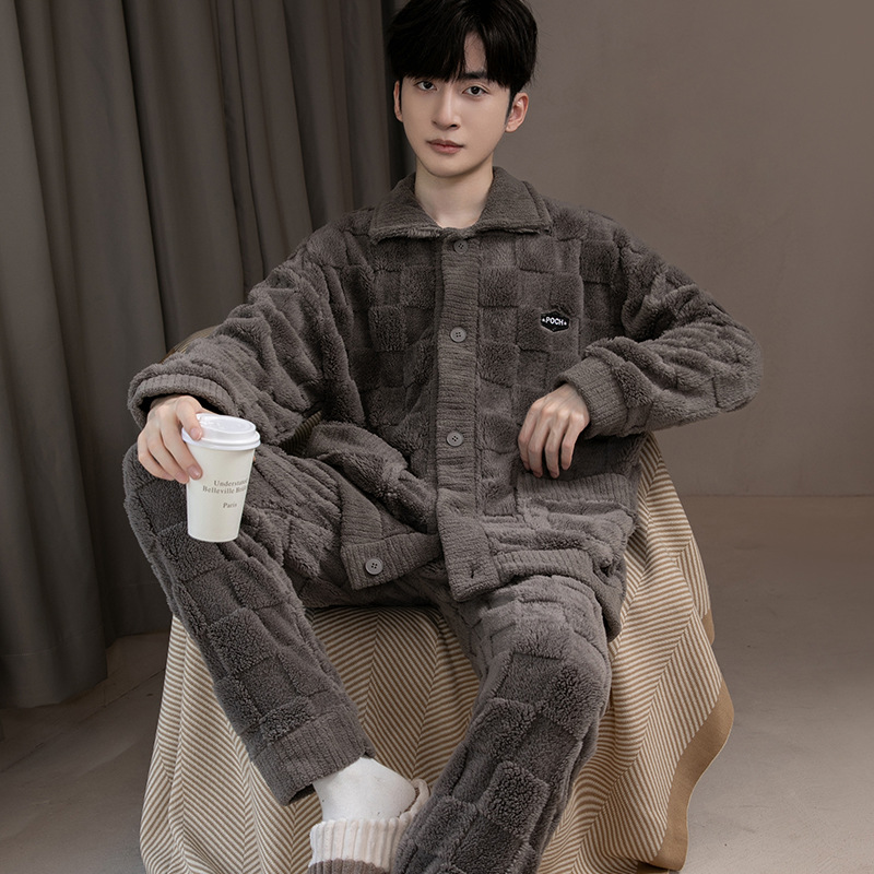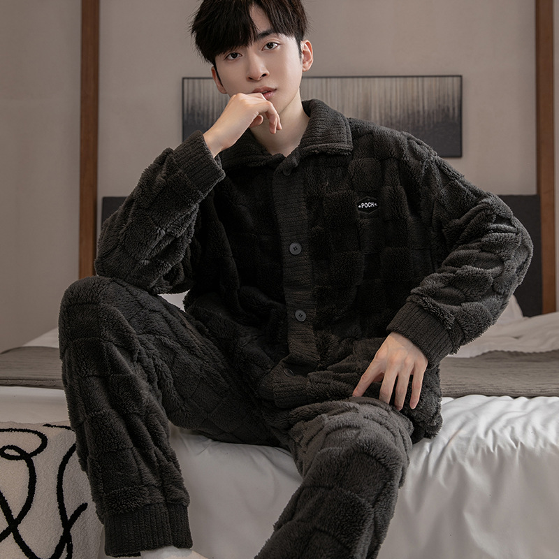 2023新款睡衣男士秋冬季加绒加厚长袖保暖珊瑚绒法兰绒家居服套装