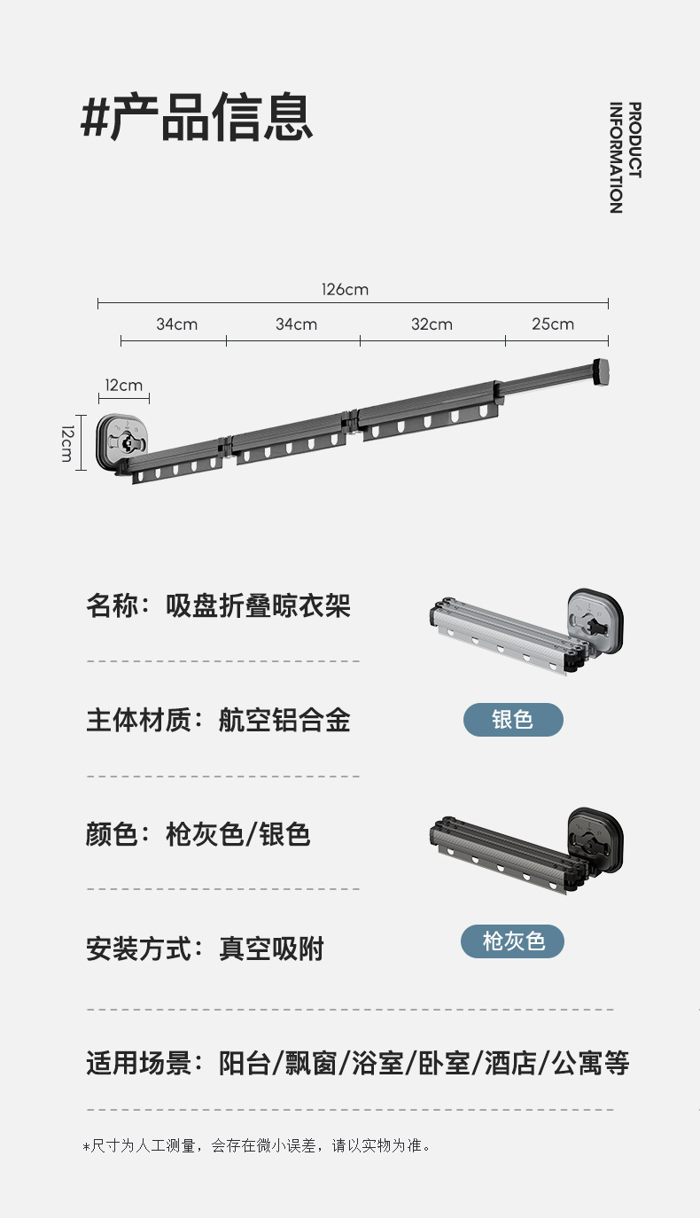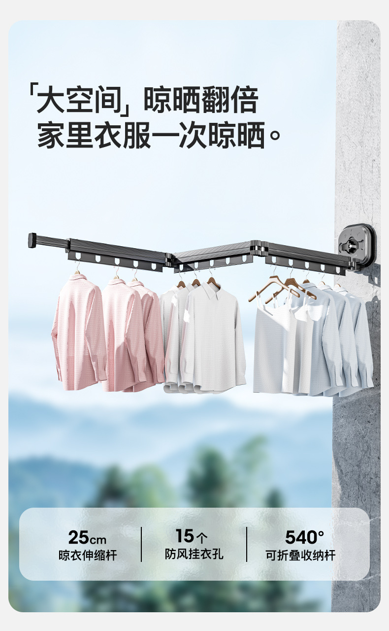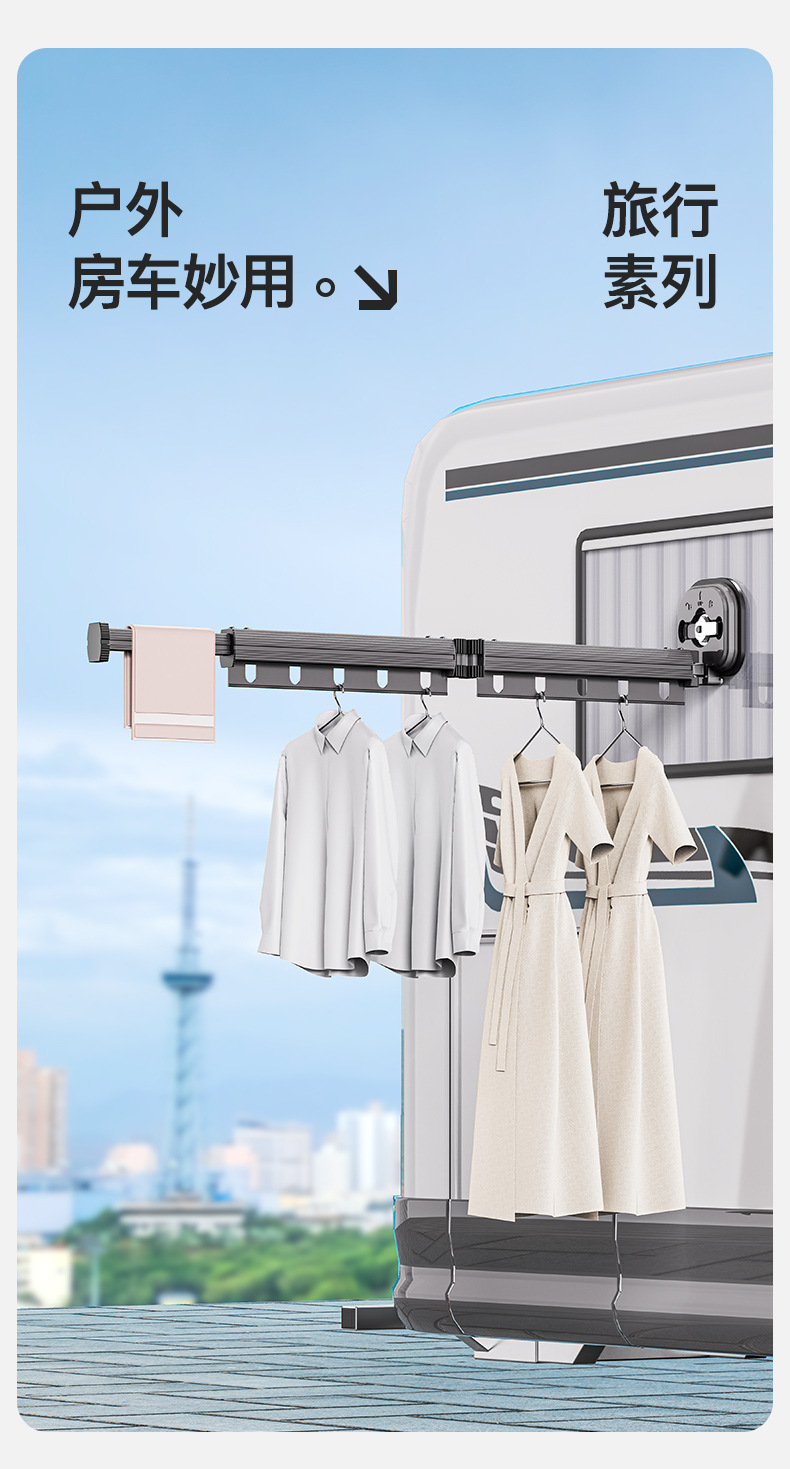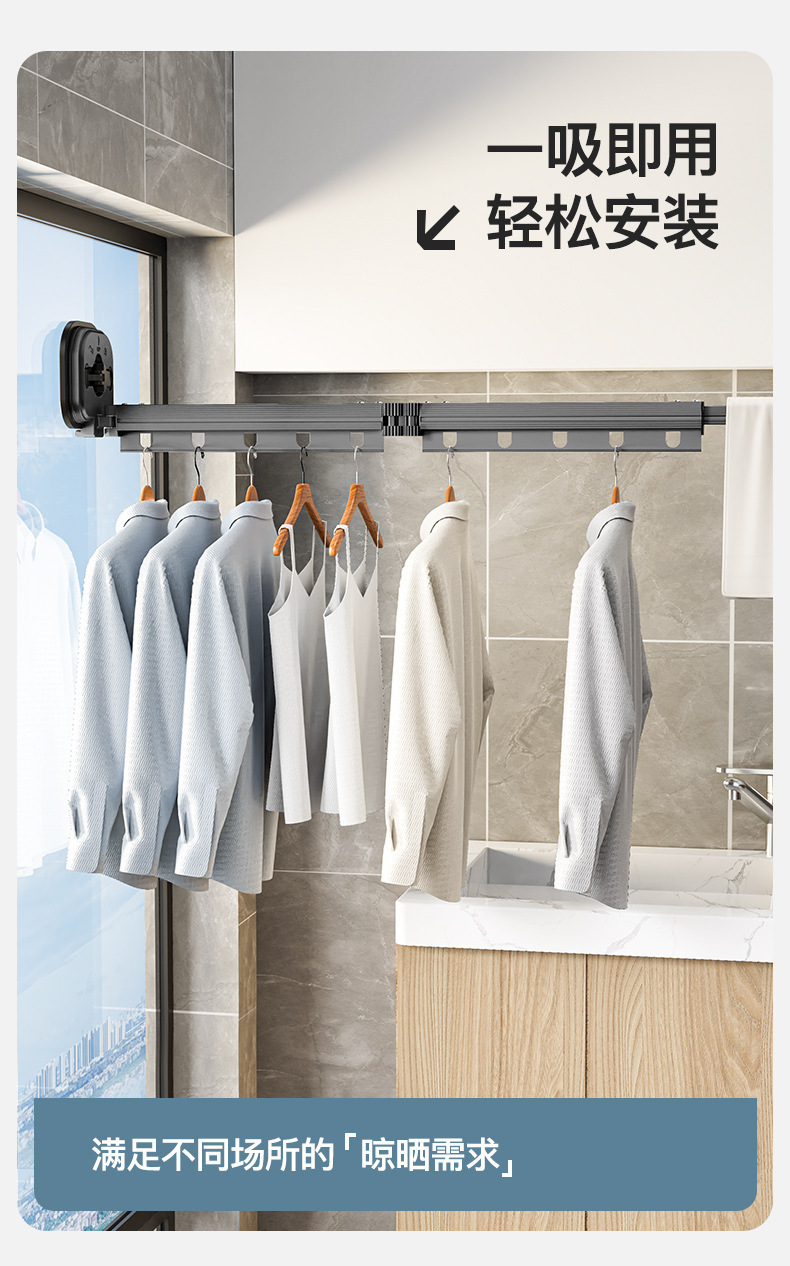 吸盘衣架折叠晾衣架家用阳台窗户免打孔凉衣杆伸缩晾衣杆神器