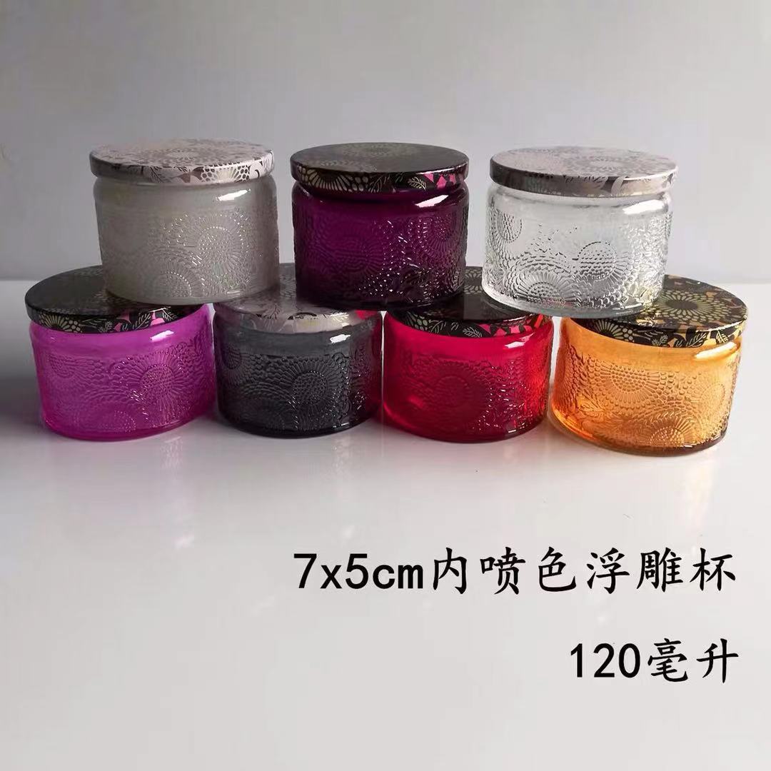 现货星空杯大小浮雕玻璃杯 香薰蜡烛玻璃瓶 彩色蜡烛玻璃罐香薰瓶