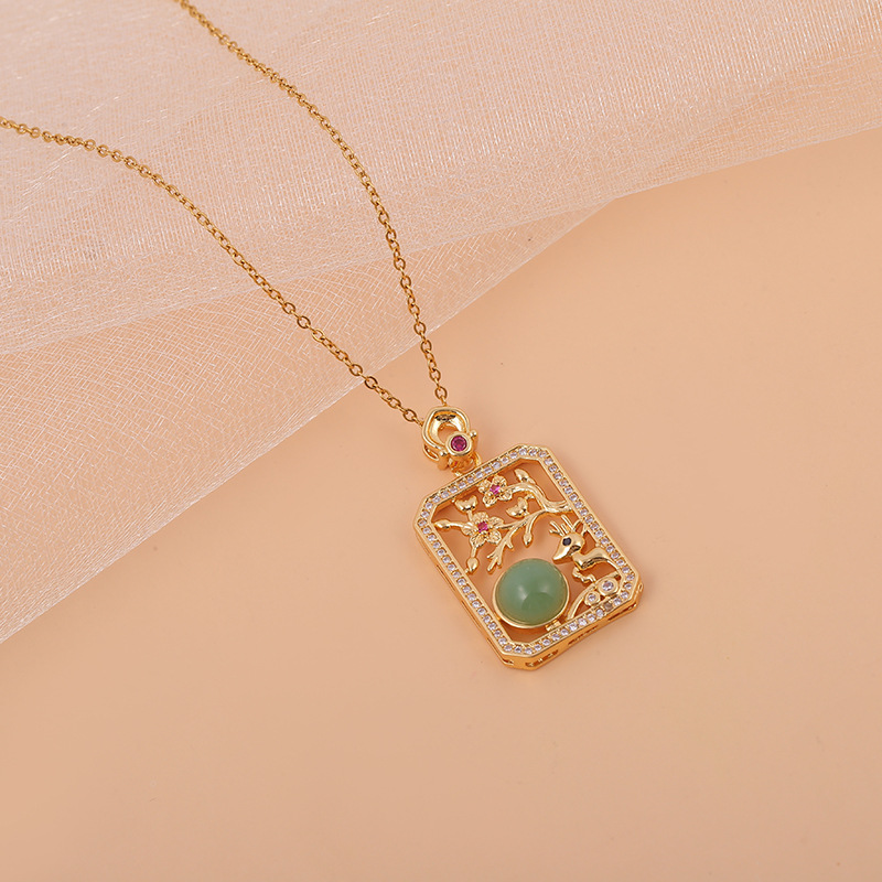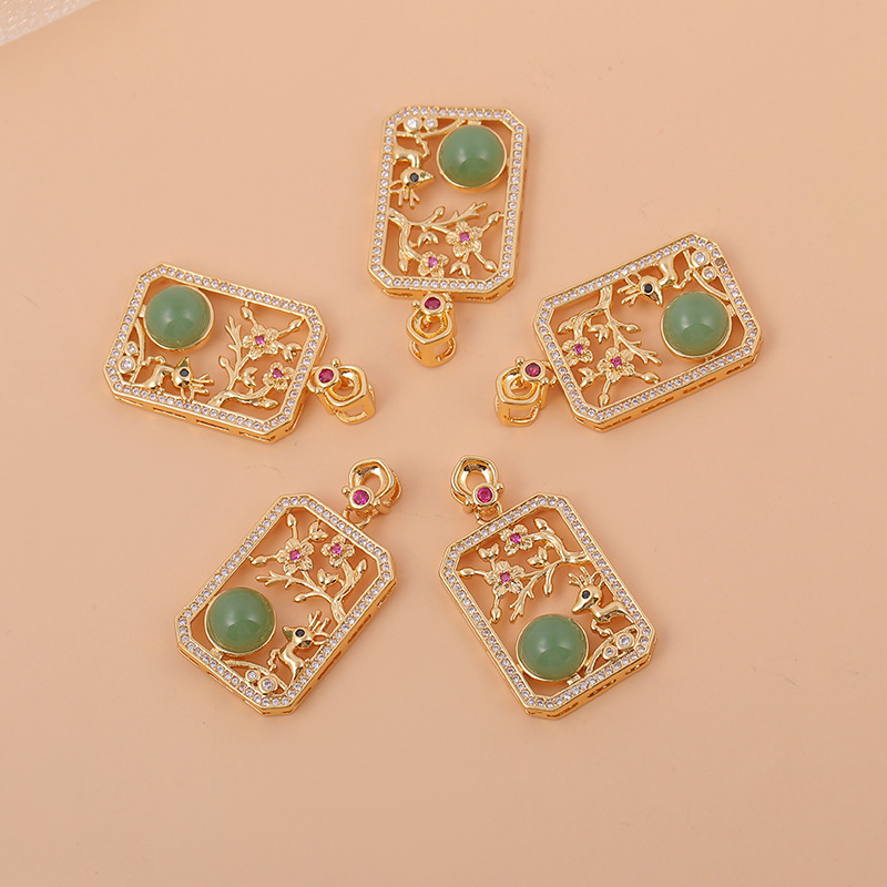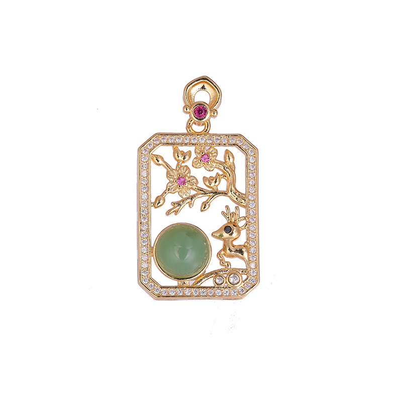 厂家吊坠饰品国风绿珍珠吊坠复古分色珍珠项链吊坠饰品梅花项链女