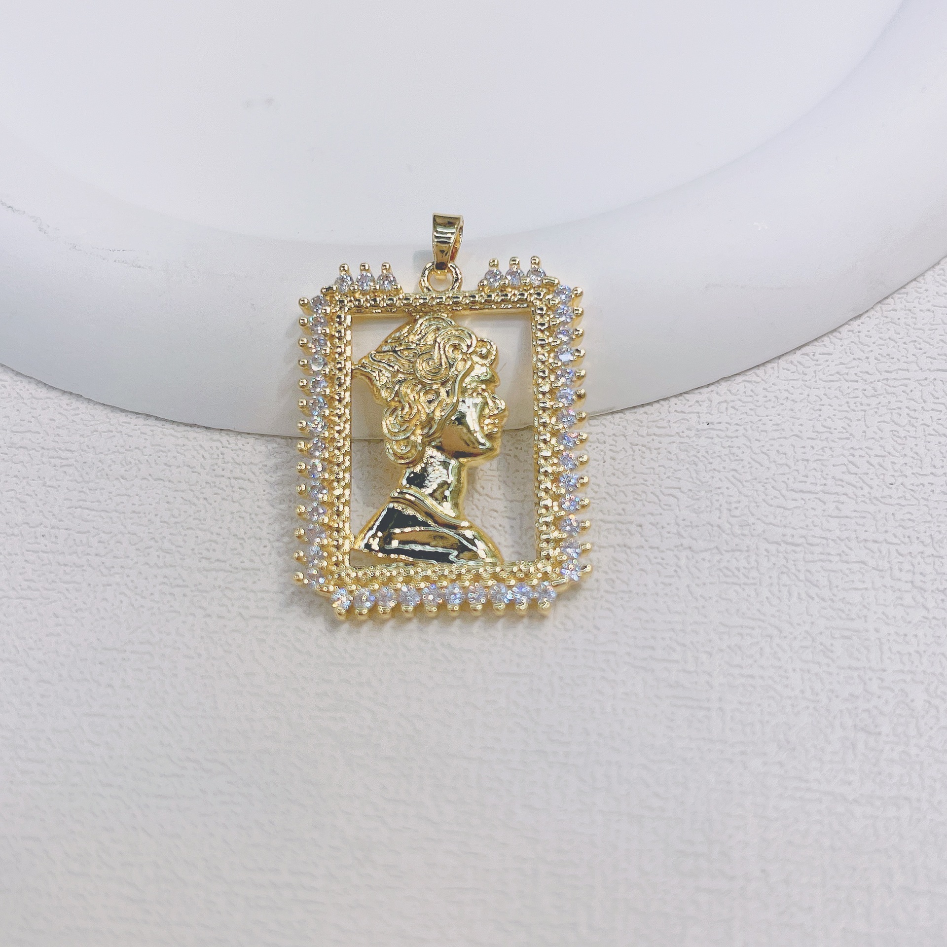 欧美跨境新款人头像铜镶锆石镂空长方小众设计感DIY项链饰品吊坠