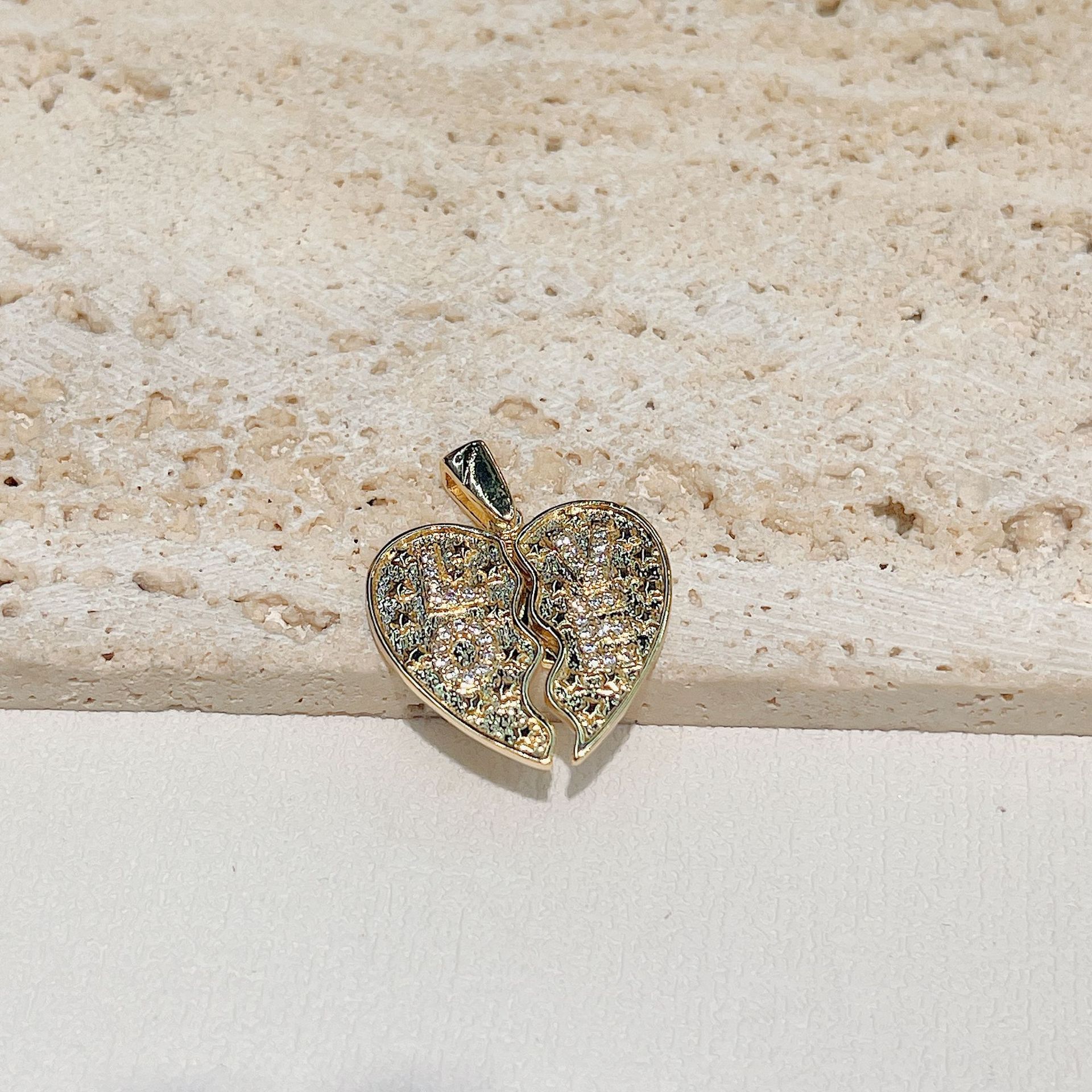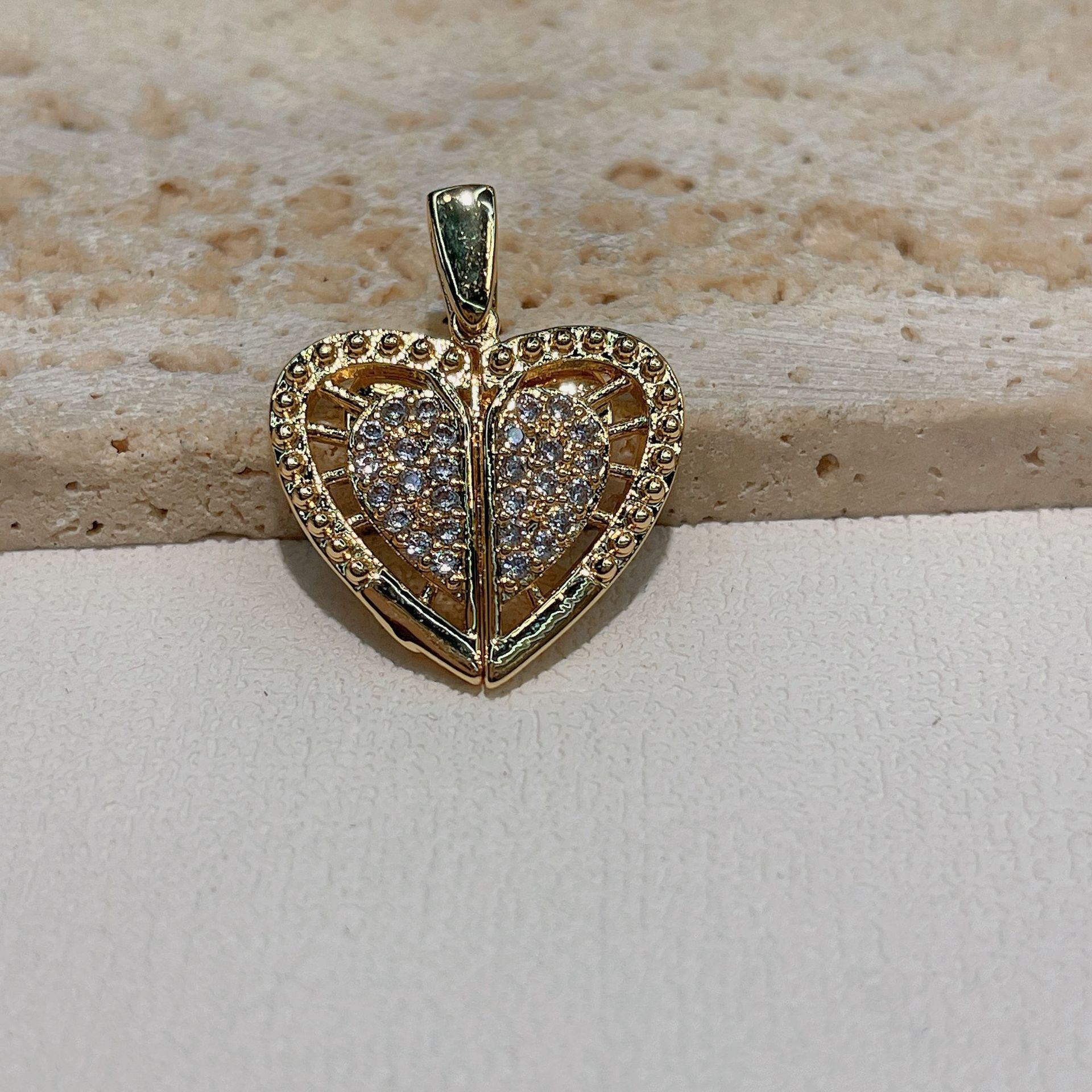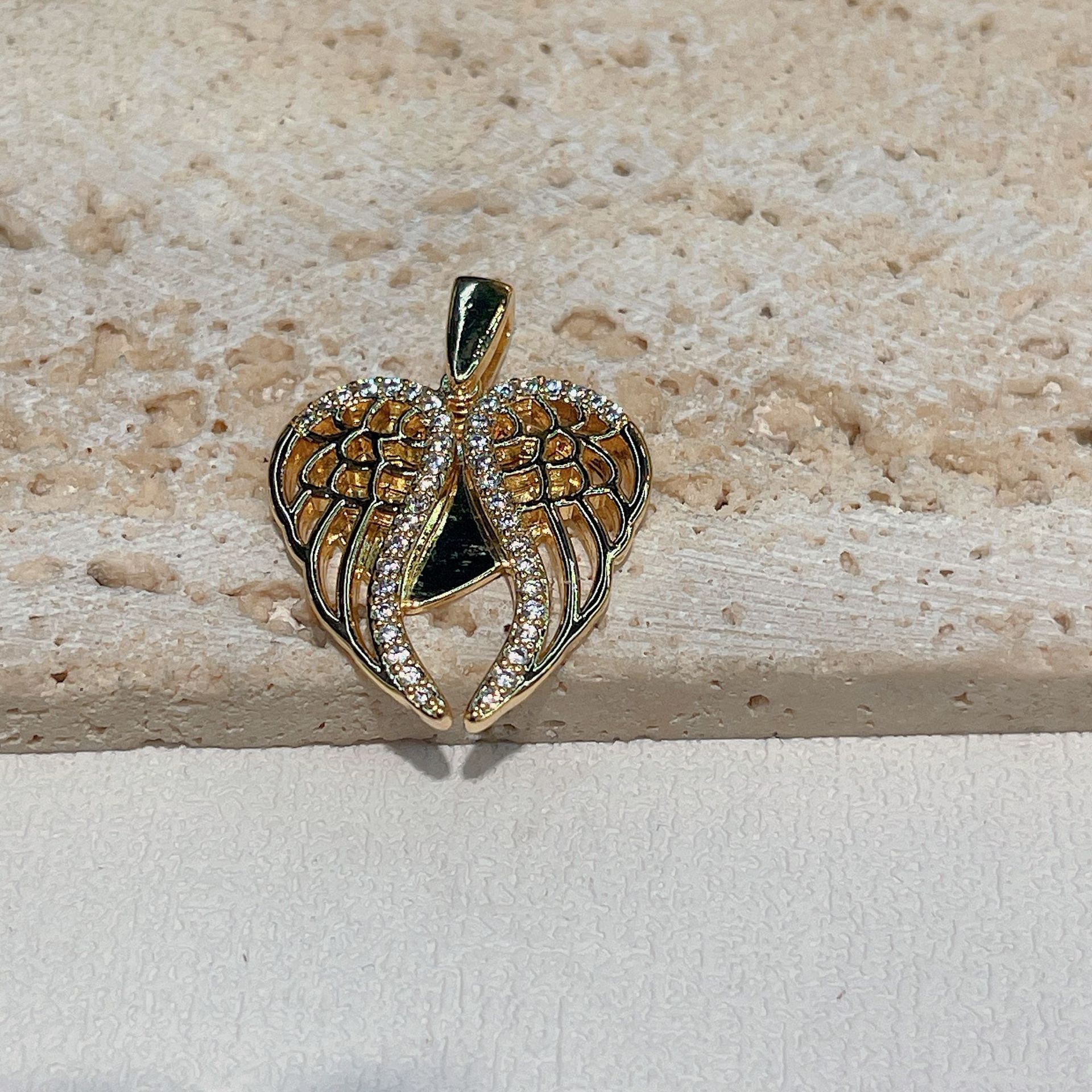 欧美热销新款铜镀真金开合桃心翅膀项链吊坠DIY手链项链饰品配件