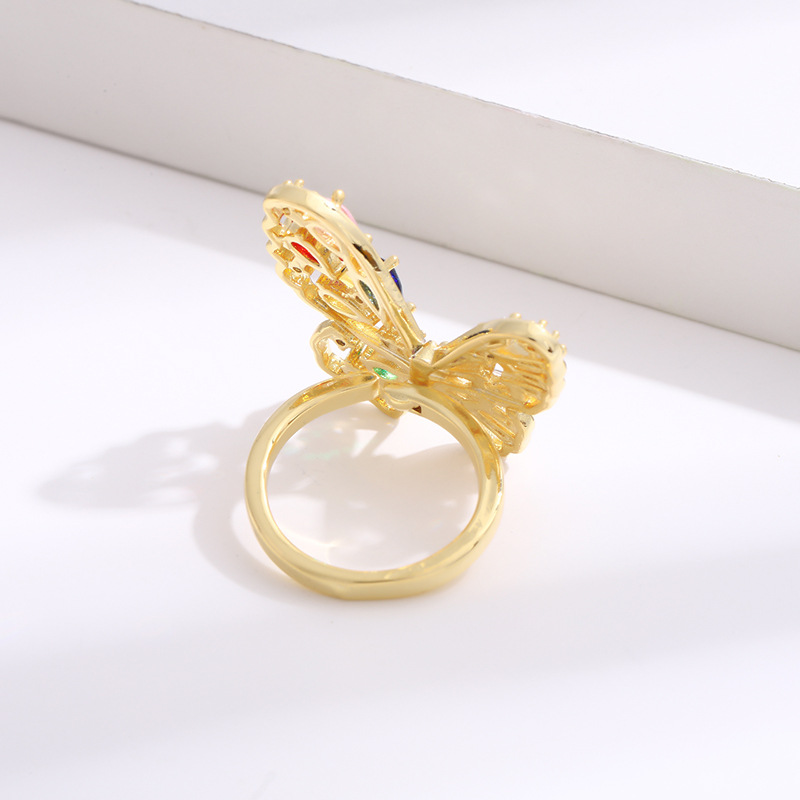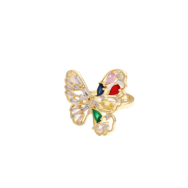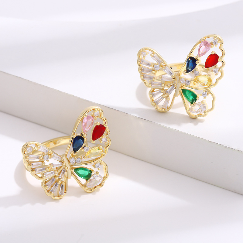 欧美跨境新款铜镀真金彩色水滴蝴蝶个性夸张开口创意时尚戒指女
