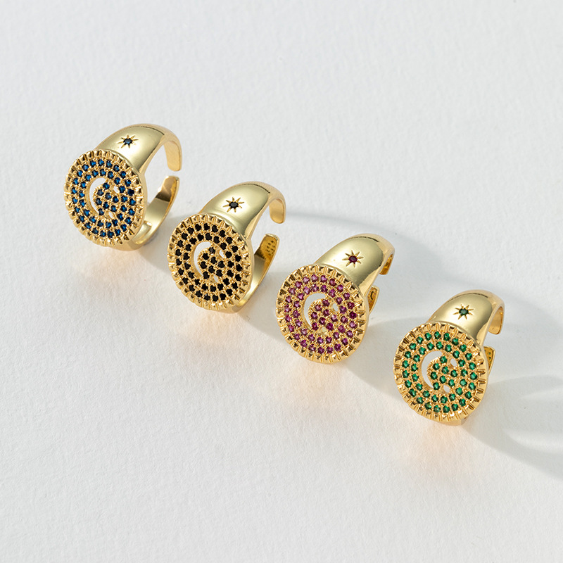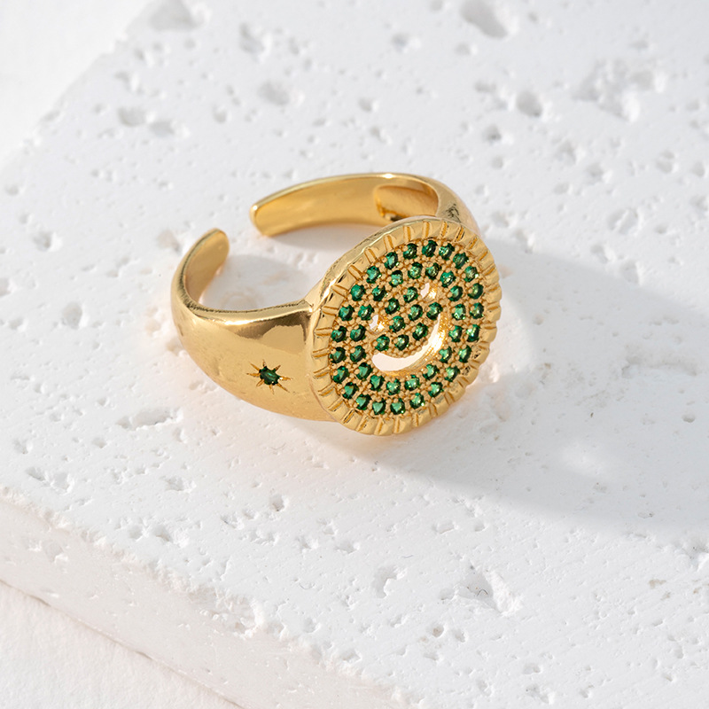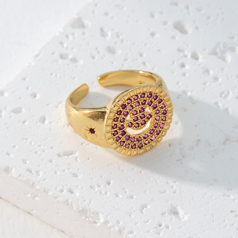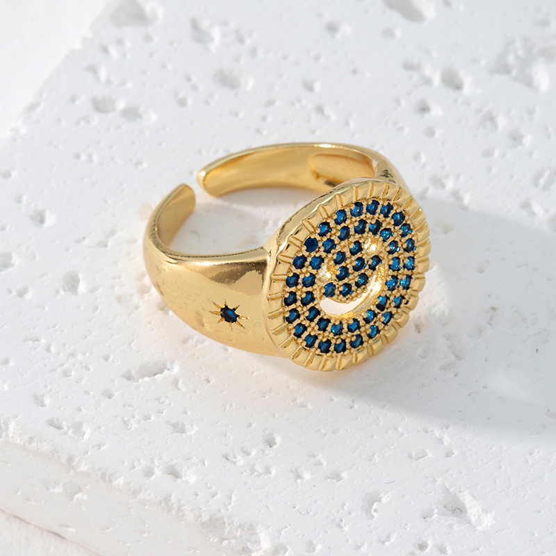 外贸速卖通款微镶满锆个性潮笑脸微笑开口戒指INS网红开口戒指女