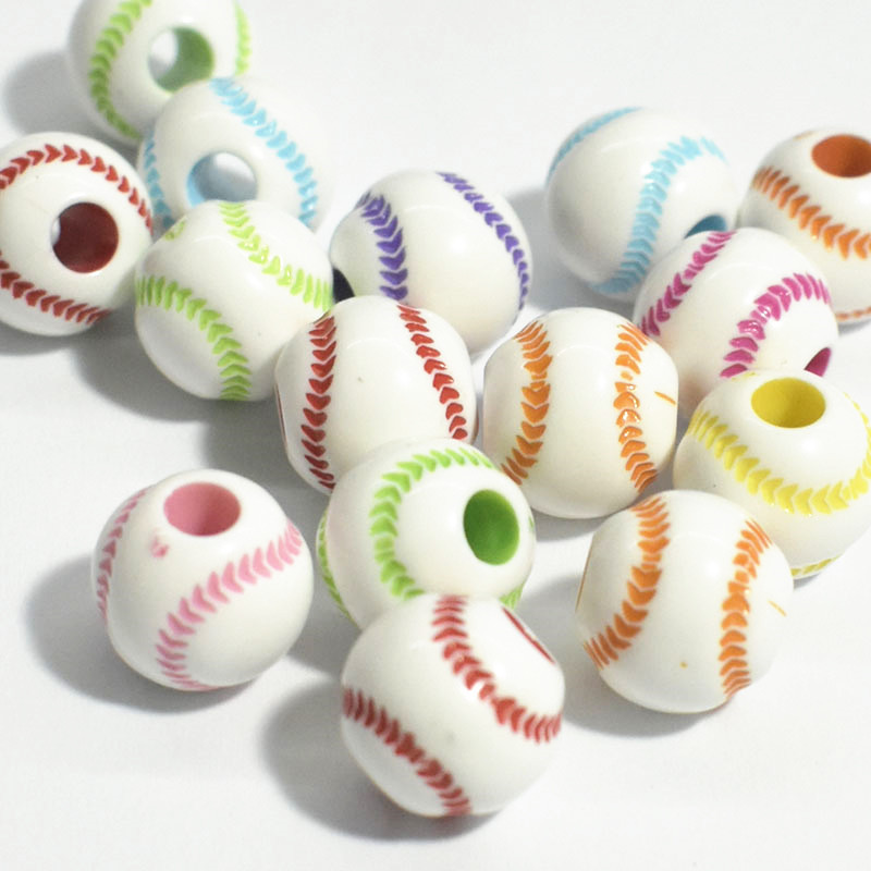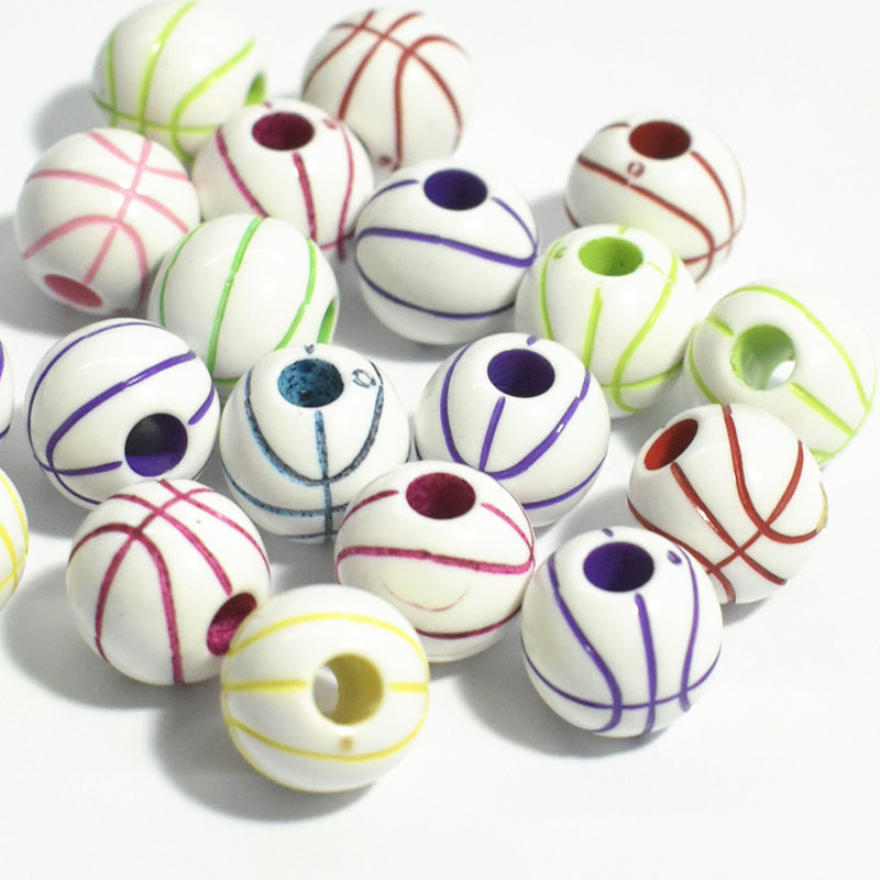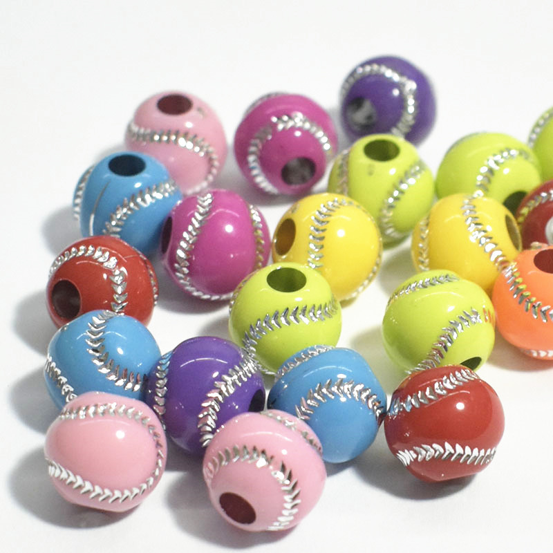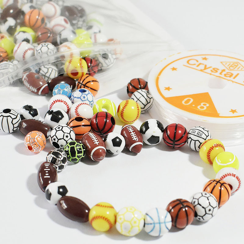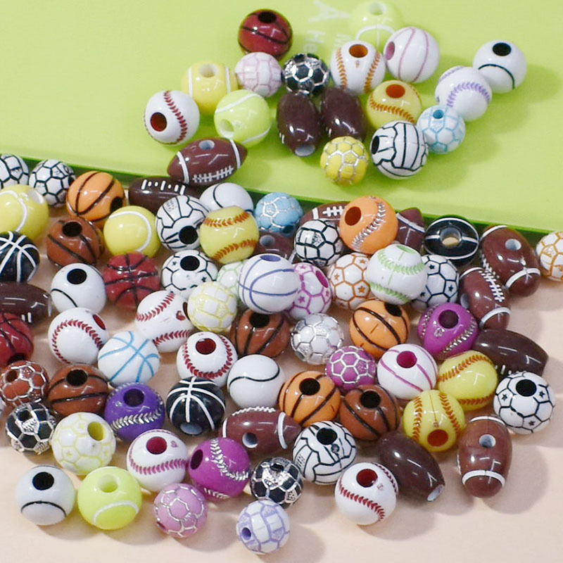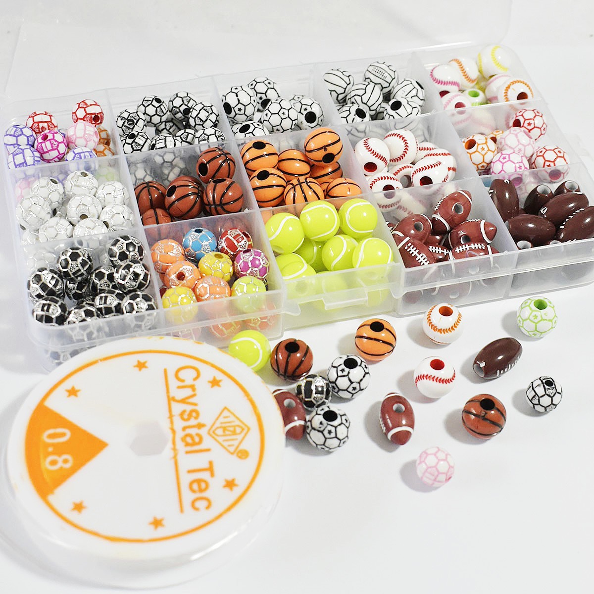 50颗饰品配件儿童手工串珠材料亚克力棒球篮球足球网球散珠批盒装