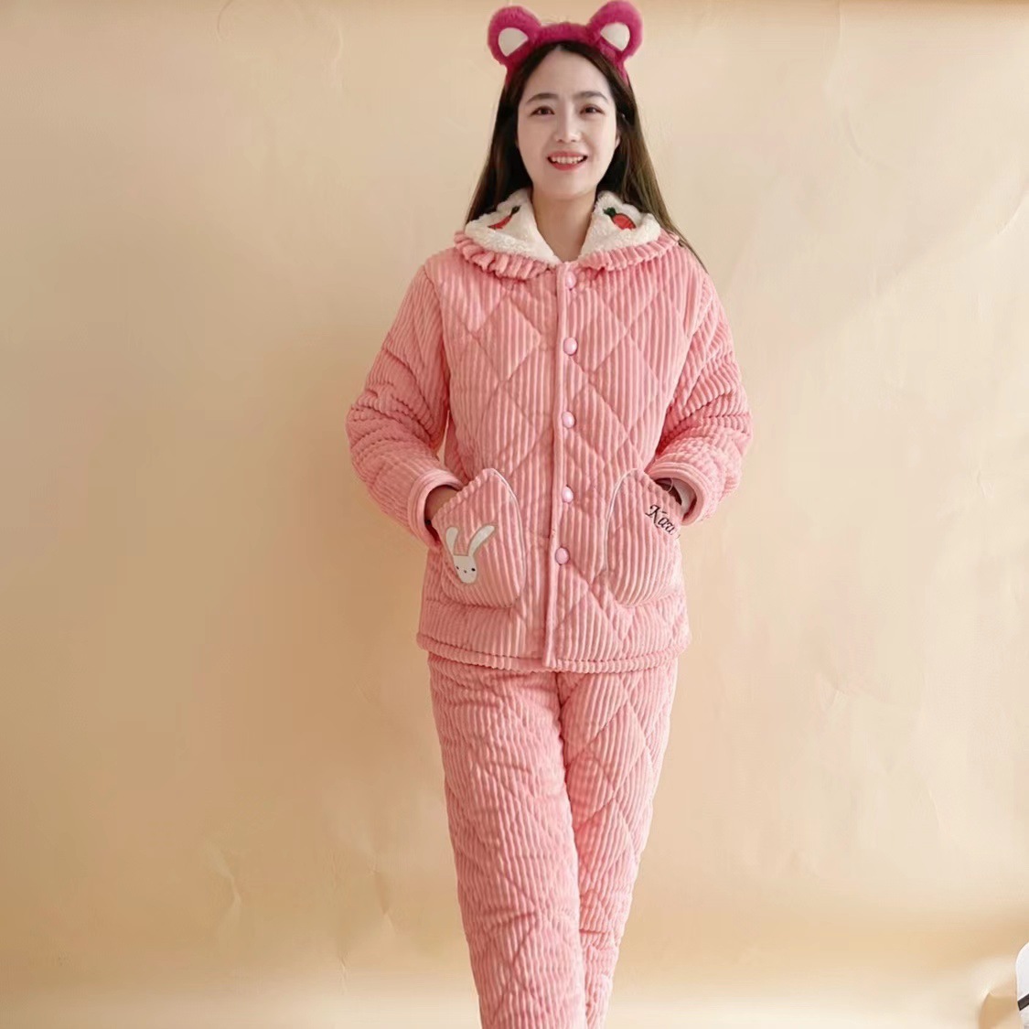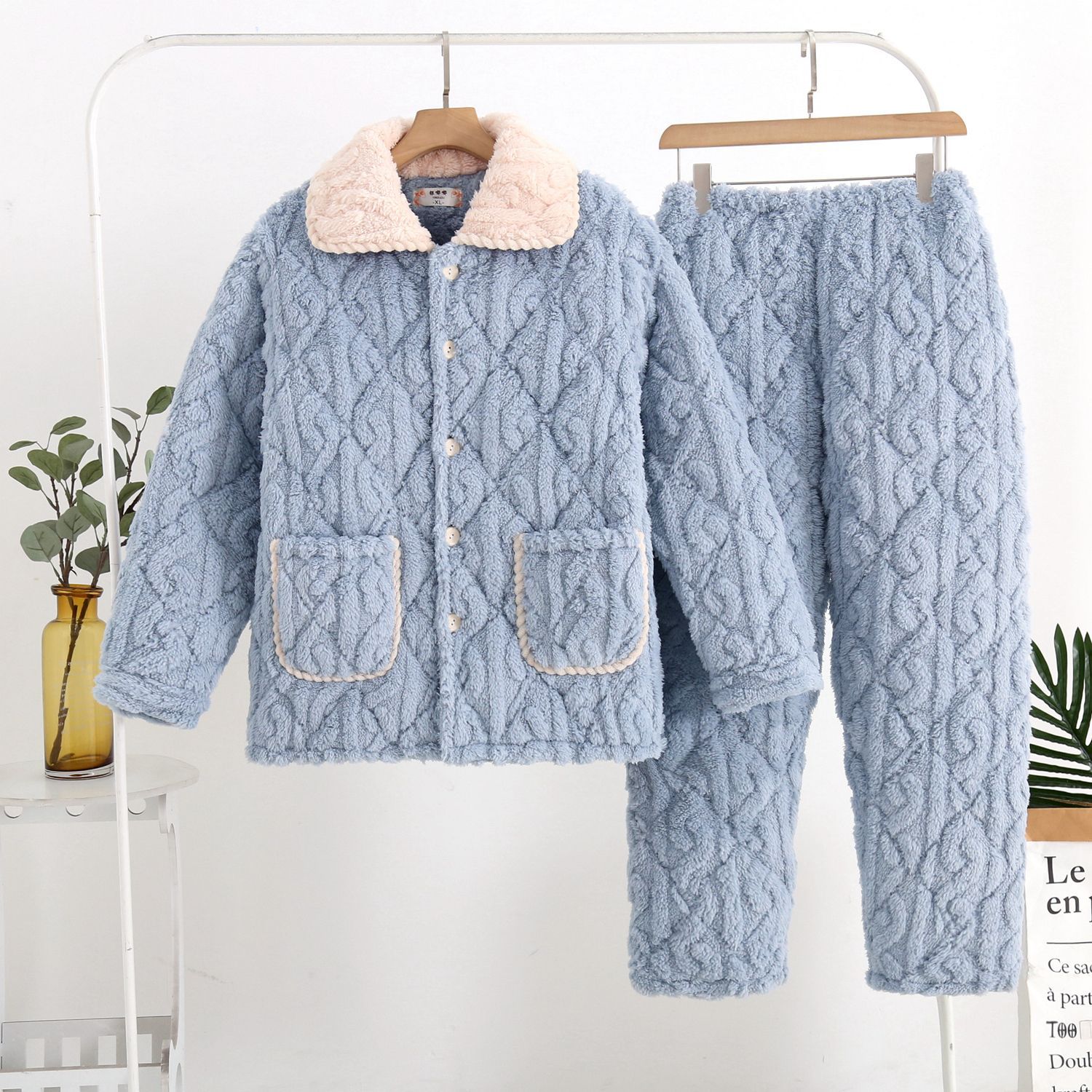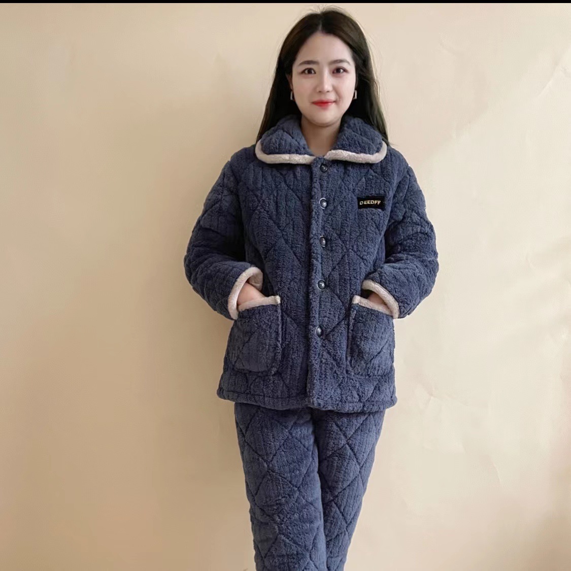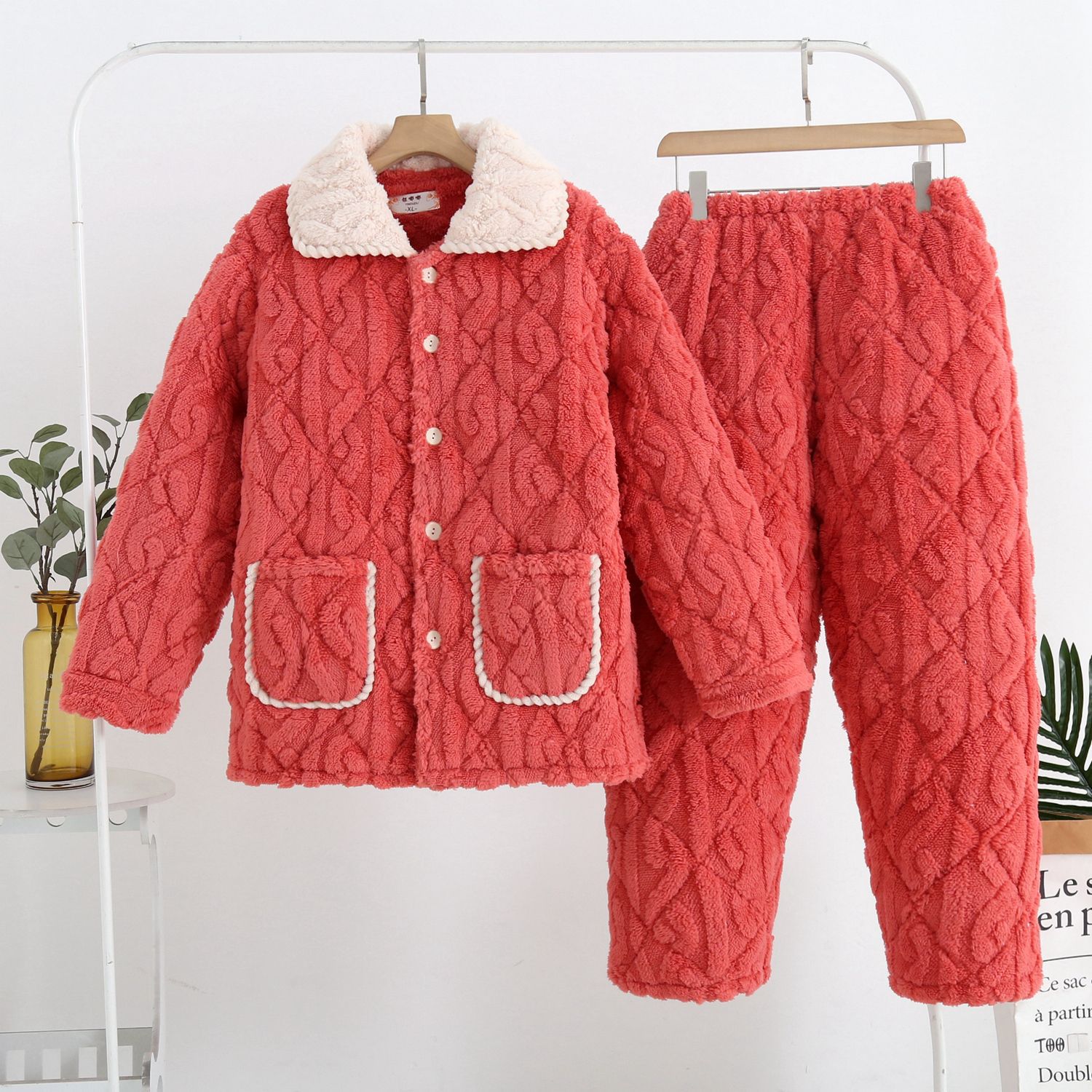 睡衣女士冬季珊瑚绒三层加厚加绒保暖夹棉法兰绒春秋冬天款家居服