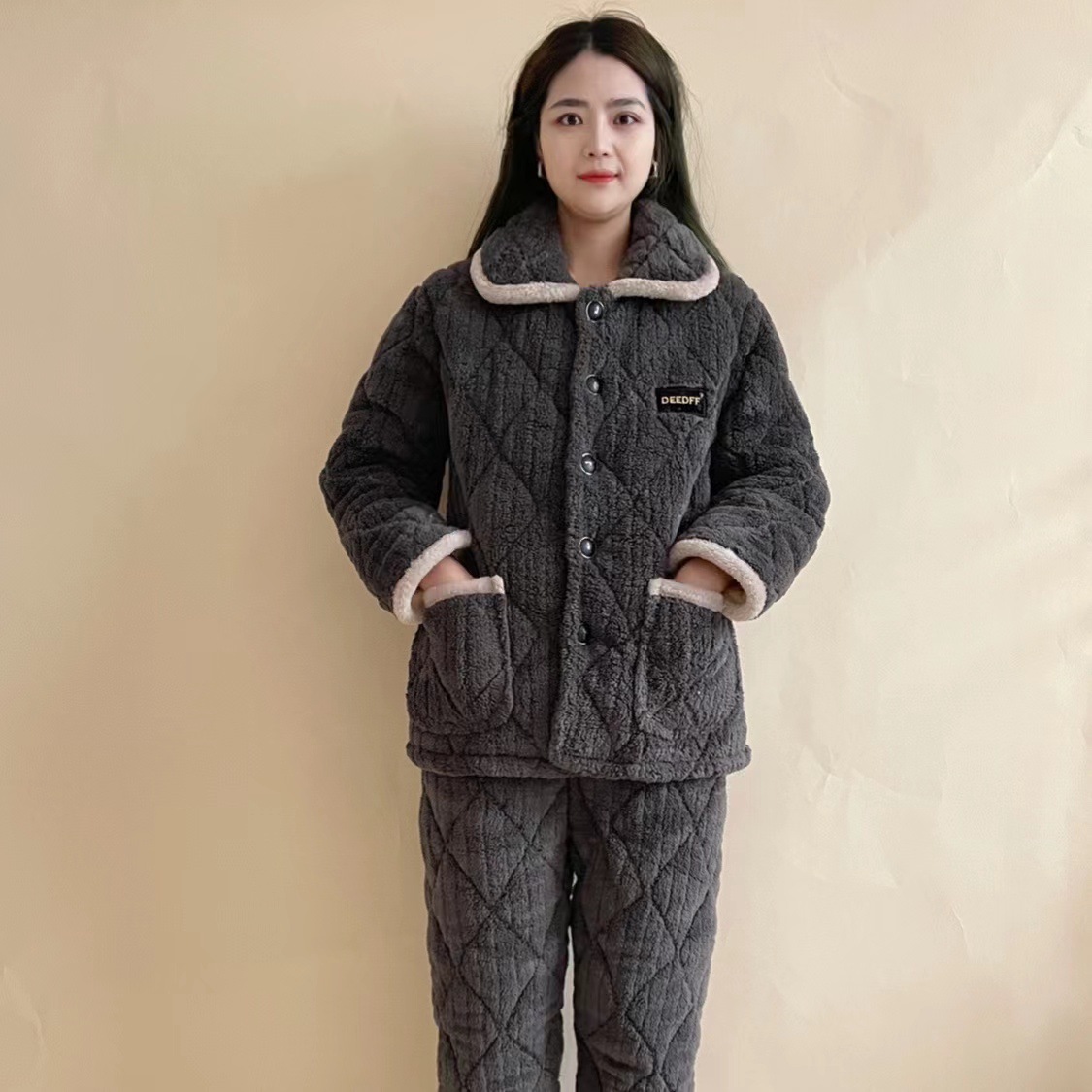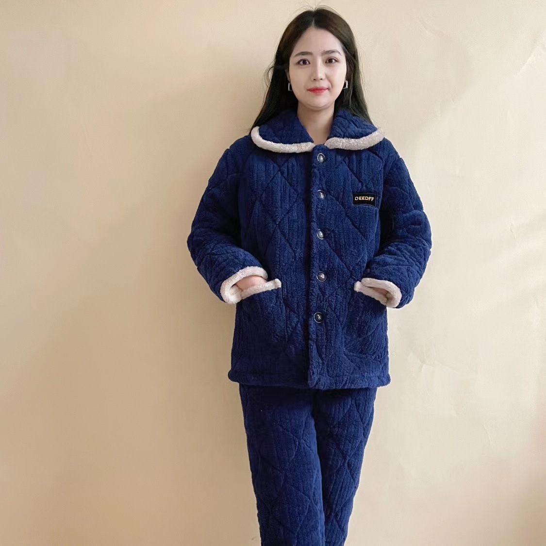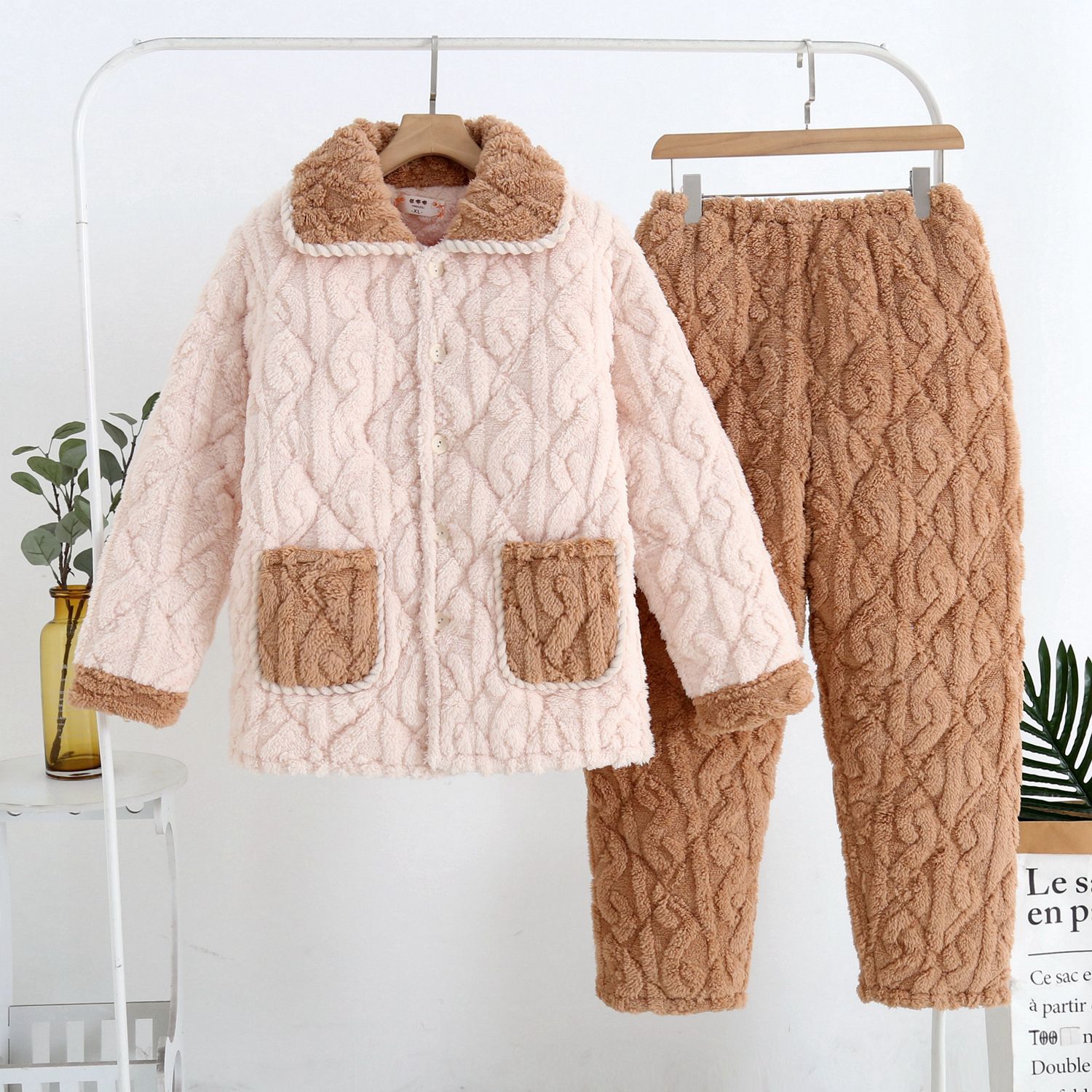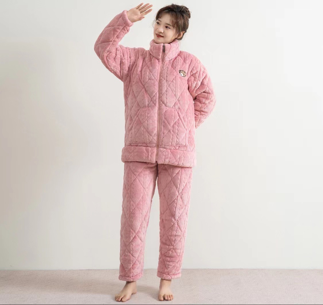 睡衣女士冬季珊瑚绒三层加厚加绒保暖夹棉法兰绒春秋冬天款家居服