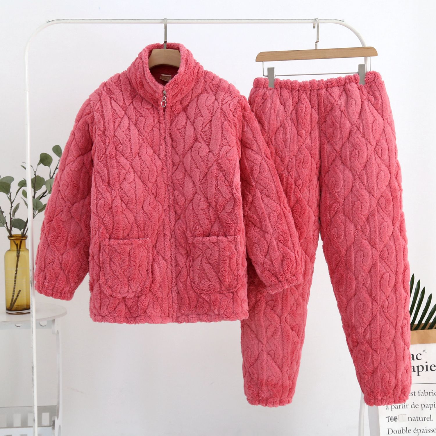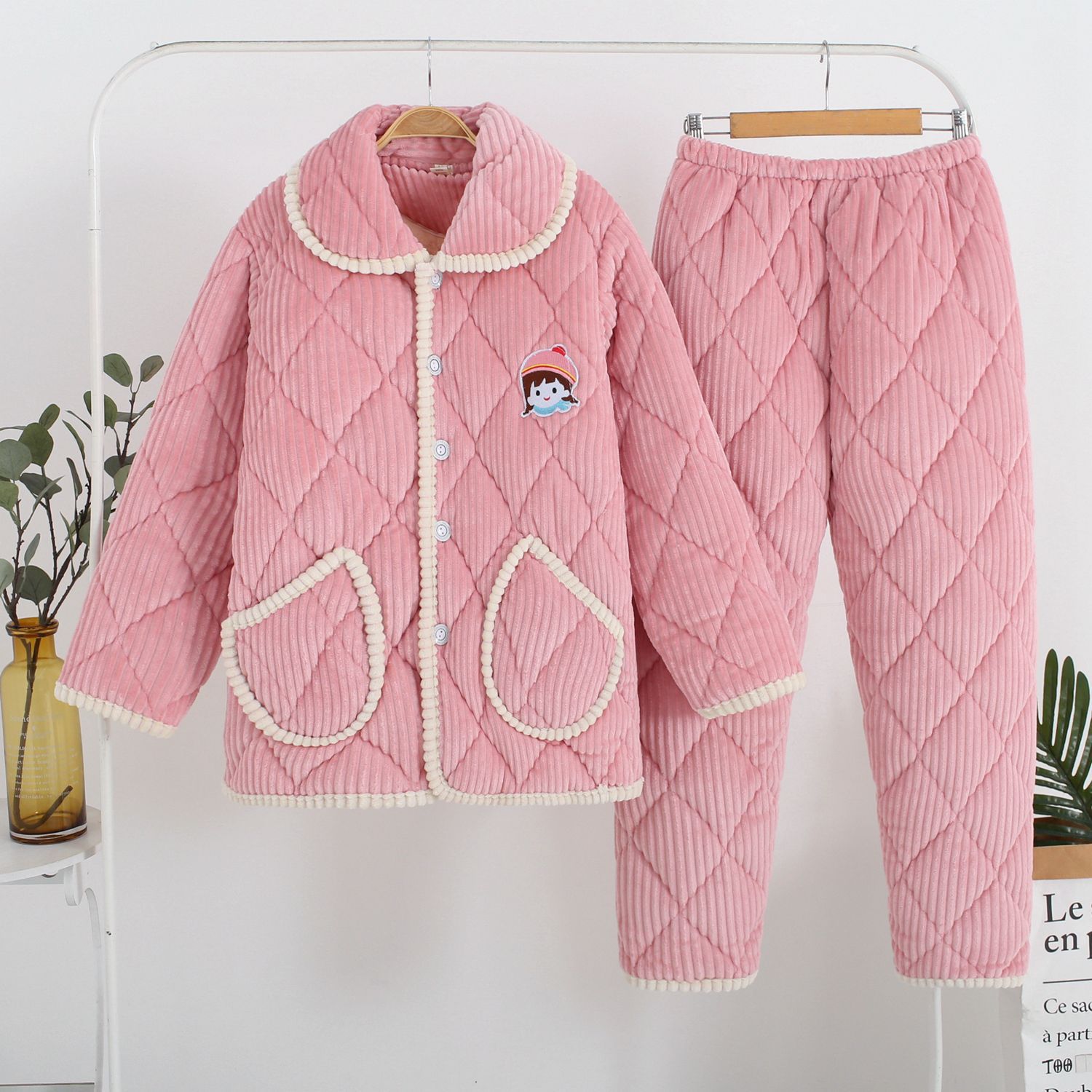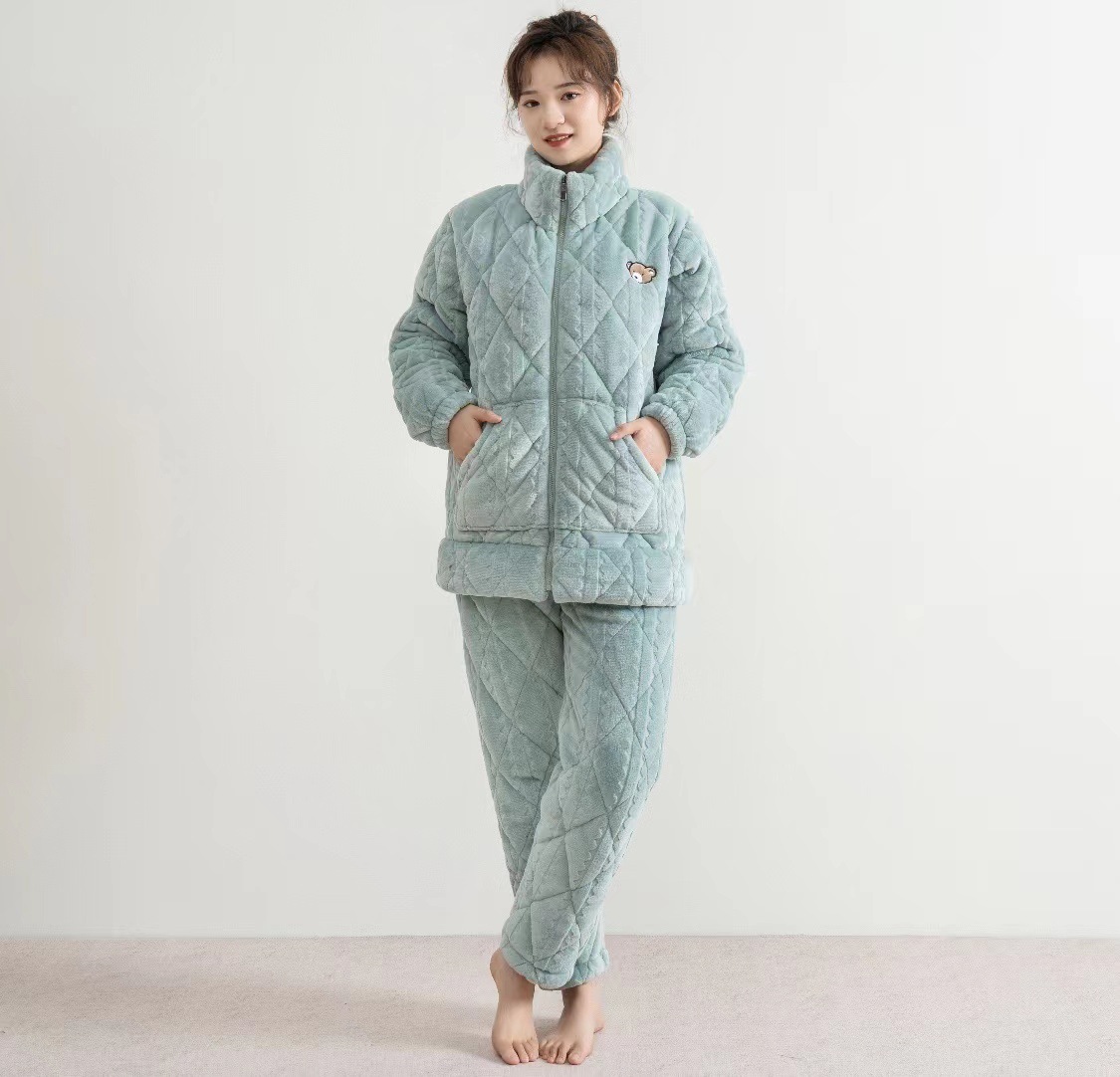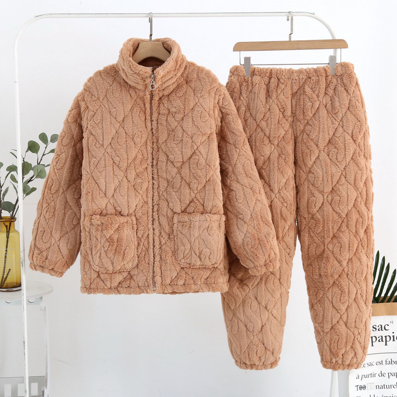 睡衣女士冬季珊瑚绒三层加厚加绒保暖夹棉法兰绒春秋冬天款家居服