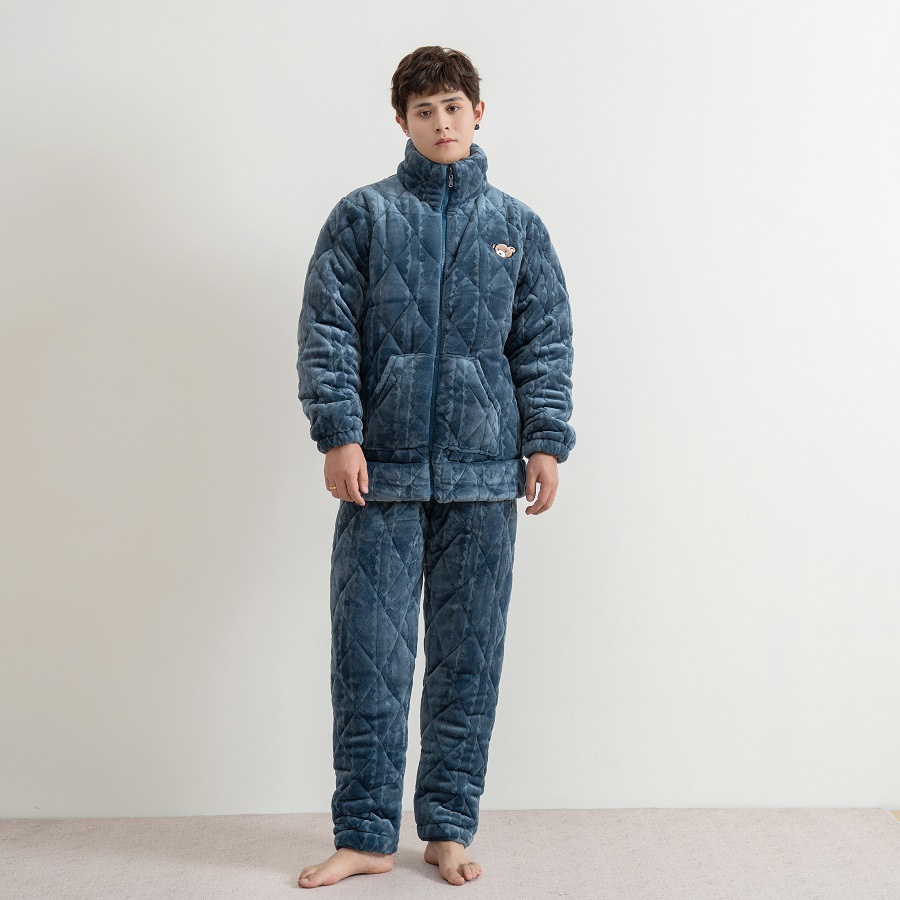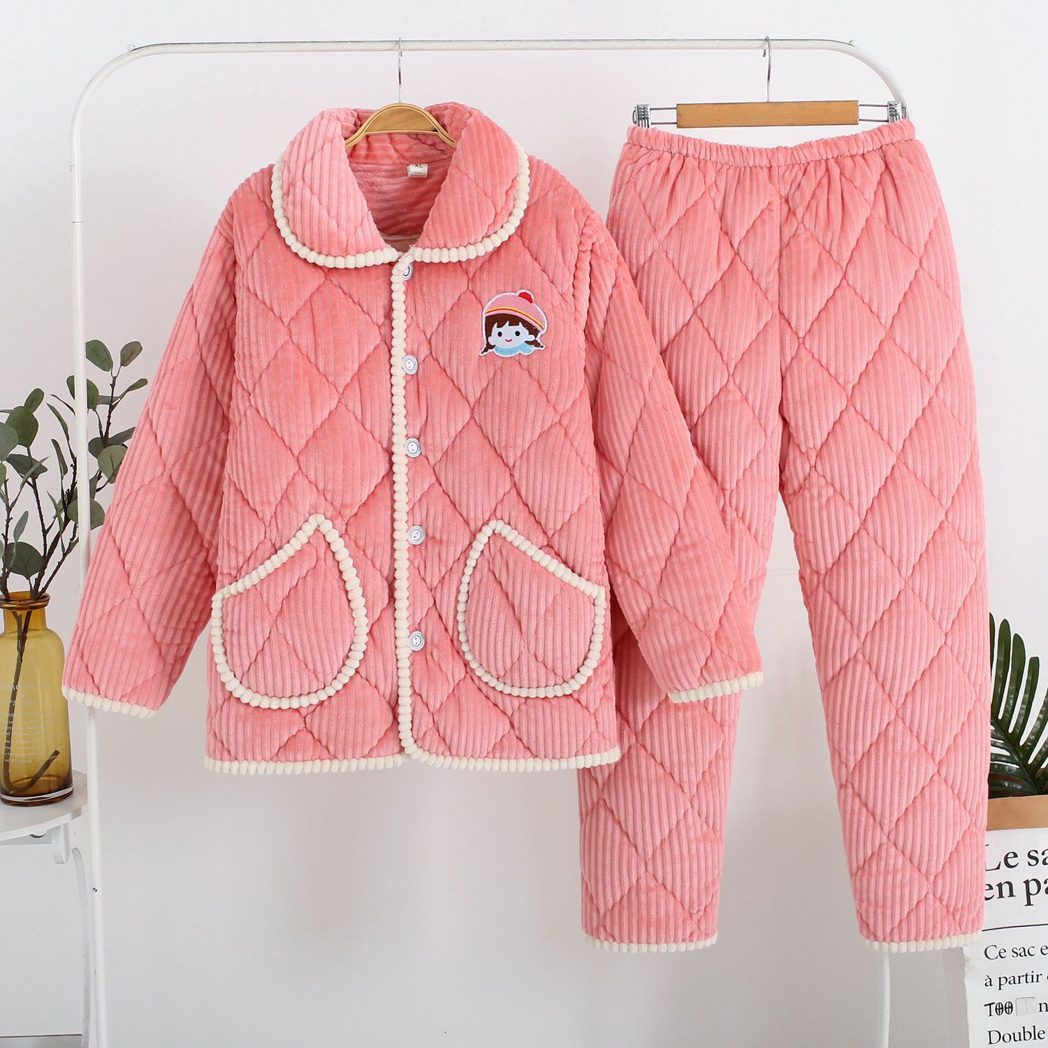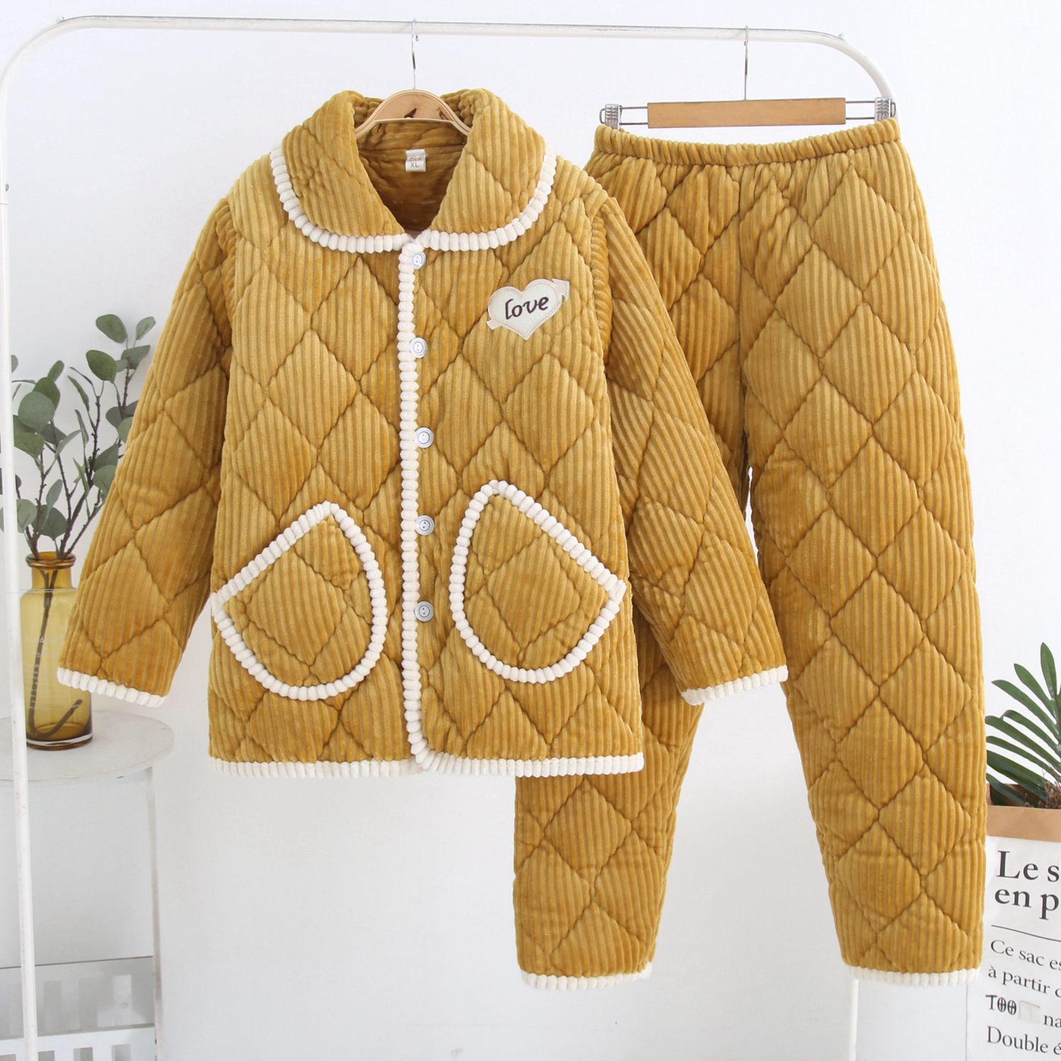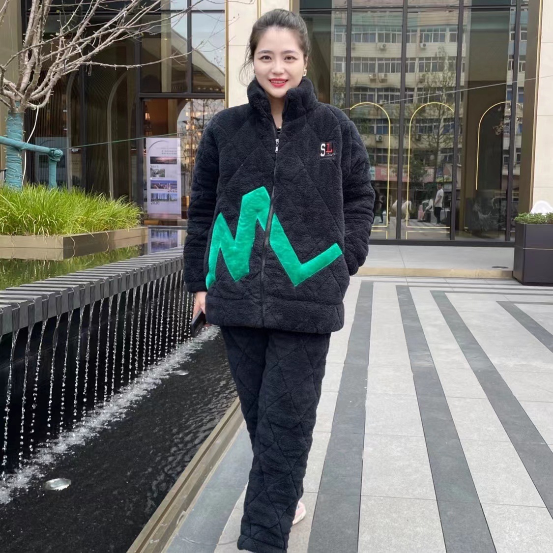 睡衣女士冬季珊瑚绒三层加厚加绒保暖夹棉法兰绒春秋冬天款家居服