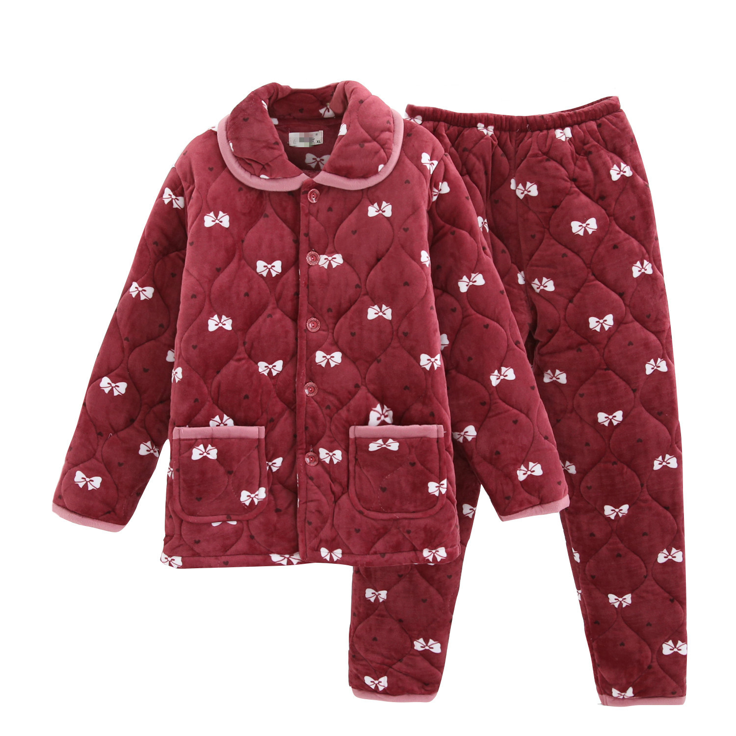 中老年人夹棉睡衣女秋冬季加厚加绒冬天中年妈妈珊瑚绒家居服套装