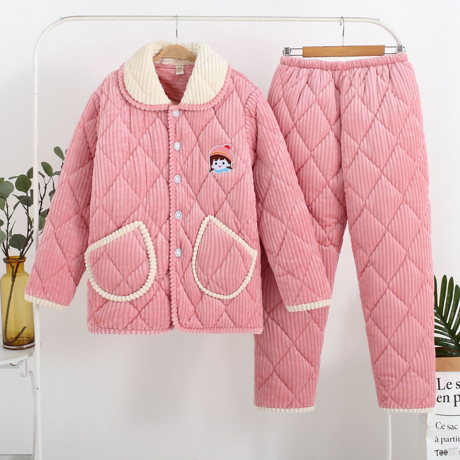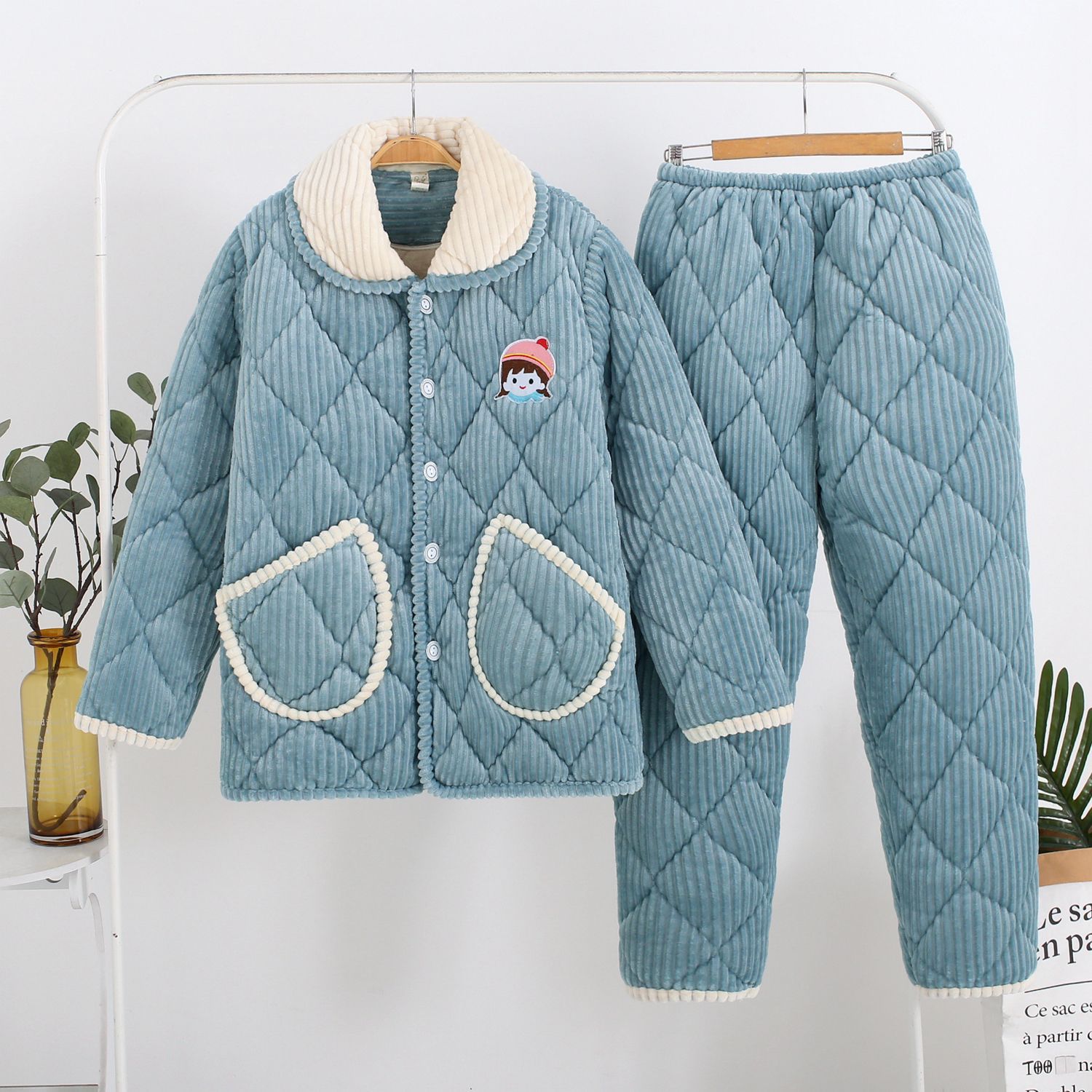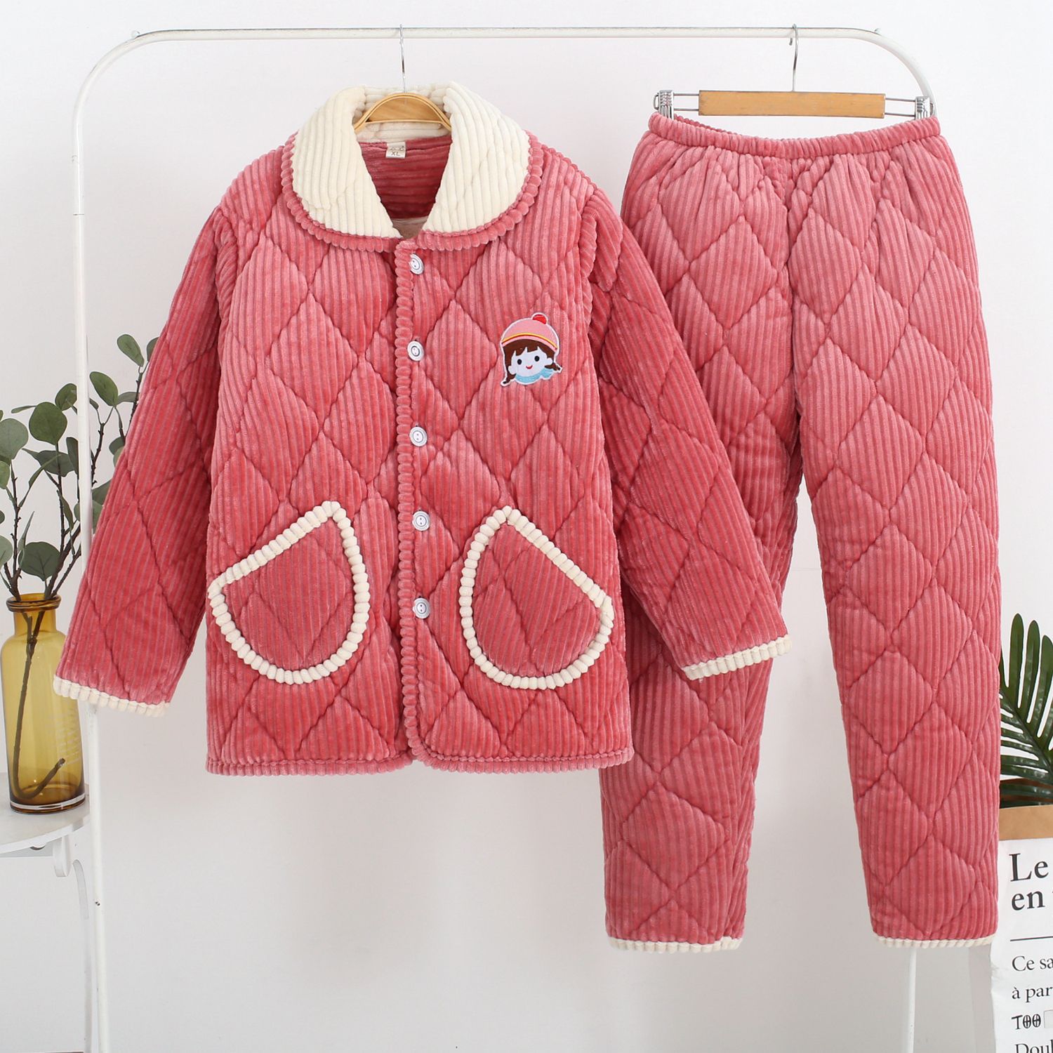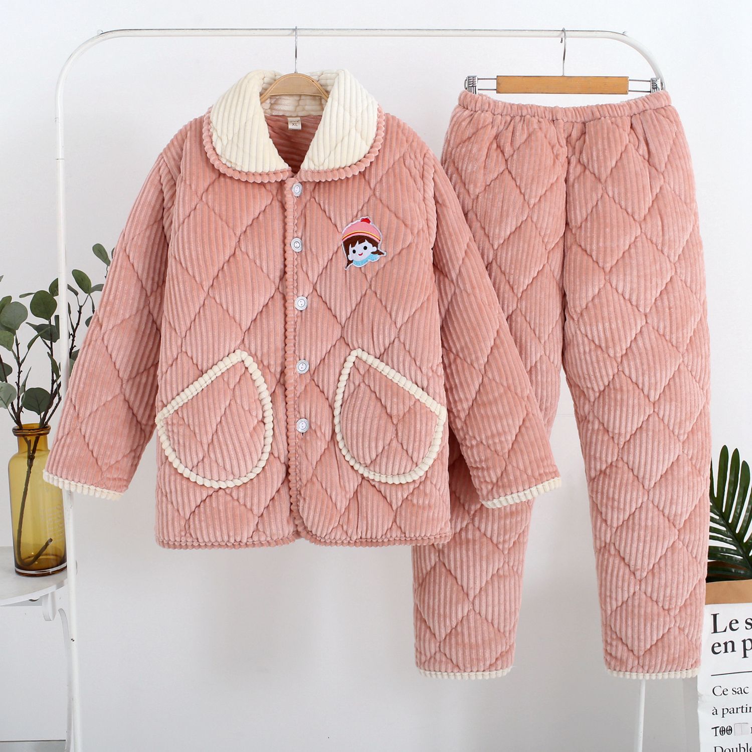 冬季睡衣女加厚款加绒珊瑚绒保暖三层夹棉秋冬天女装法兰绒家居服