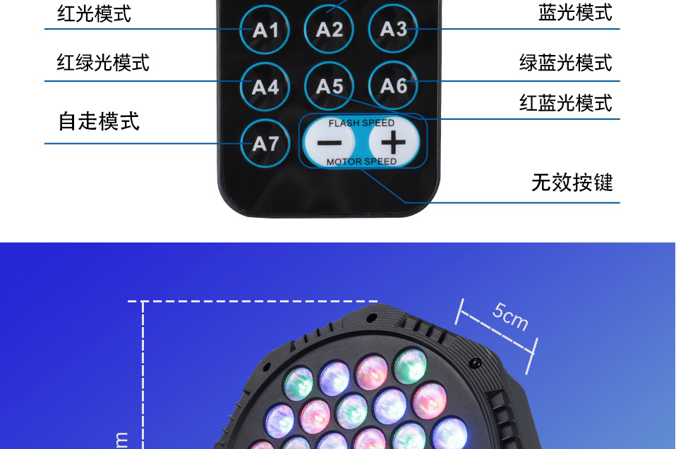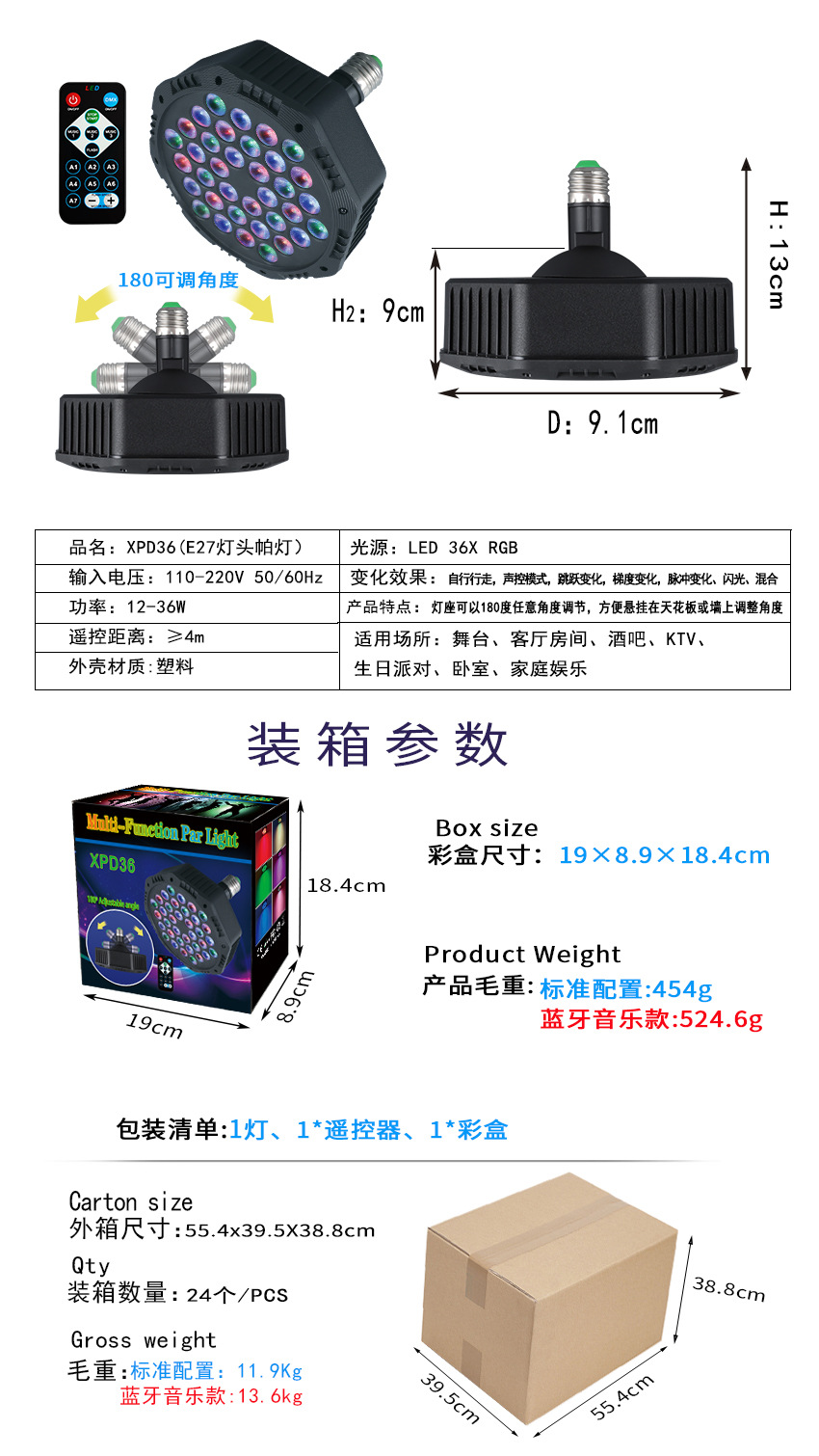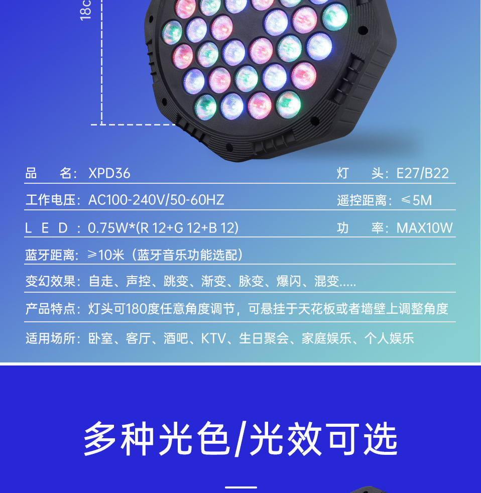 舞台灯光声控E27灯头七彩36颗帕灯酒吧演出婚庆染色par灯LED帕灯