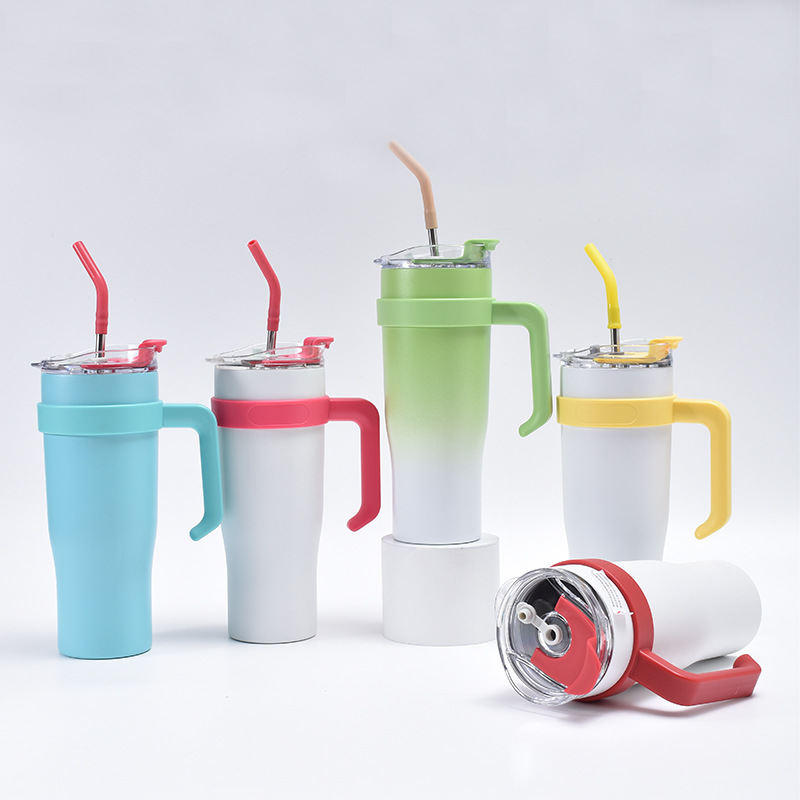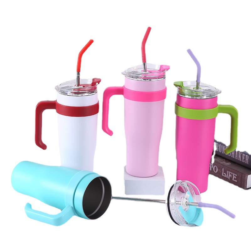 跨境专供40OZ巨无霸带手柄汽车杯304不锈钢吸管杯车载保温冷杯