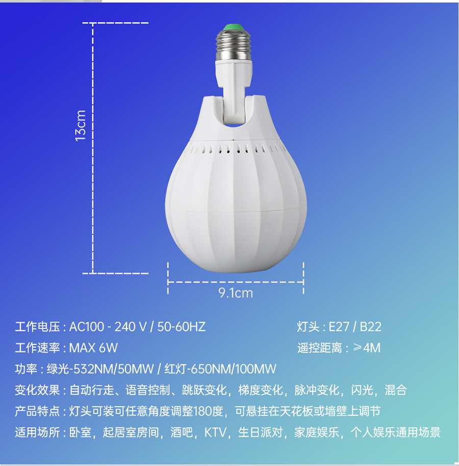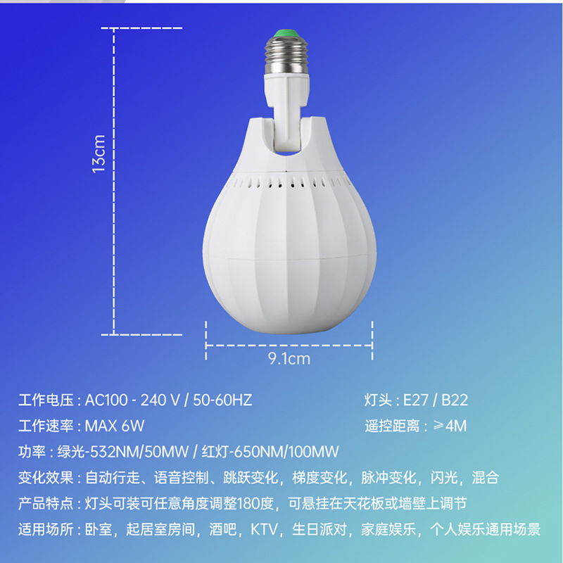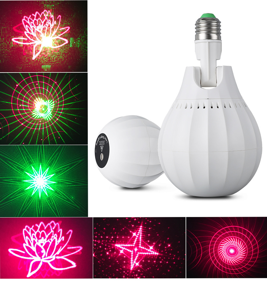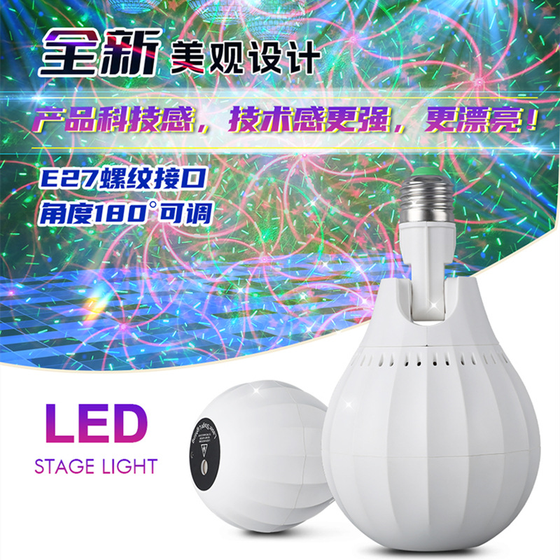 跨境迷你激光灯E27圣诞图案投影灯360度旋转灯舞台激光声控蹦迪灯