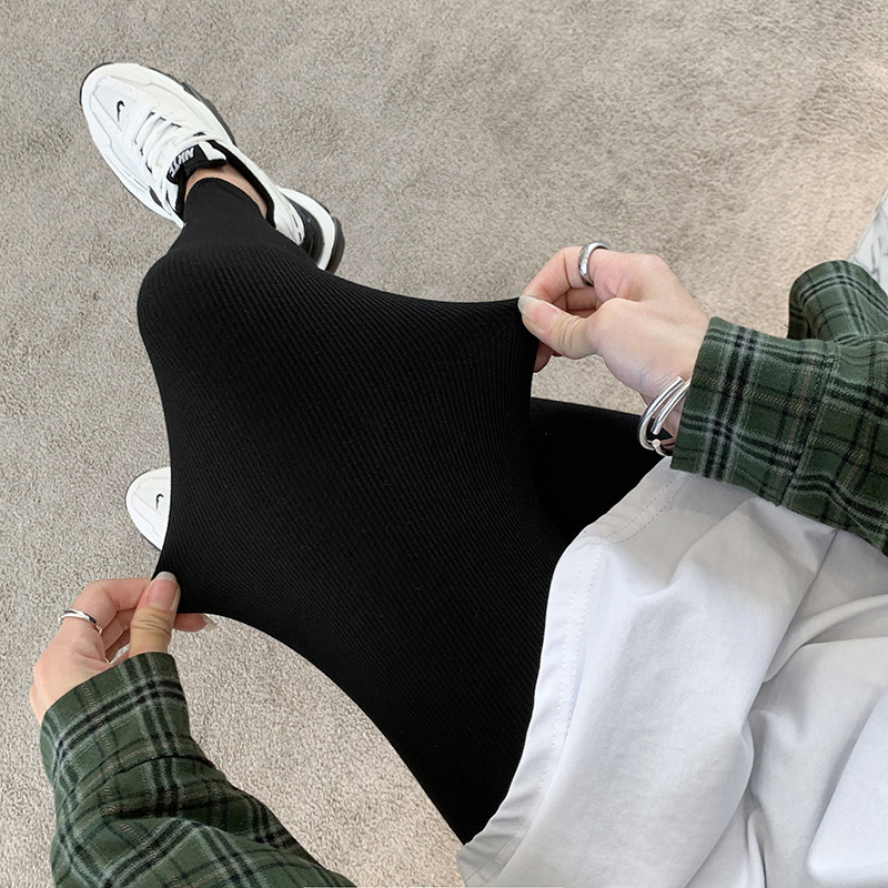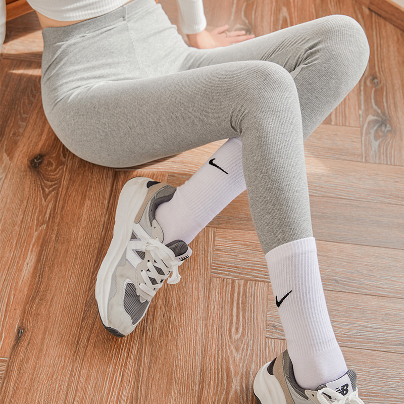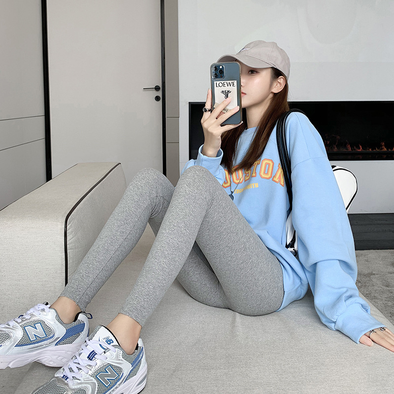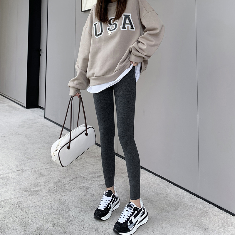 灰色打底裤女外穿弹力薄款高腰紧身显瘦百搭大码秋冬新款九分裤