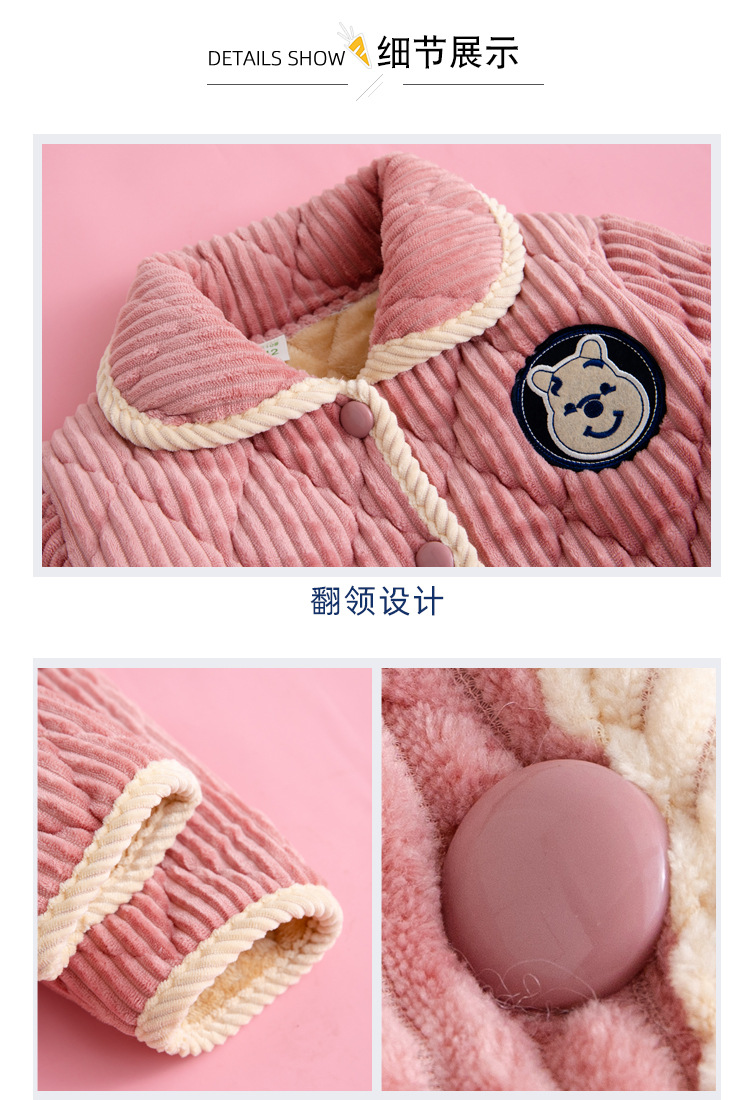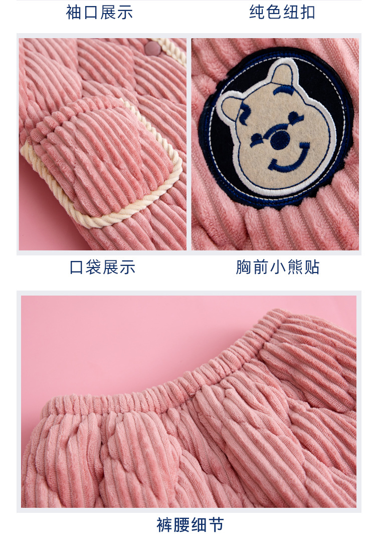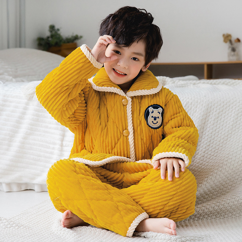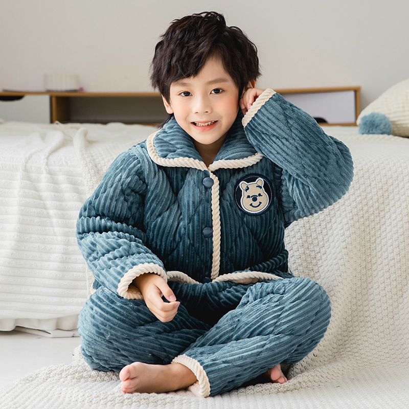 winter children‘s pajamas thickened flannel homewear suit boys and girls three-layer quilted velvet coral fleece