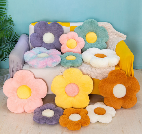 跨境兔毛花朵坐垫太阳花可爱办公室客厅沙发花瓣坐垫毛绒玩具批发