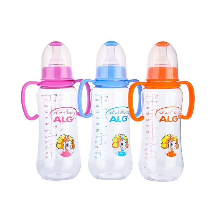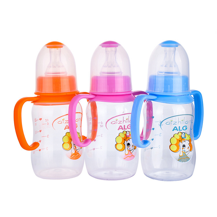 ALG外贸奶瓶125mL婴儿标口pp奶瓶带单色手柄宝宝喝水喂养奶嘴瓶