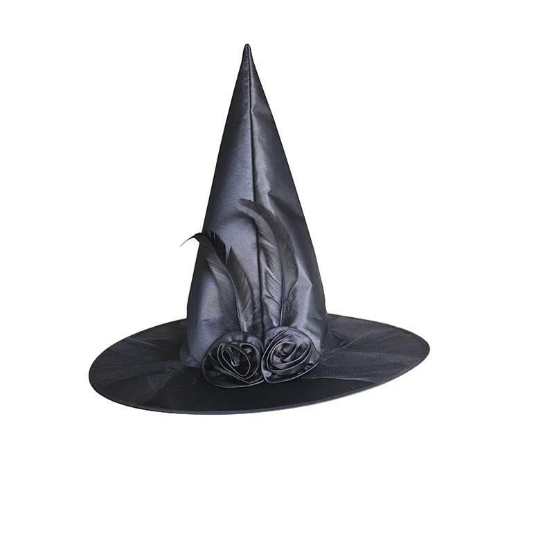 万圣节巫婆帽成人舞会装扮羽毛玫瑰花女巫帽 cosplay鬼节产品帽子