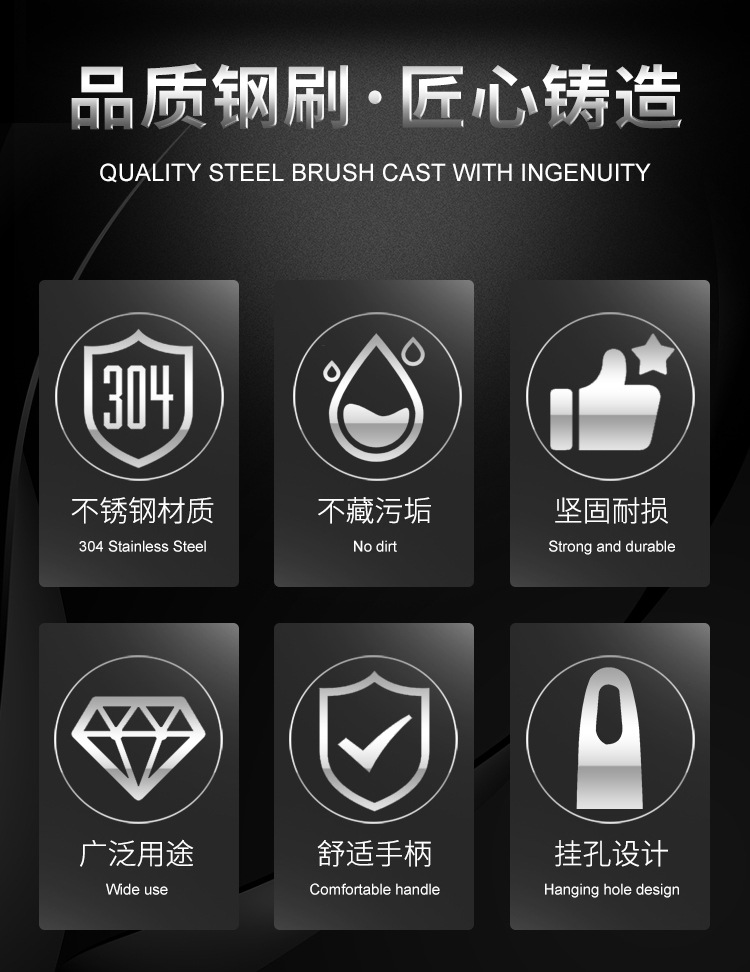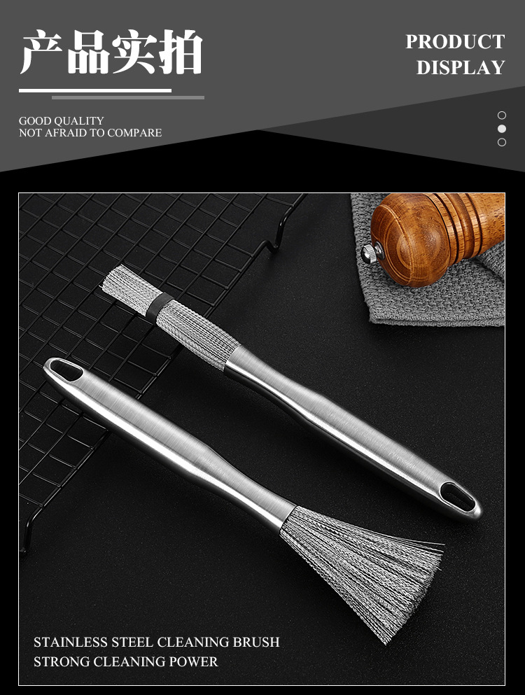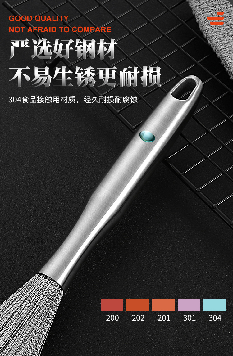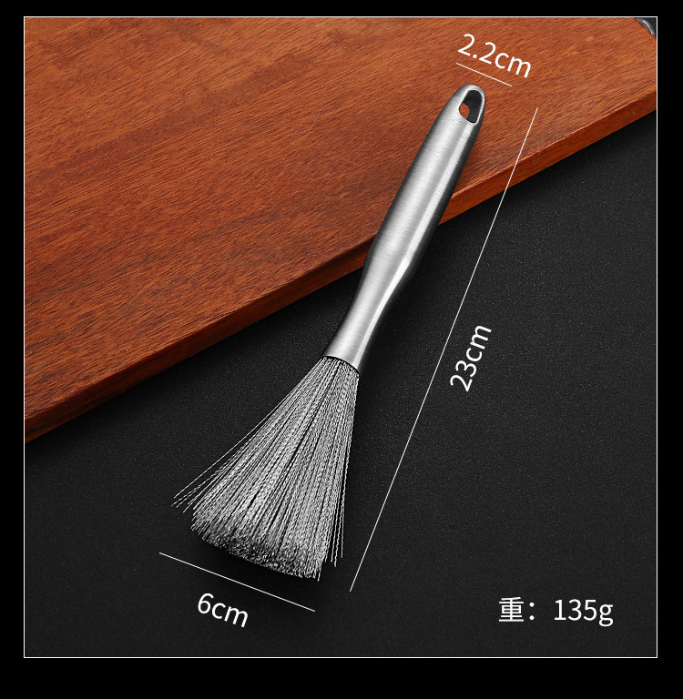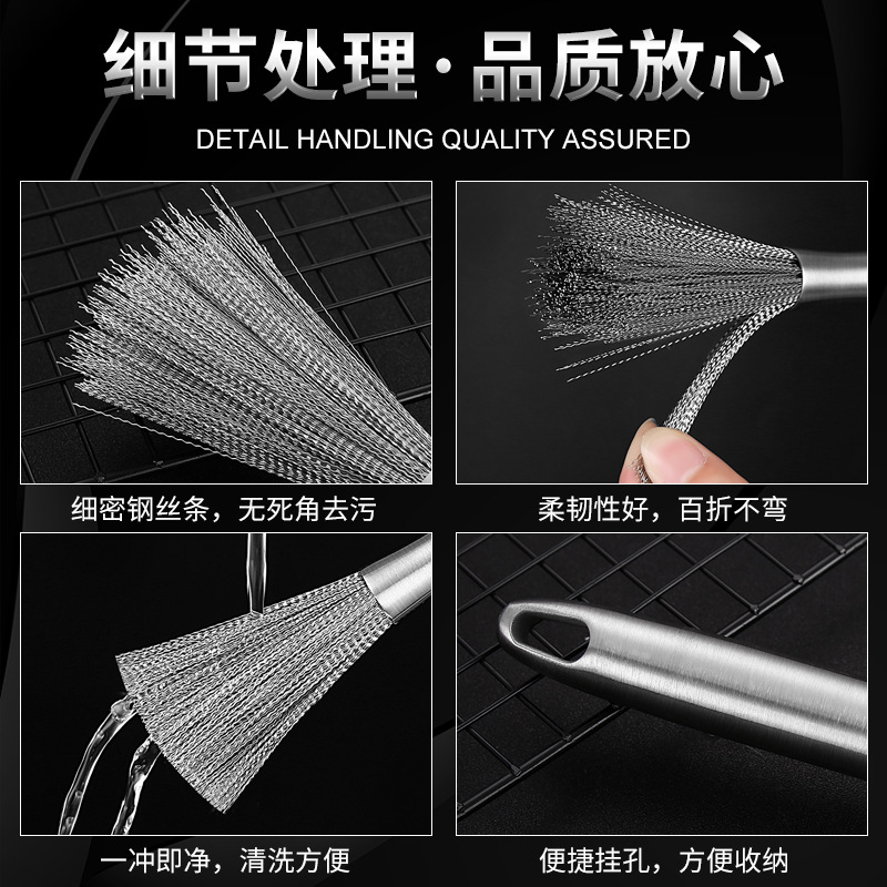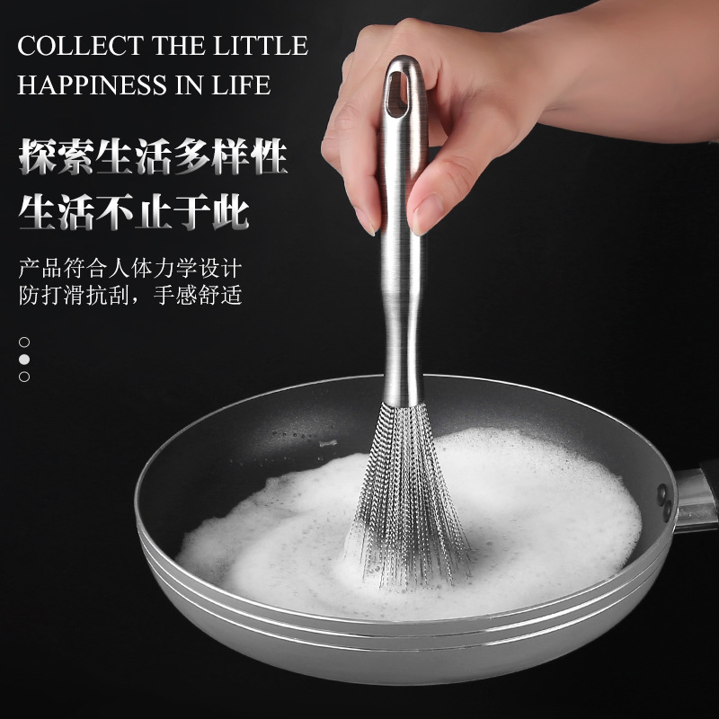 新洗锅刷304不锈钢多功能厨房铁锅刷 碟碗刷长柄可挂式耐用钢丝刷