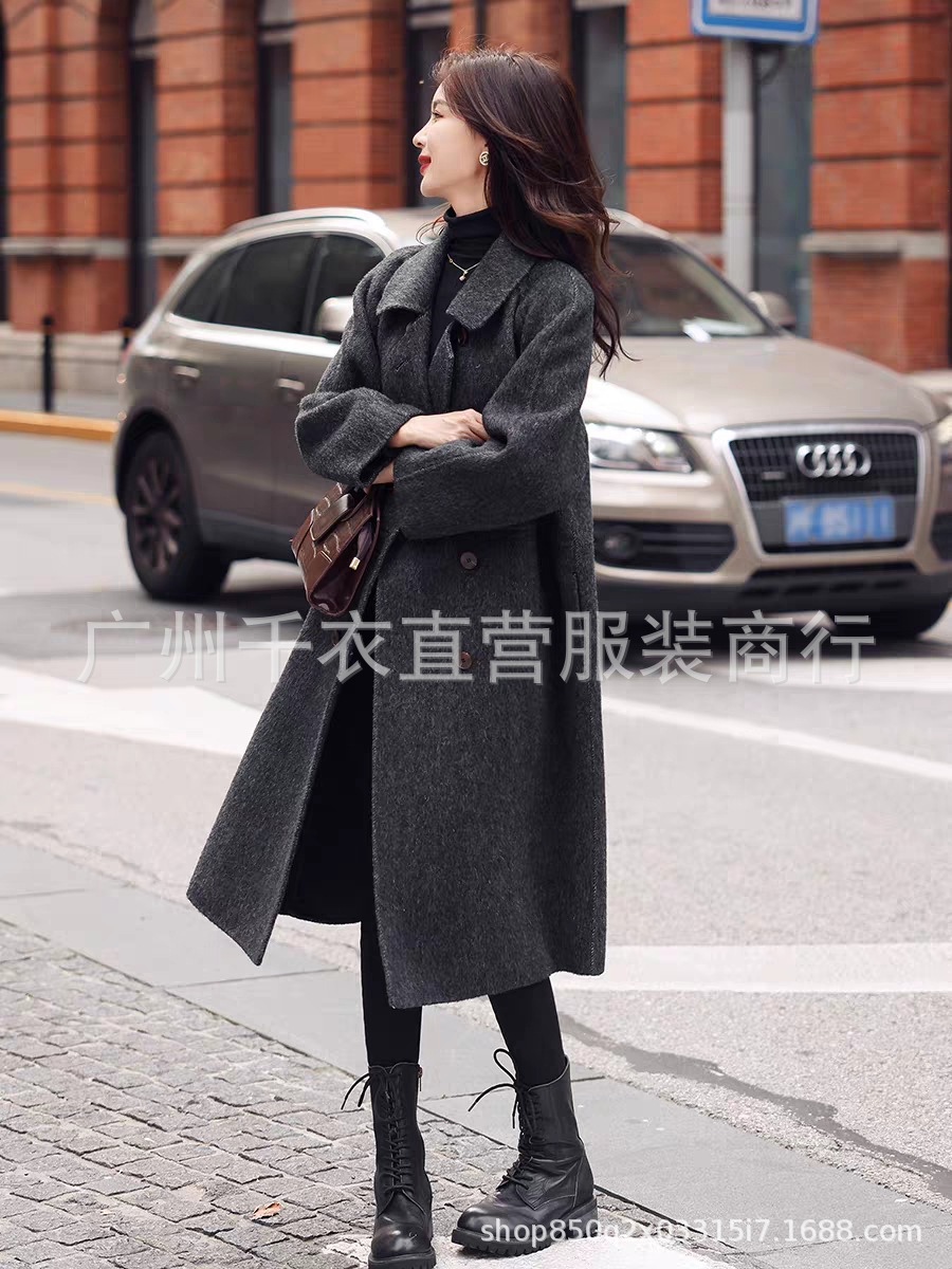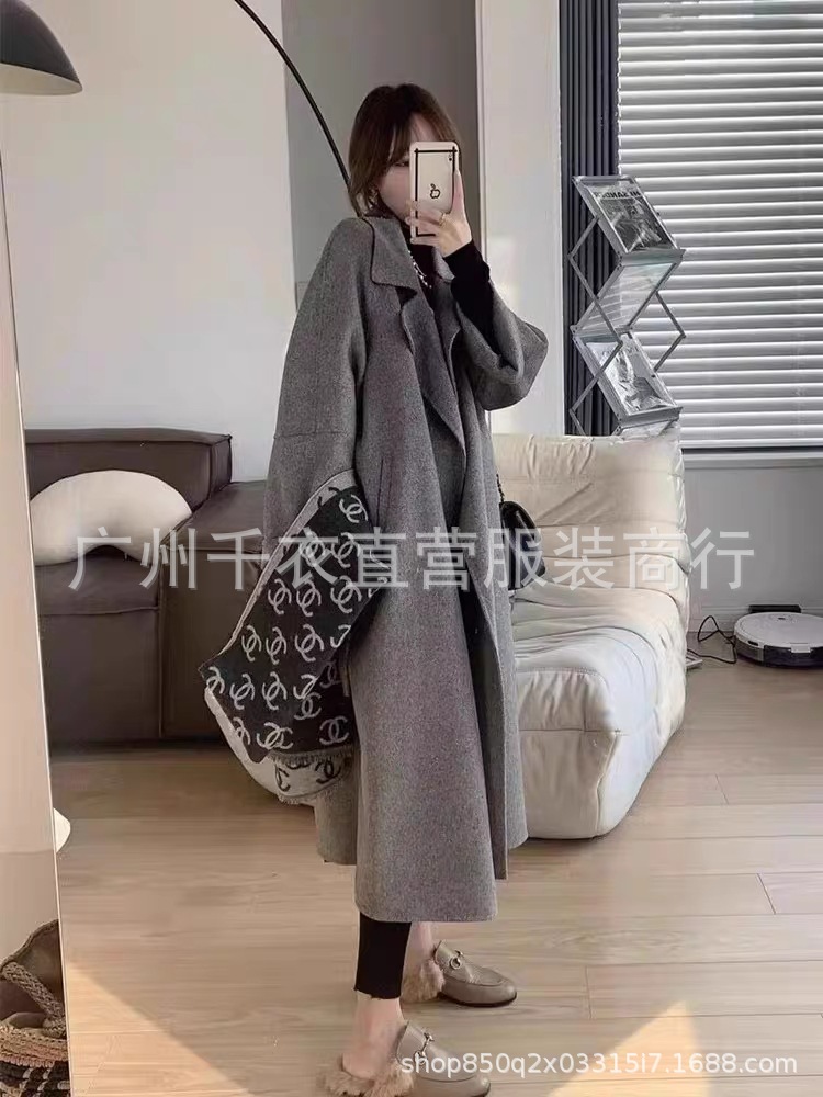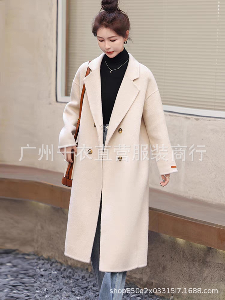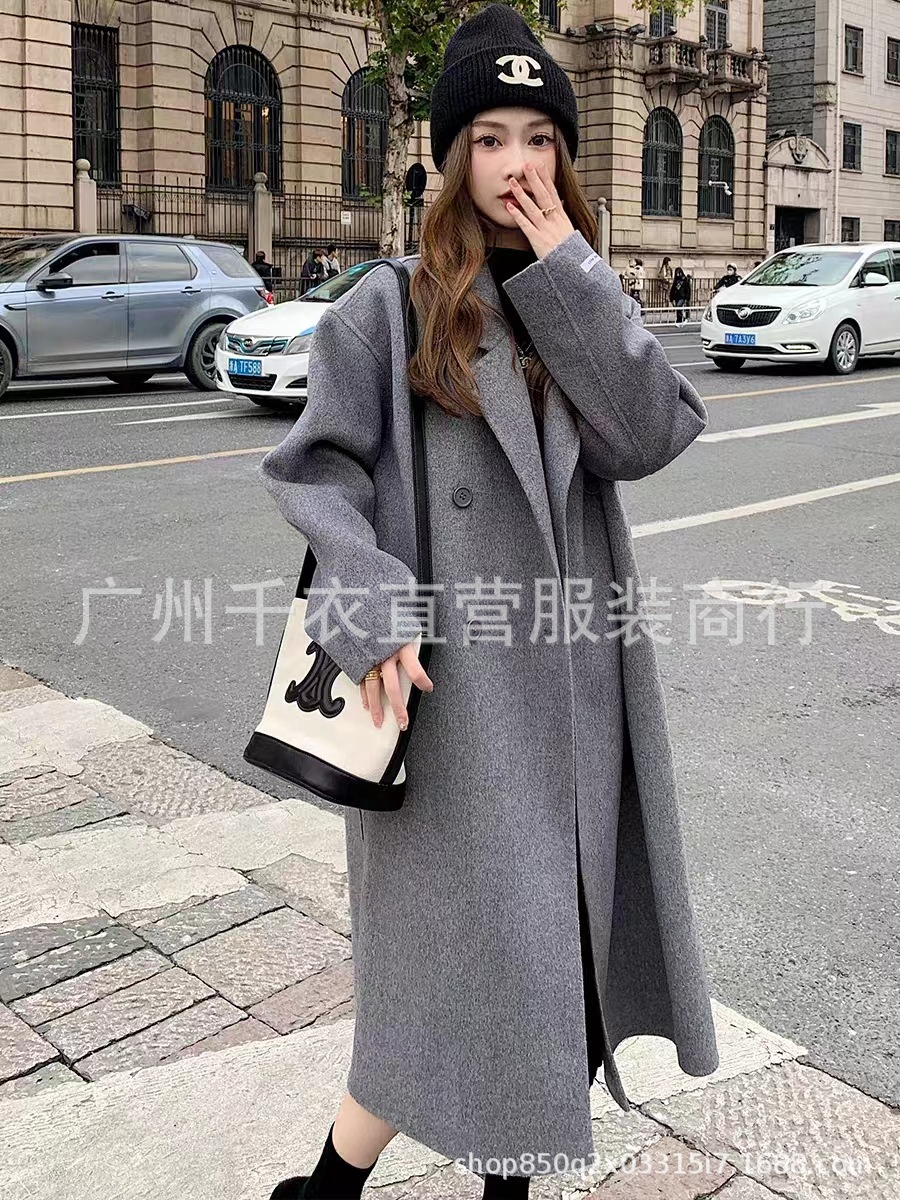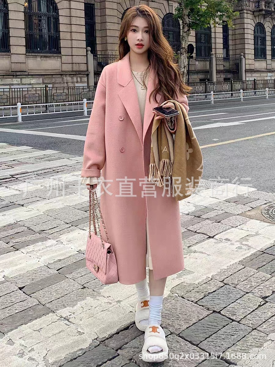 高品质羊毛呢外套女装新款时尚中长款双面呢子大衣直播外贸批发