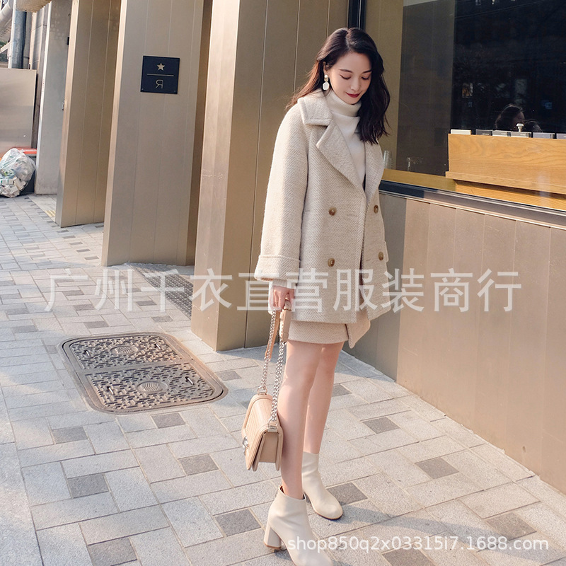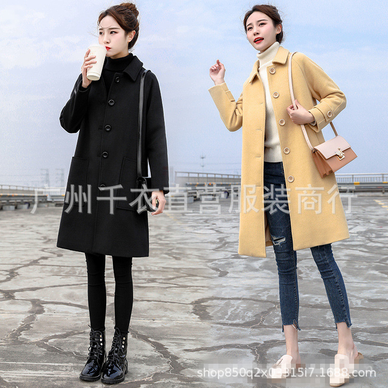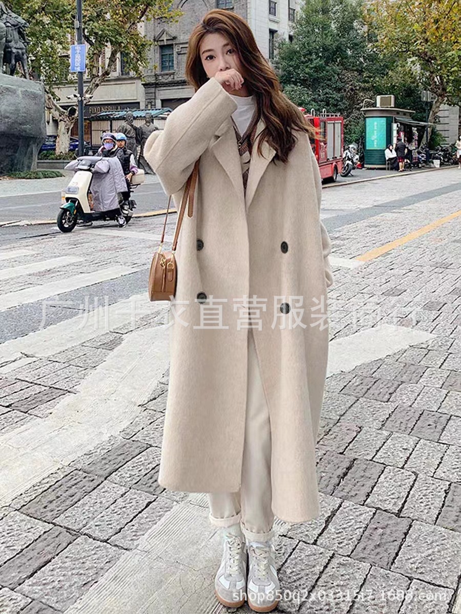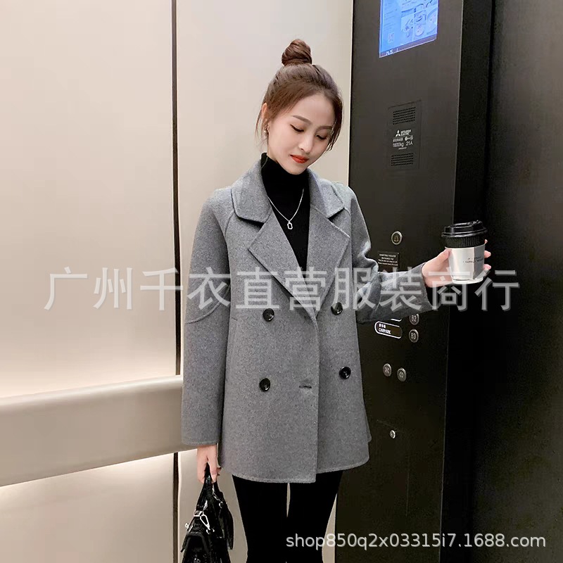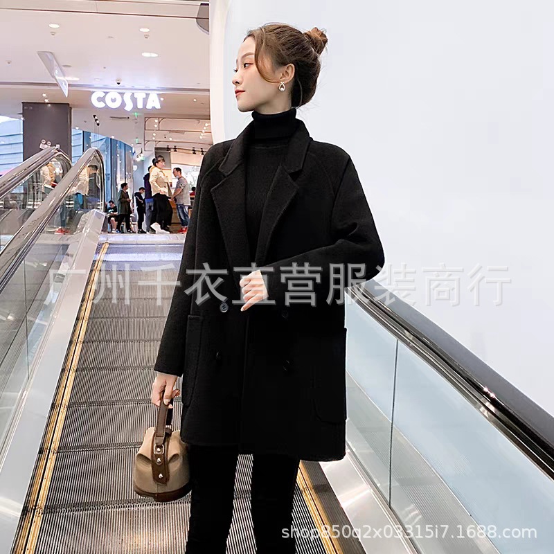 高品质羊毛呢外套女装新款时尚中长款双面呢子大衣直播外贸批发