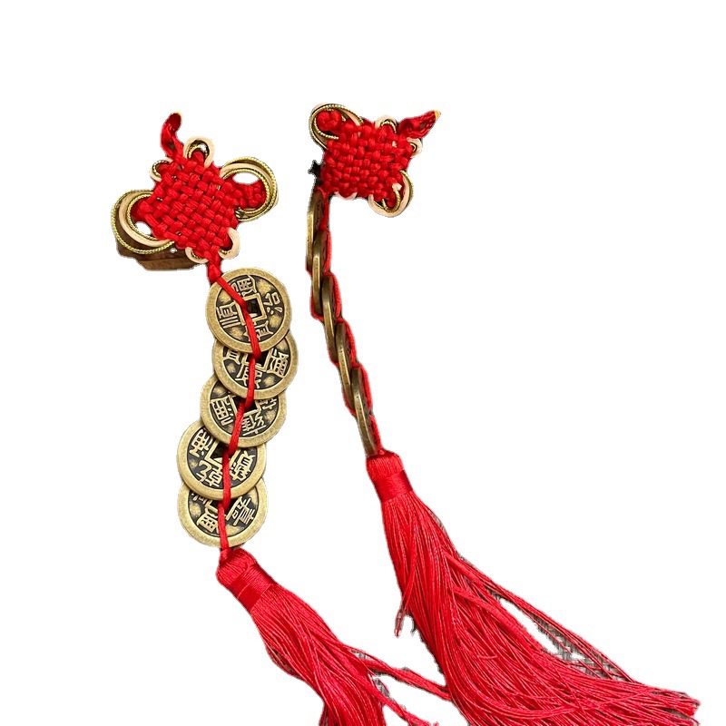 五帝铜钱挂件 彩色中国结铜钱古钱币挂件 五帝钱汽车内饰挂件