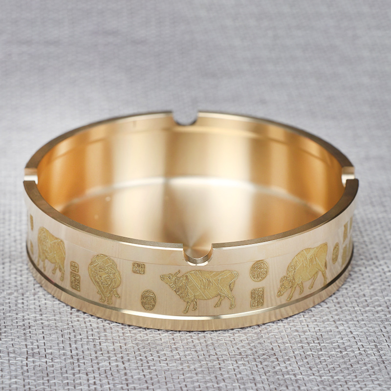 桌面小摆件烟灰缸书房装饰品 办公室家用车载黄铜工艺品摆件批发