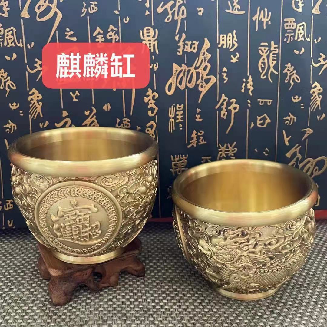 铜制浮雕铜缸貔貅缸铜钱银元仿古龙缸笔筒百福杯