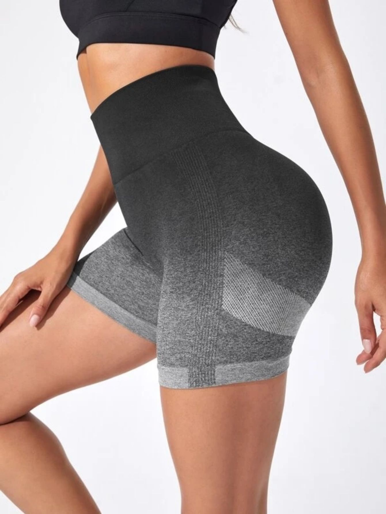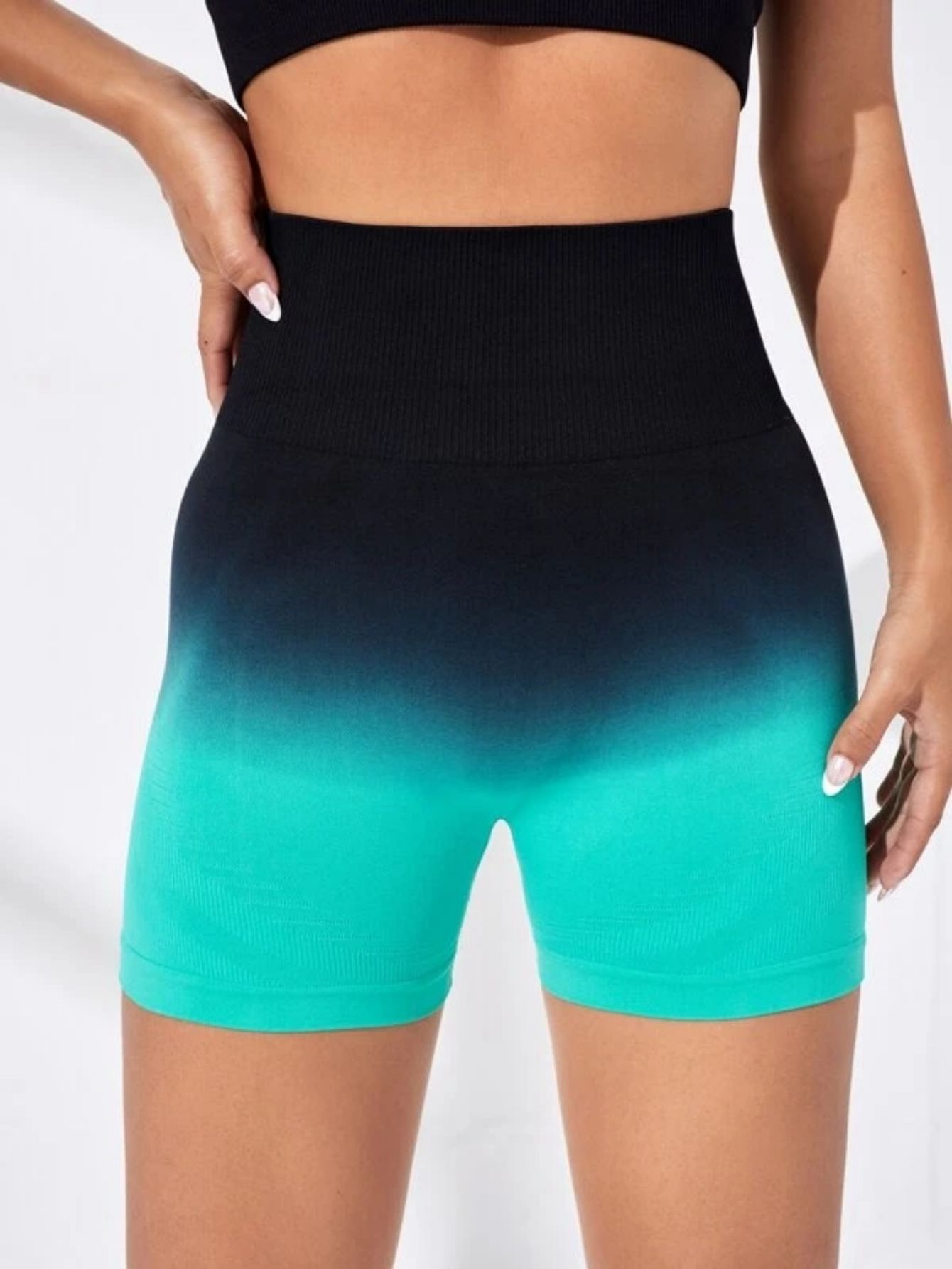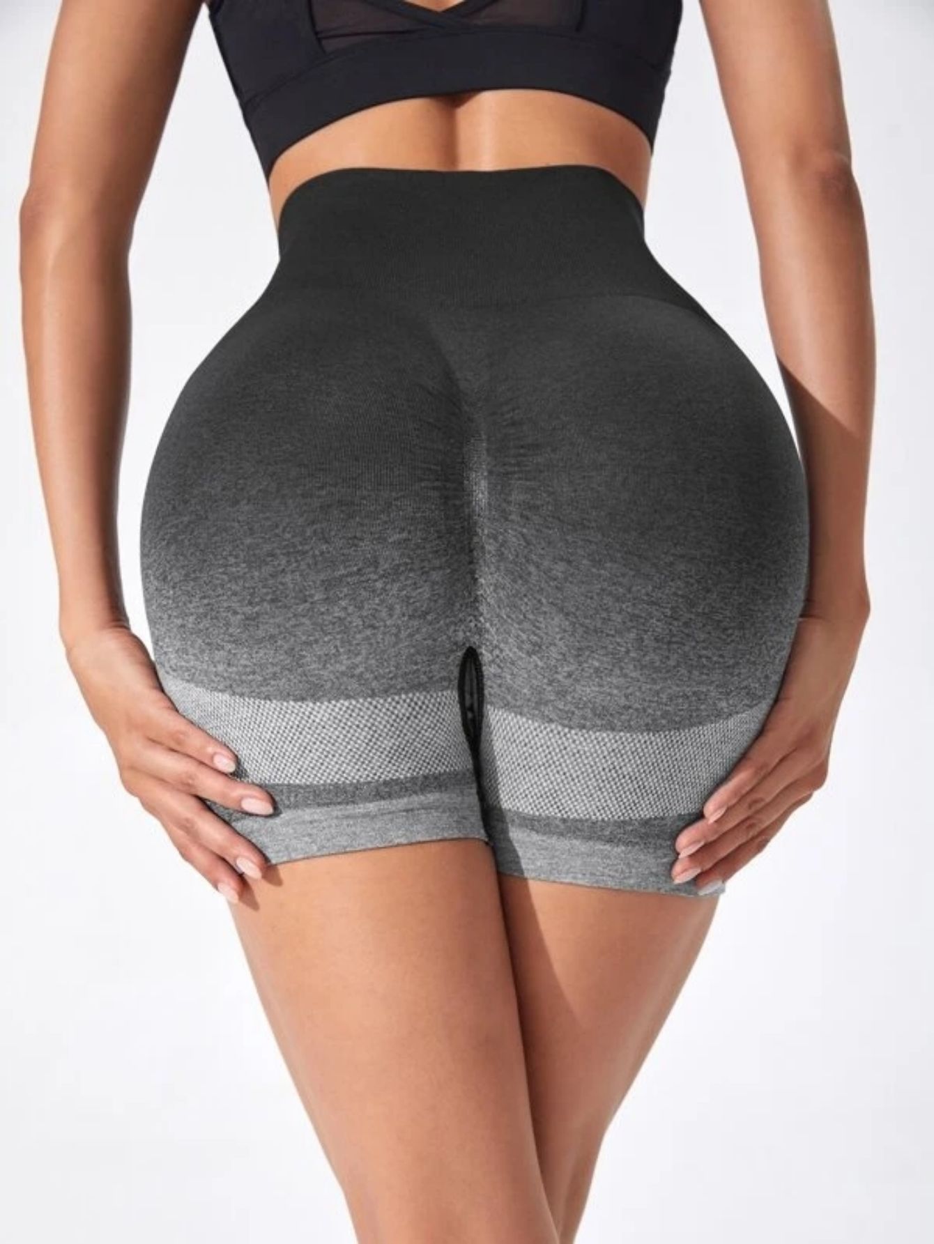 夏季欧美跨境高腰速干渐变瑜伽裤女紧身运动训练短裤三分