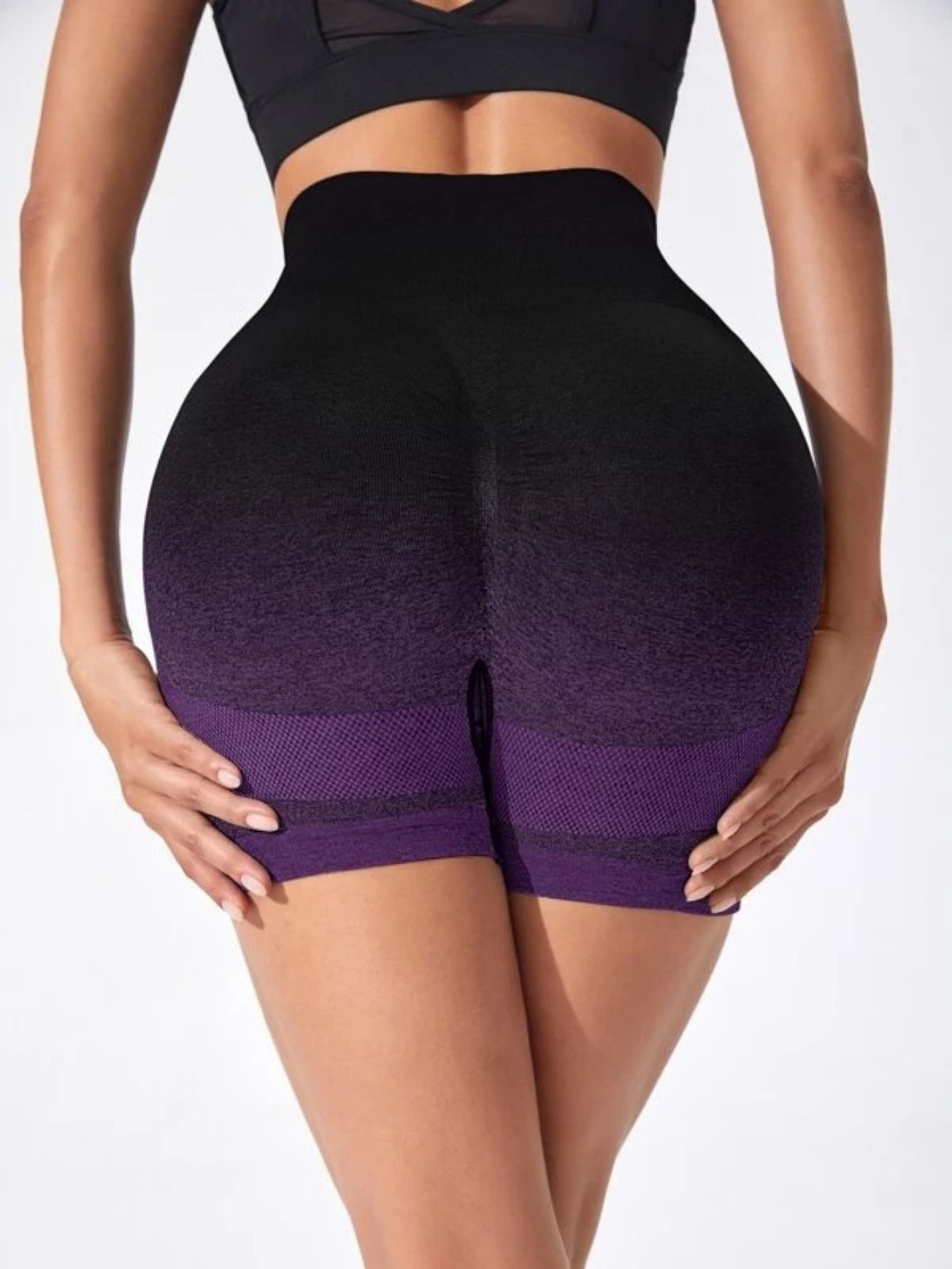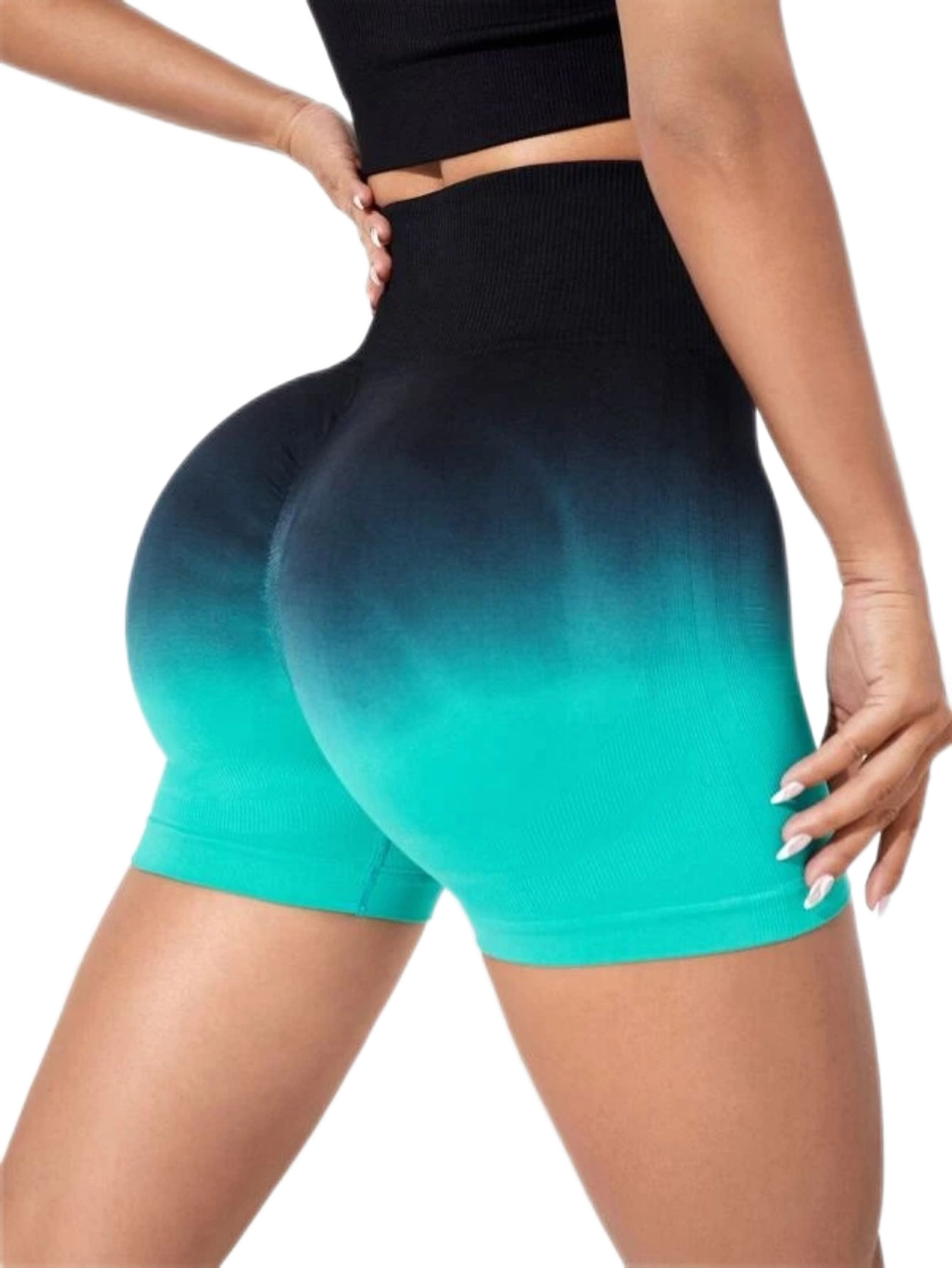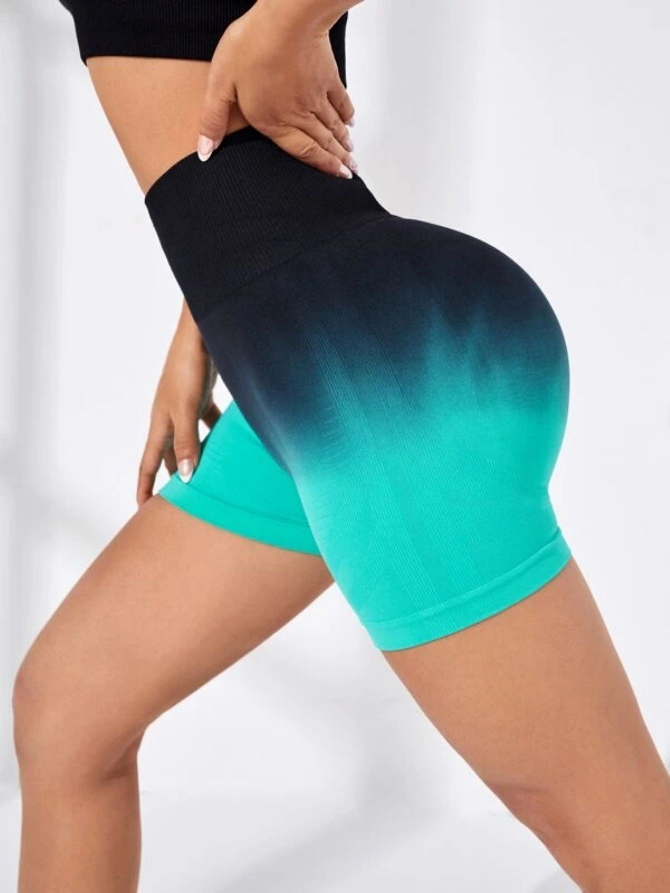 夏季欧美跨境高腰速干渐变瑜伽裤女紧身运动训练短裤三分