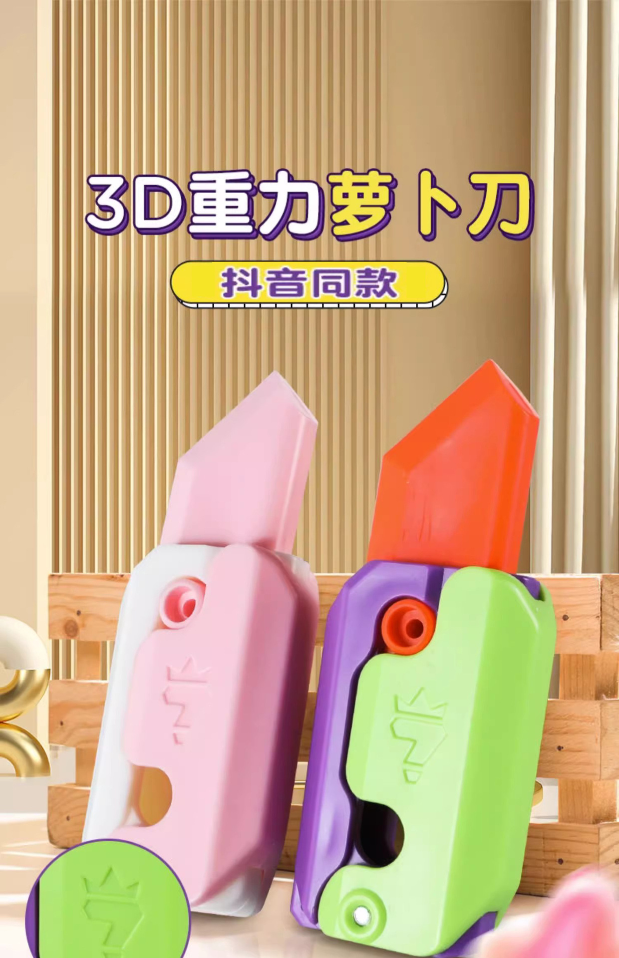 会发光的玩具夜光萝卜刀3D重力萝卜刀推牌小胡萝卜梳子带3C