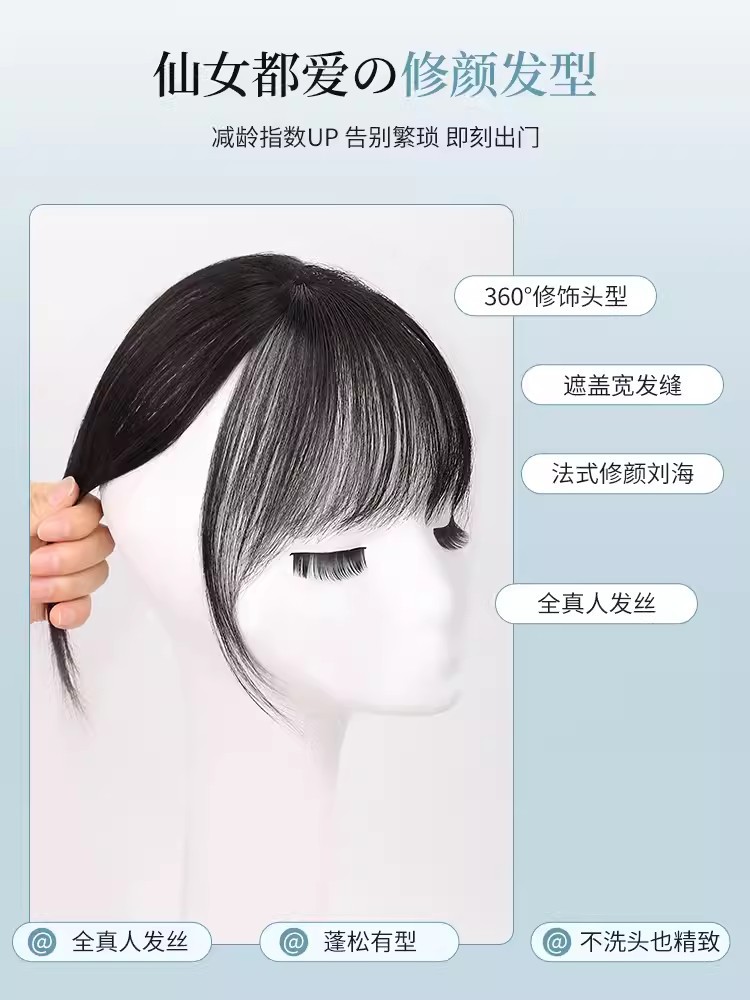 空气刘海假发女自然前额3d法式假刘海全真人发无痕轻薄头顶补发片