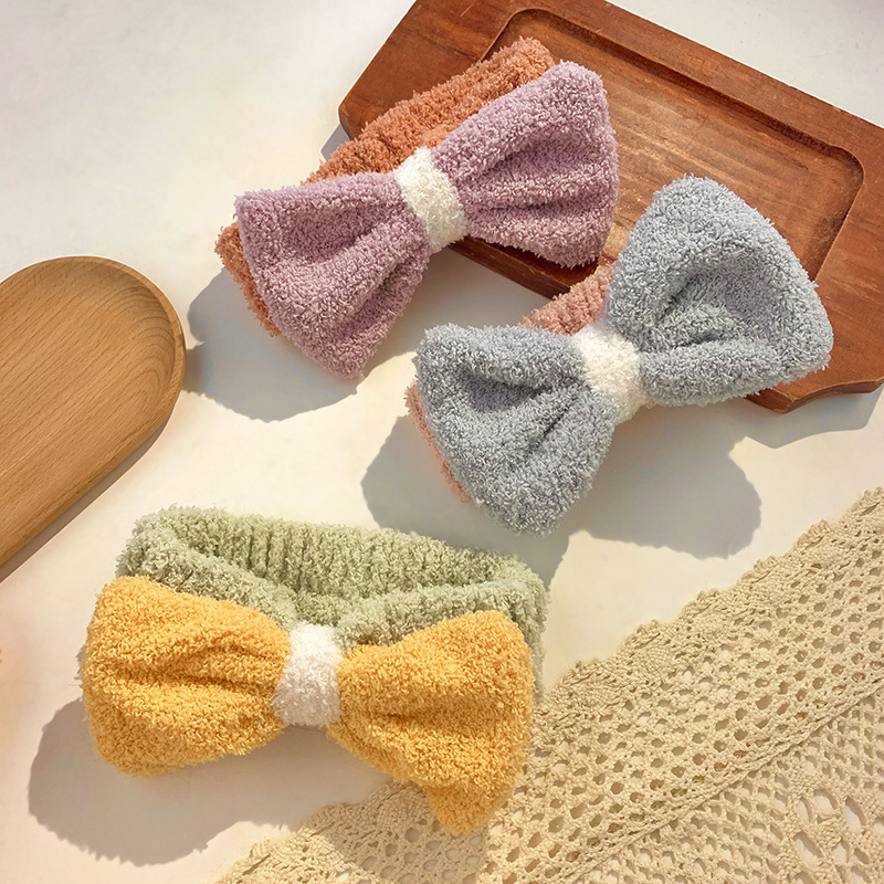 韩版可爱蝴蝶结发带洗脸面膜束发带家居头箍潮流拼接发饰头饰
