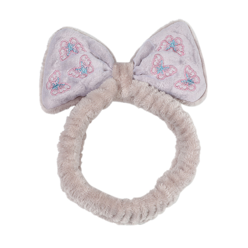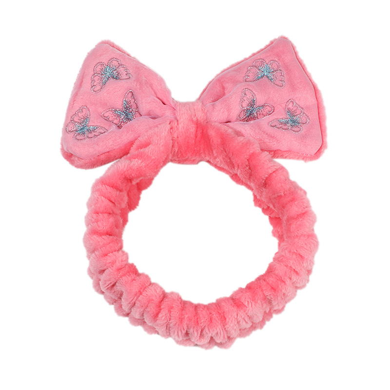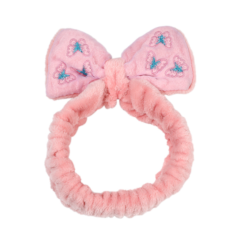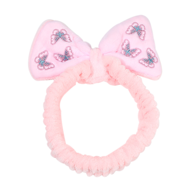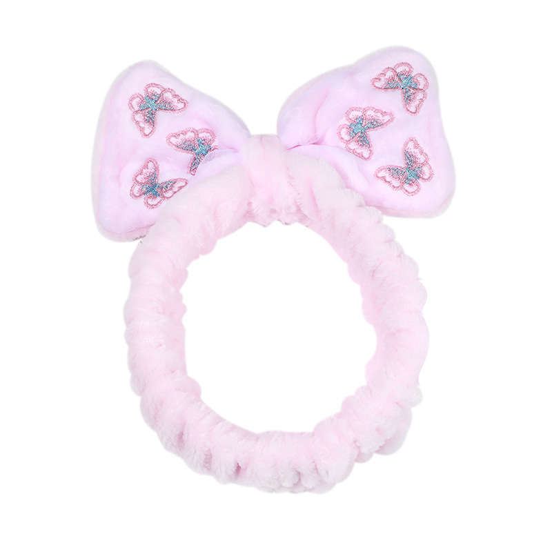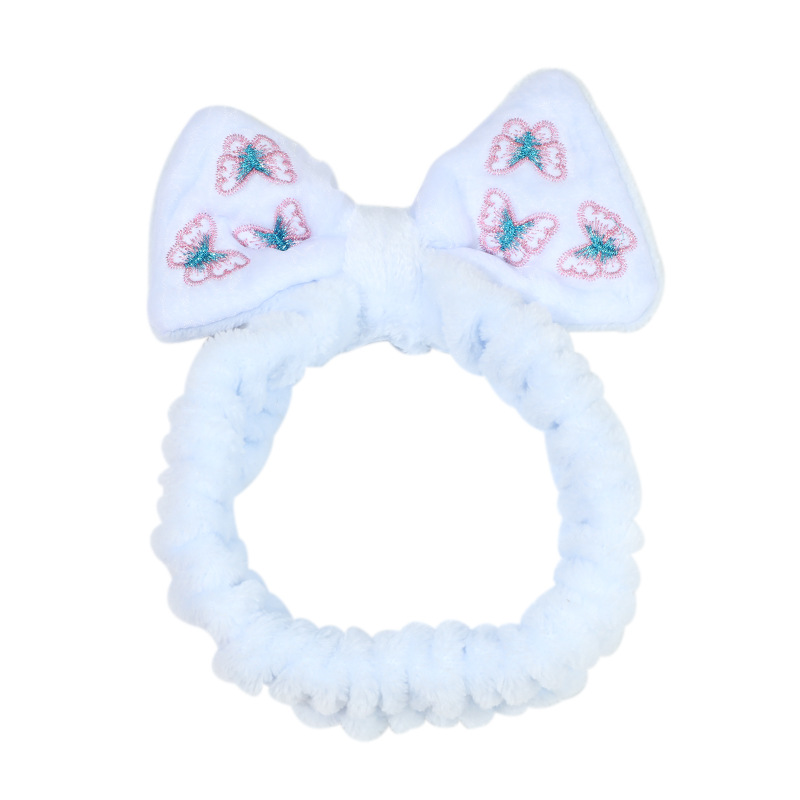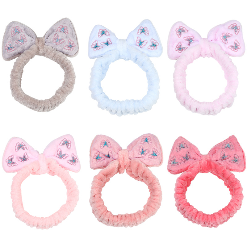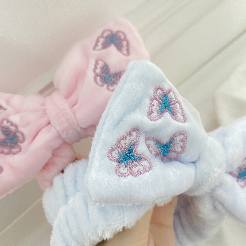 日韩精美刺绣蝴蝶结发带跨境女生化妆洗脸出行可爱蝴蝶毛绒束发带