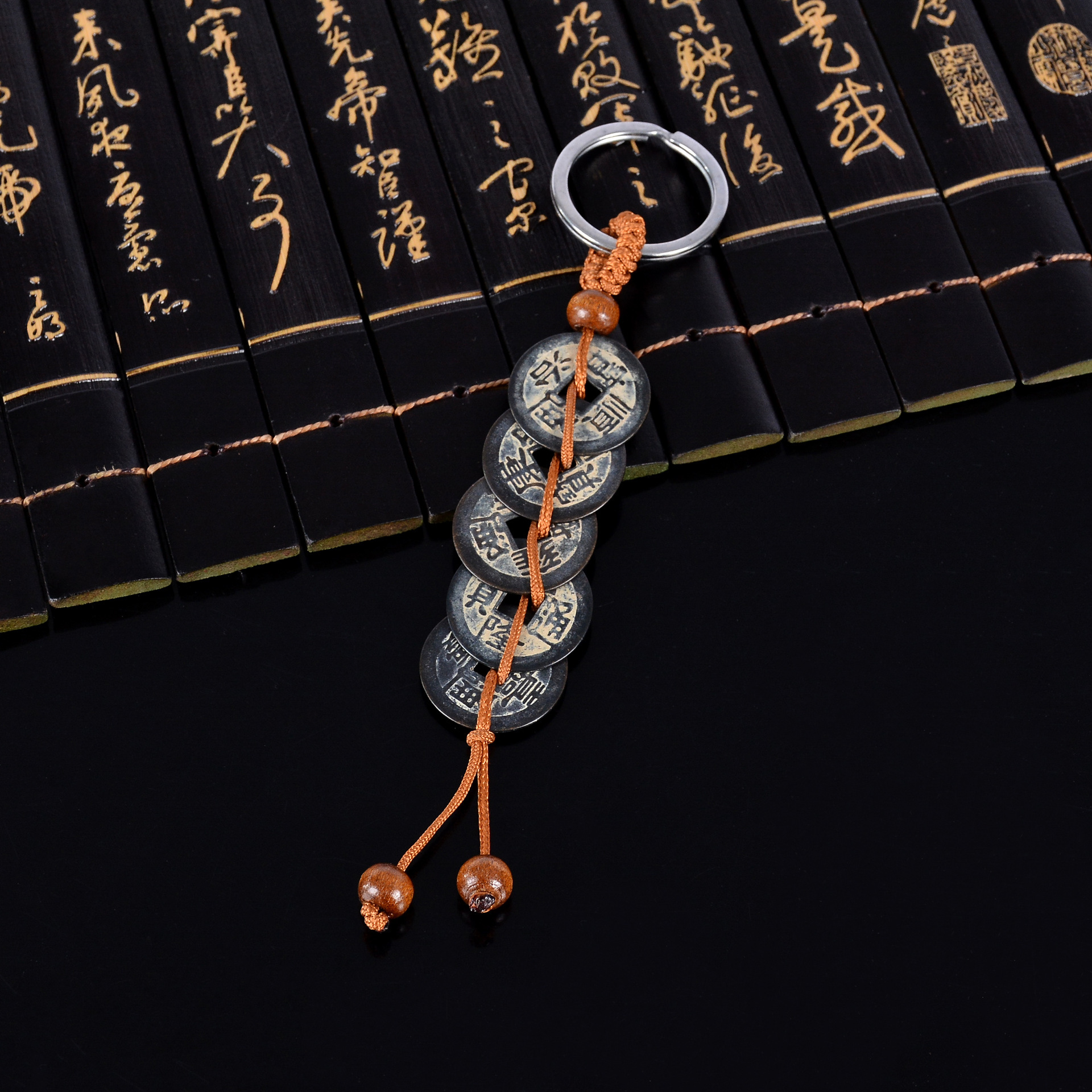 仿古铜钱钥匙扣高仿五帝钱挂饰黑铜钱汽车挂件挂饰厂家批发