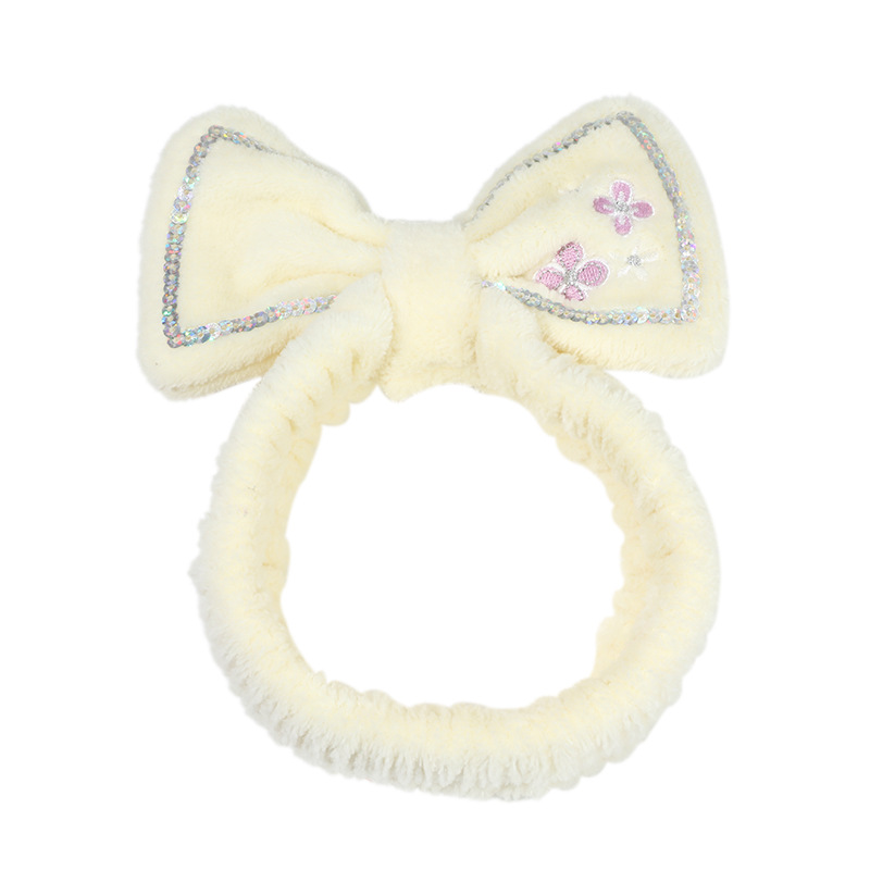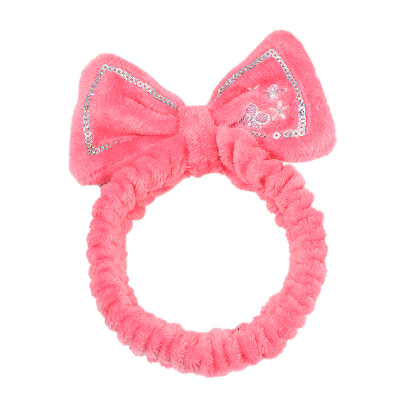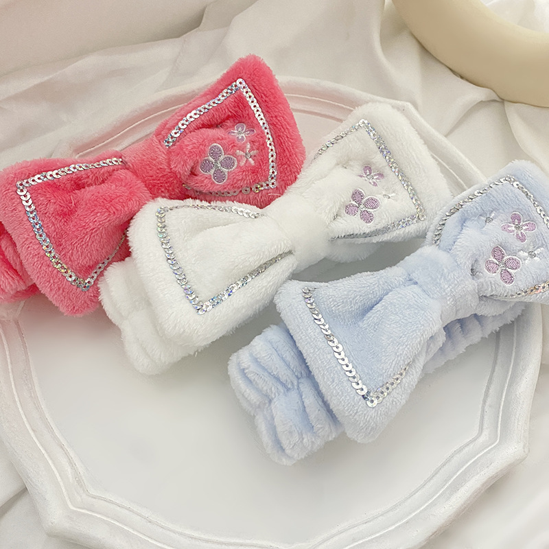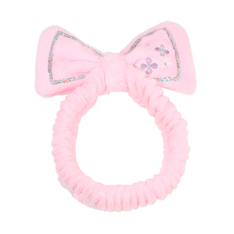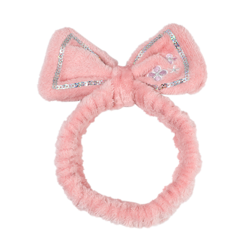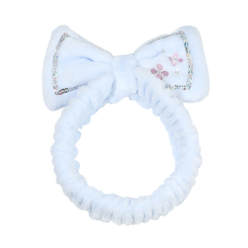 可爱小花蝴蝶结亮片束发带跨境弹力褶皱女士发带洗脸化妆儿童发饰