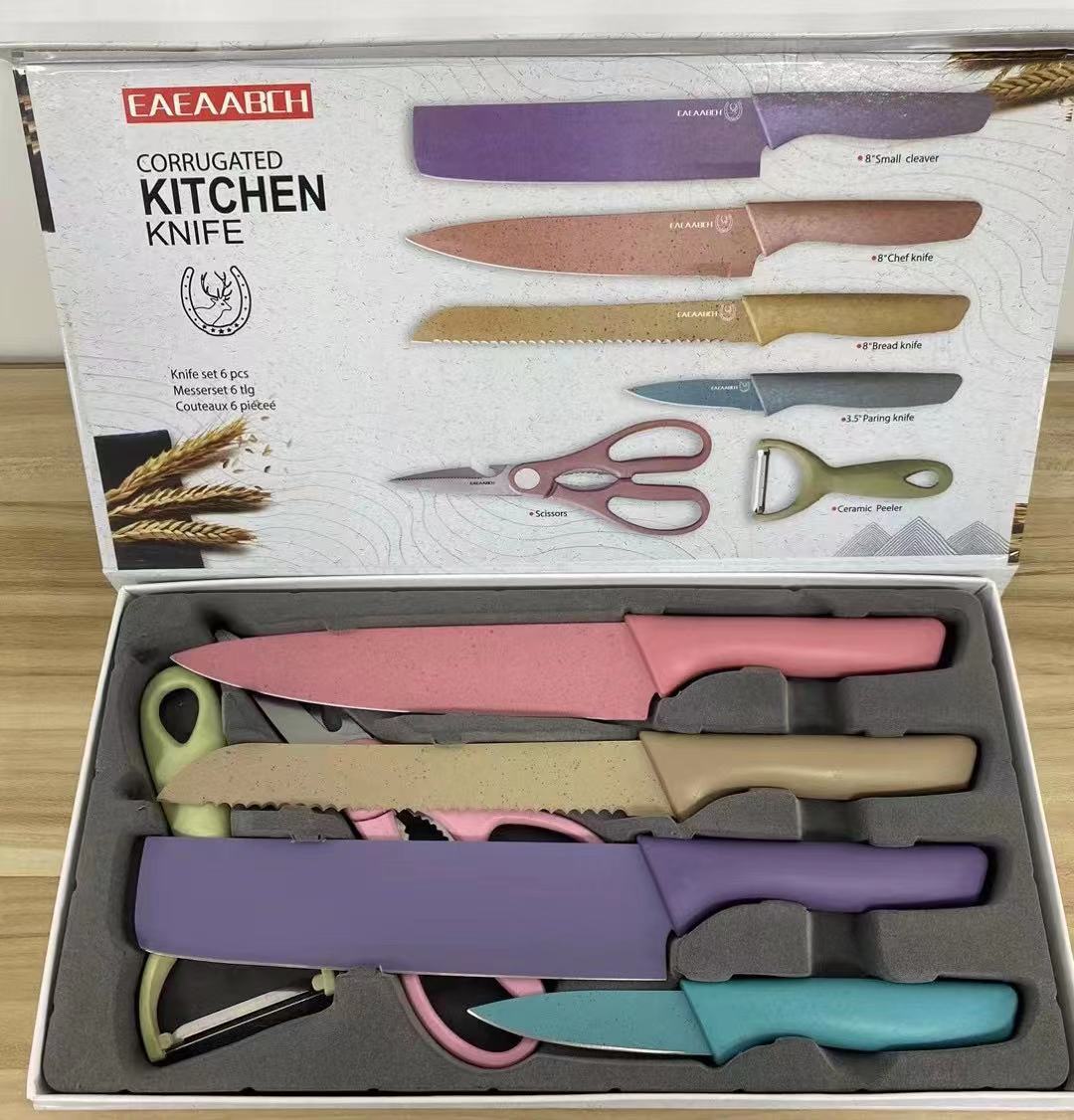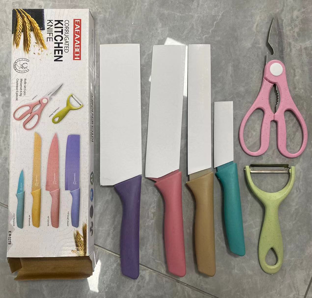 现货批小麦秸秆套刀彩色六件套礼品套装家用厨房刀具不锈钢网红刀
