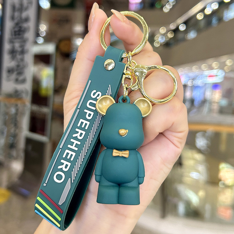 北欧领结熊钥匙扣创意可爱小熊暴力熊挂件车圈情侣书包挂饰批发