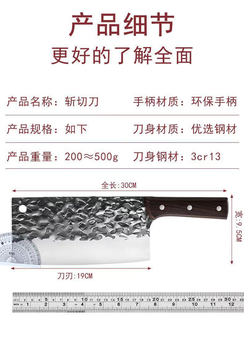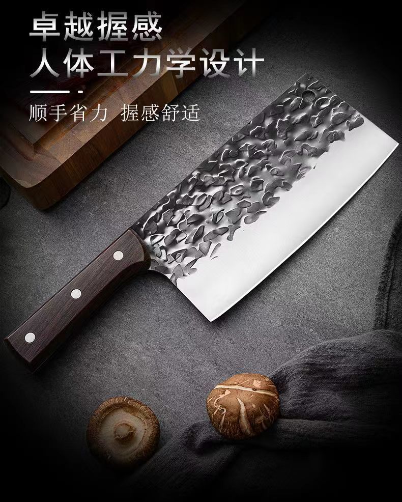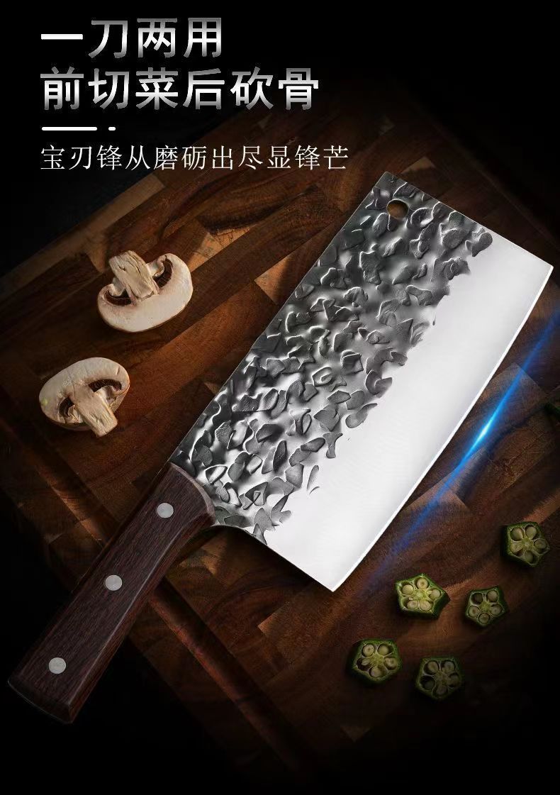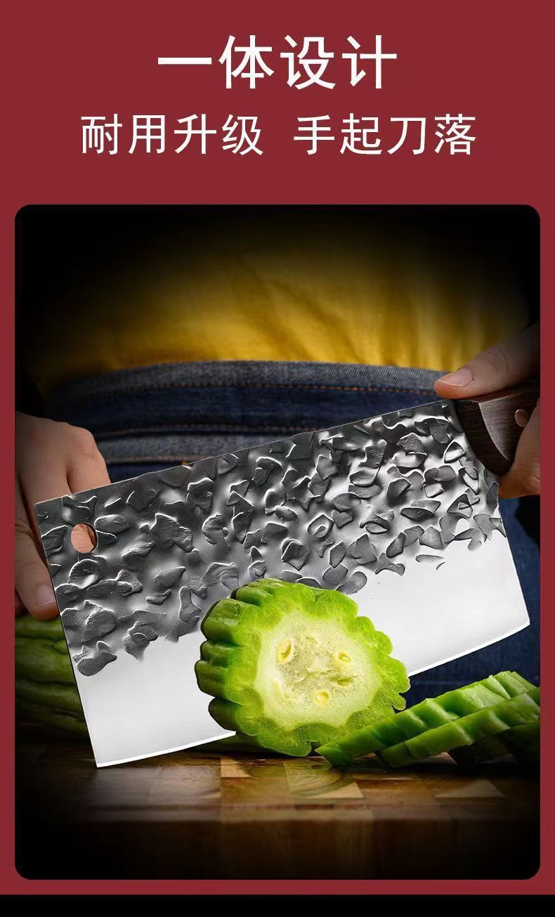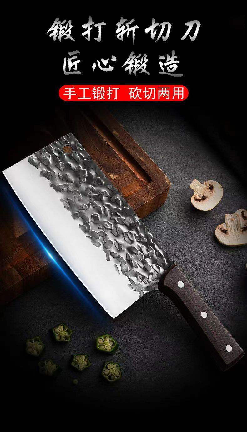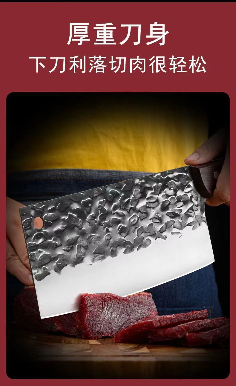 不锈钢菜刀家用切肉切片刀地摊跑江湖网红刀具锻打两用锋利斩切刀