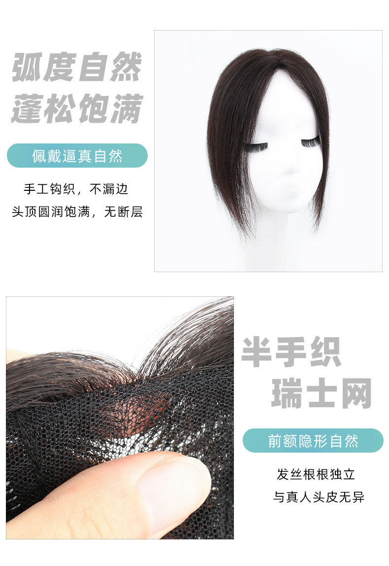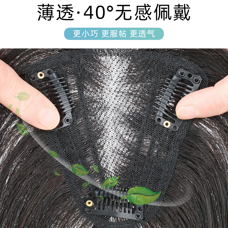假发片真发 瑞士网头顶补发片轻薄透气不压头遮白发 许昌假发女