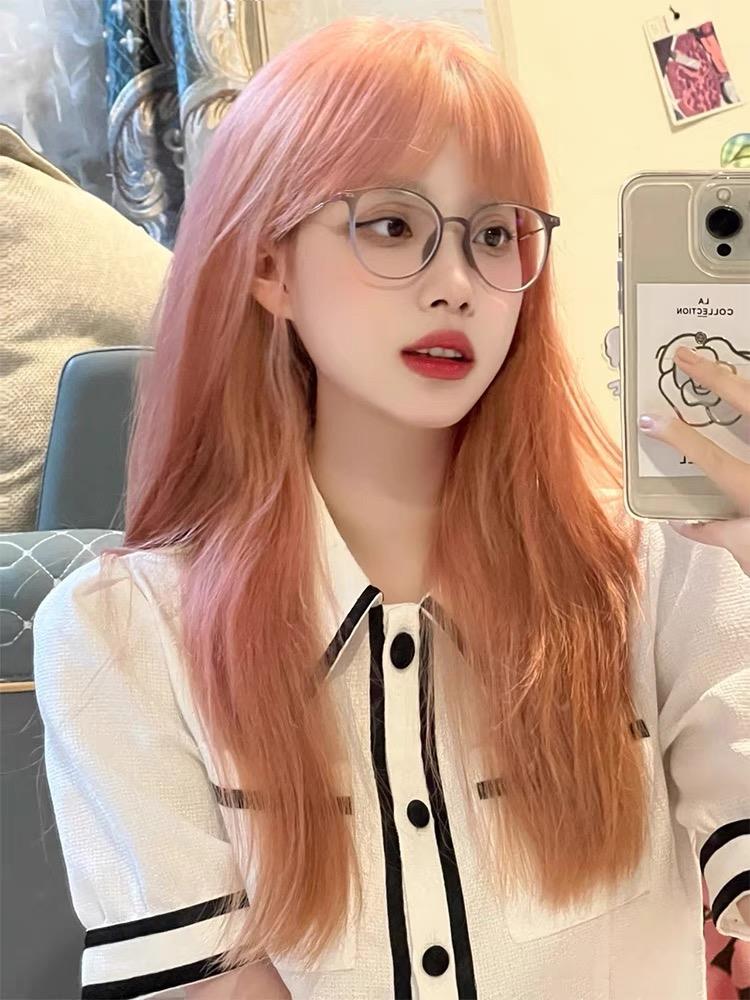 子岑西柚粉色假发女自然全头套式lolita蓬松长直发网红新款时尚