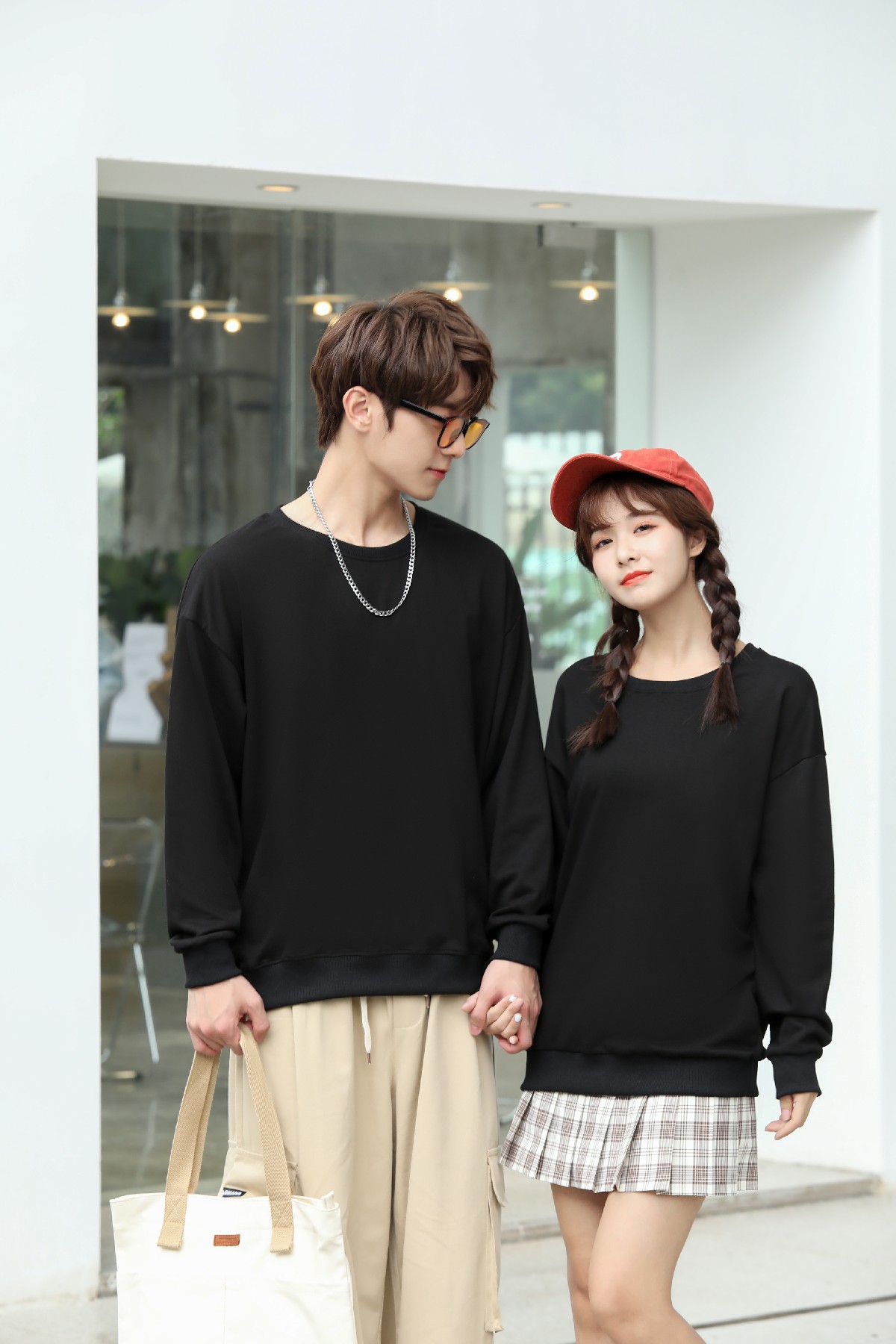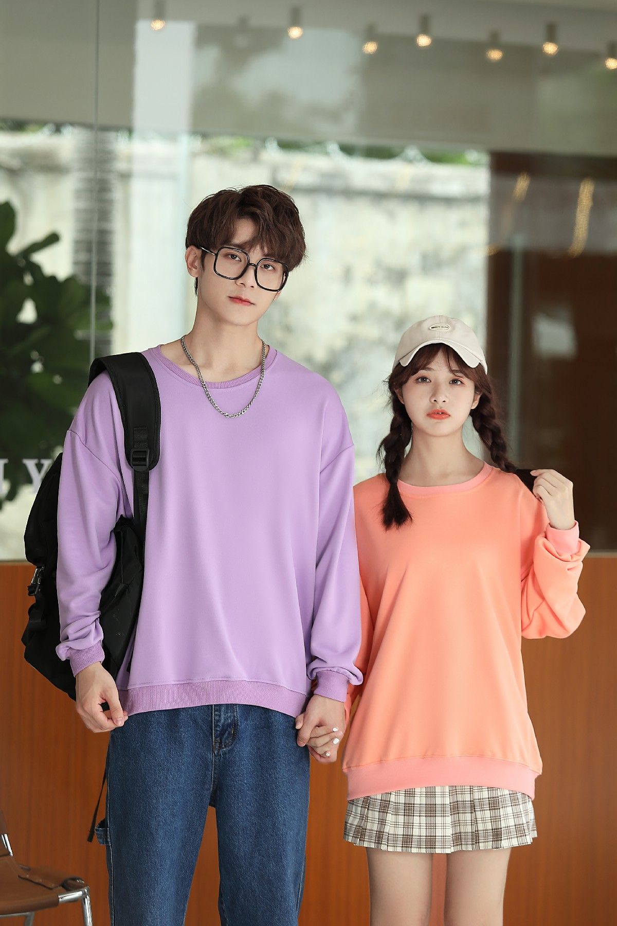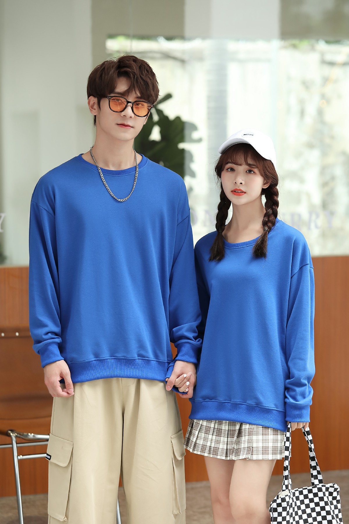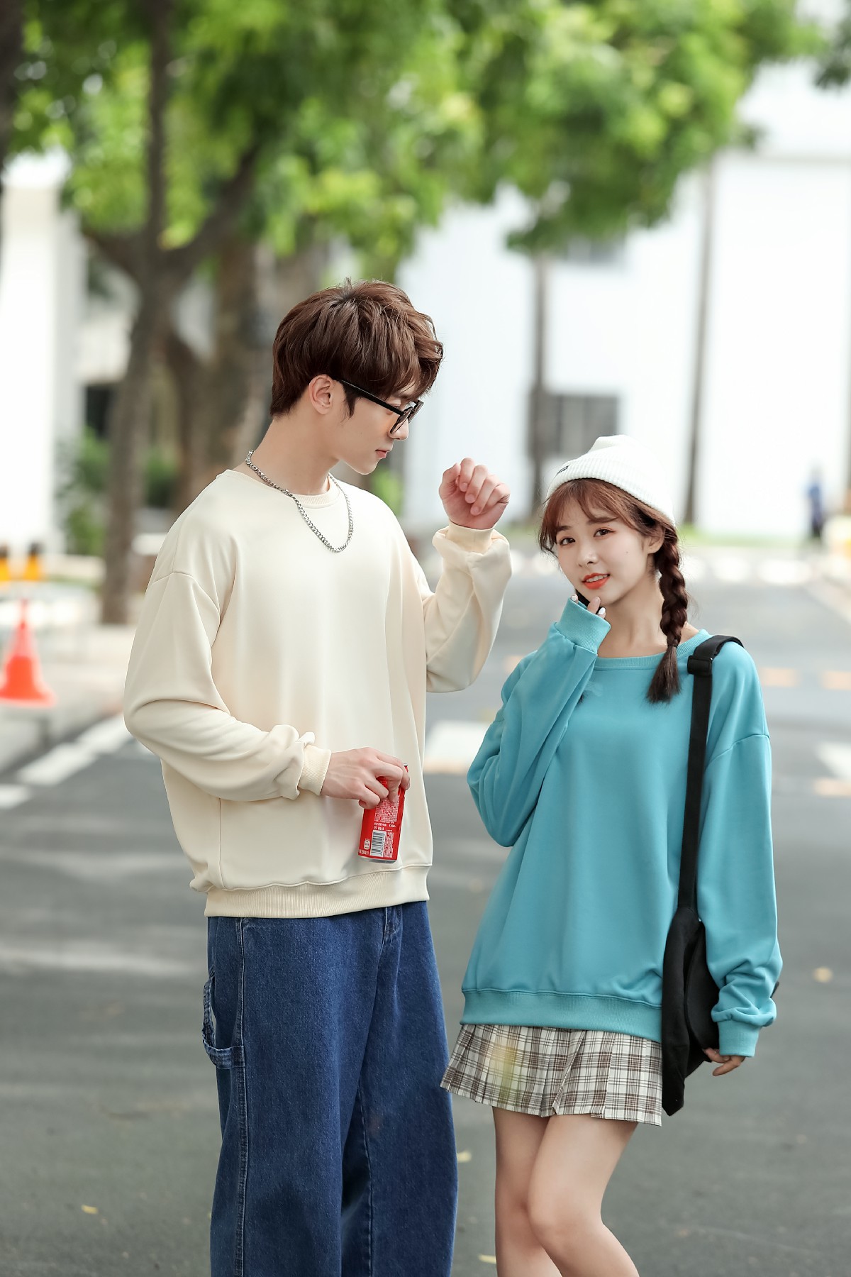 厂家批发纯色圆领落肩宽松卫衣男女款潮空白印logo定 制工作服