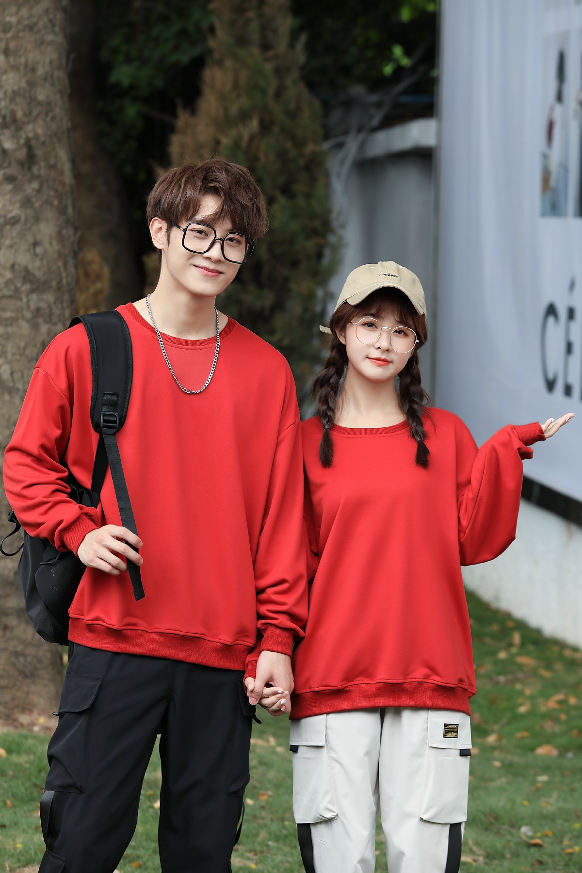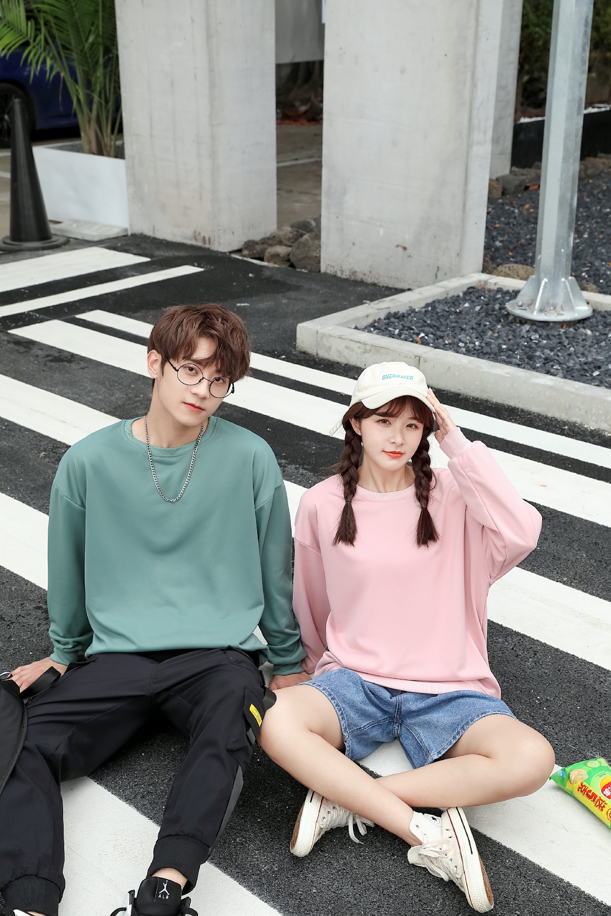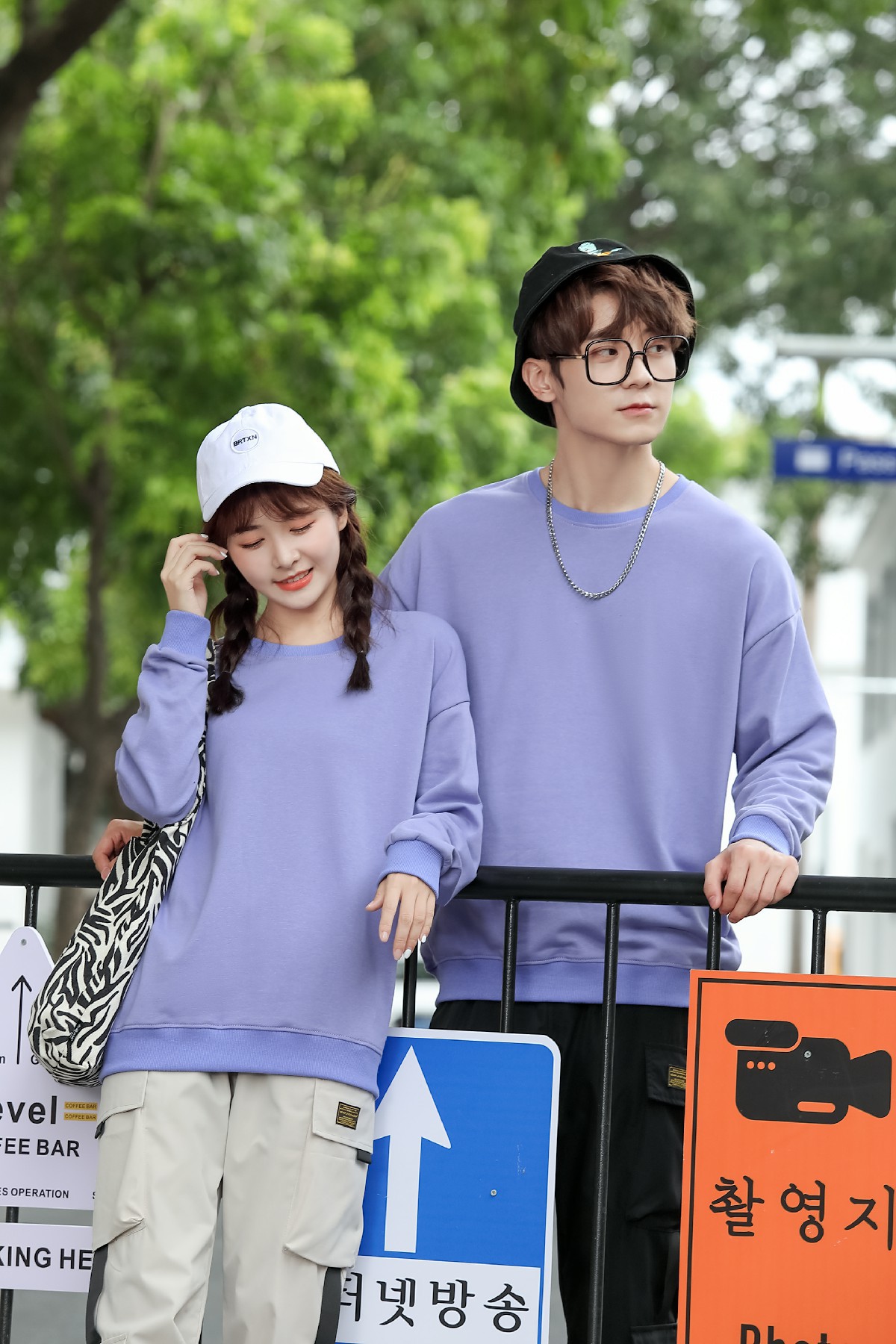 厂家批发纯色圆领落肩宽松卫衣男女款潮空白印logo定 制工作服