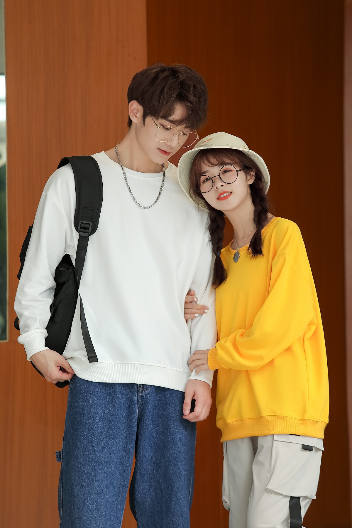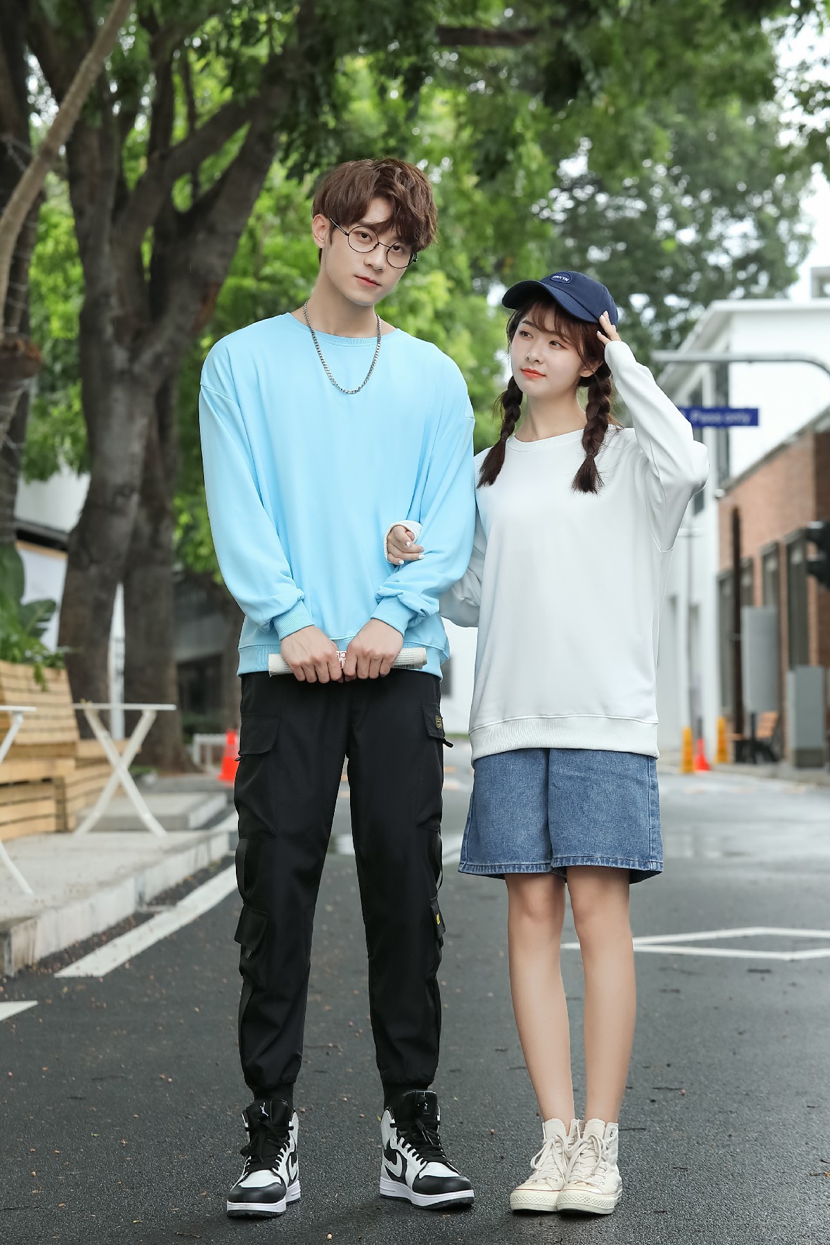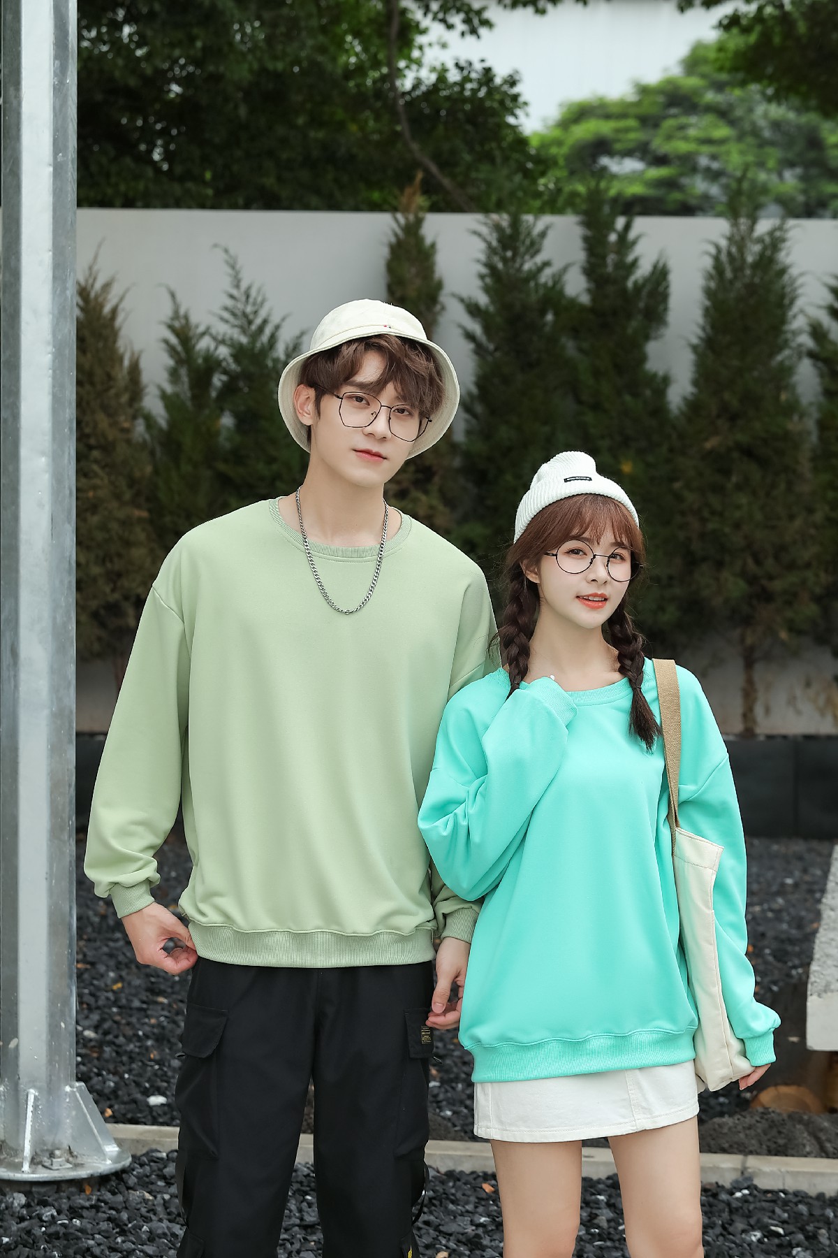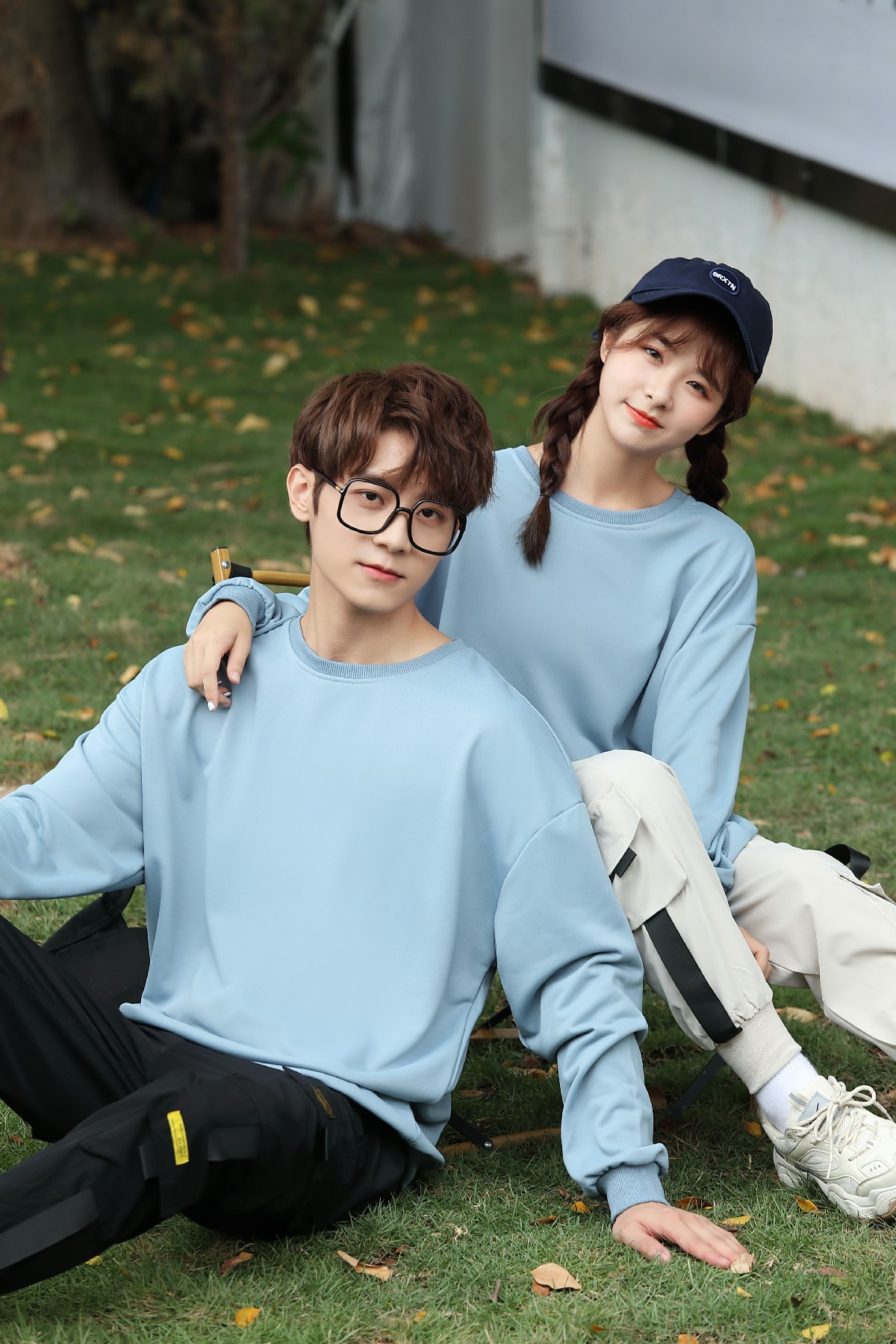 厂家批发纯色圆领落肩宽松卫衣男女款潮空白印logo定 制工作服