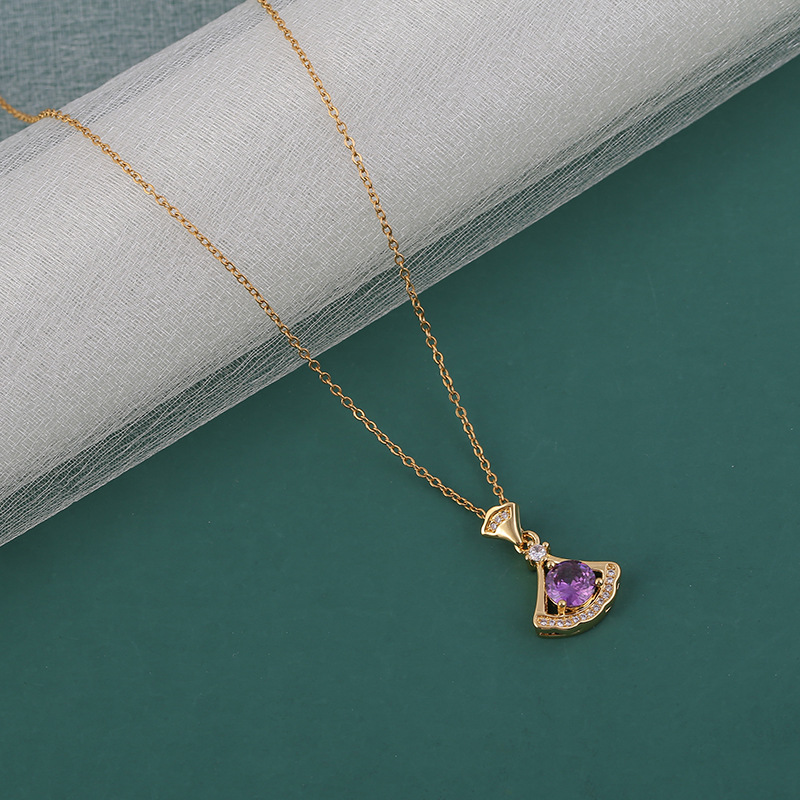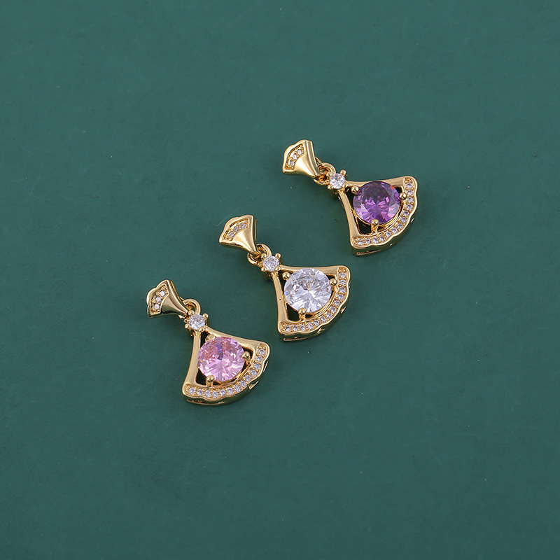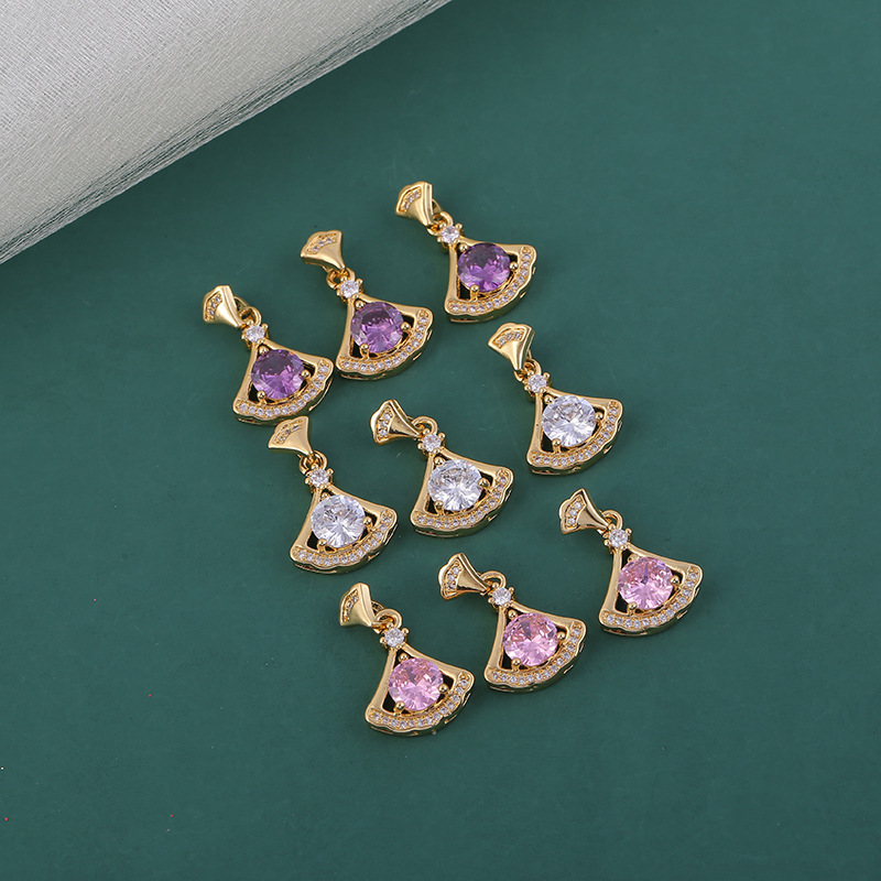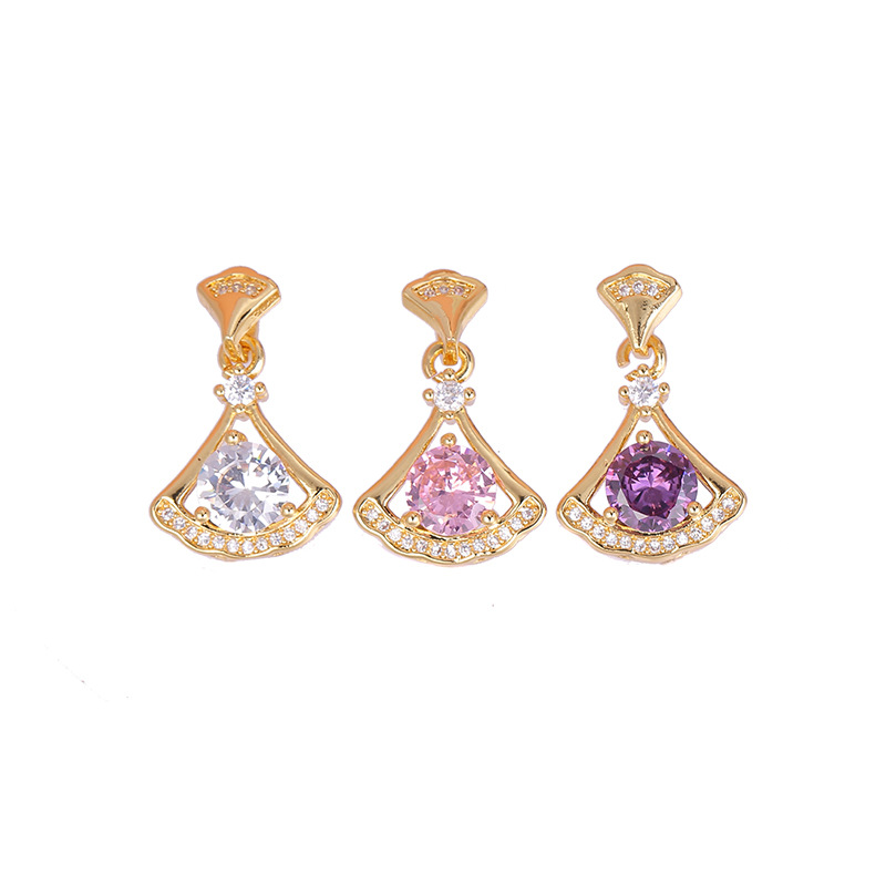 扇形吊坠配饰紫白粉三种颜色铜镀金锆石小裙子吊坠项饰时尚配件