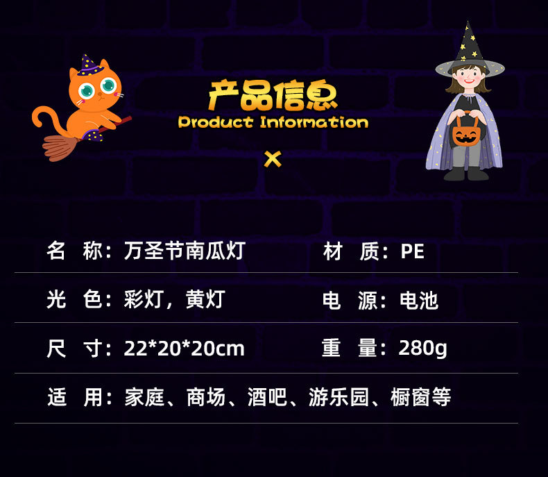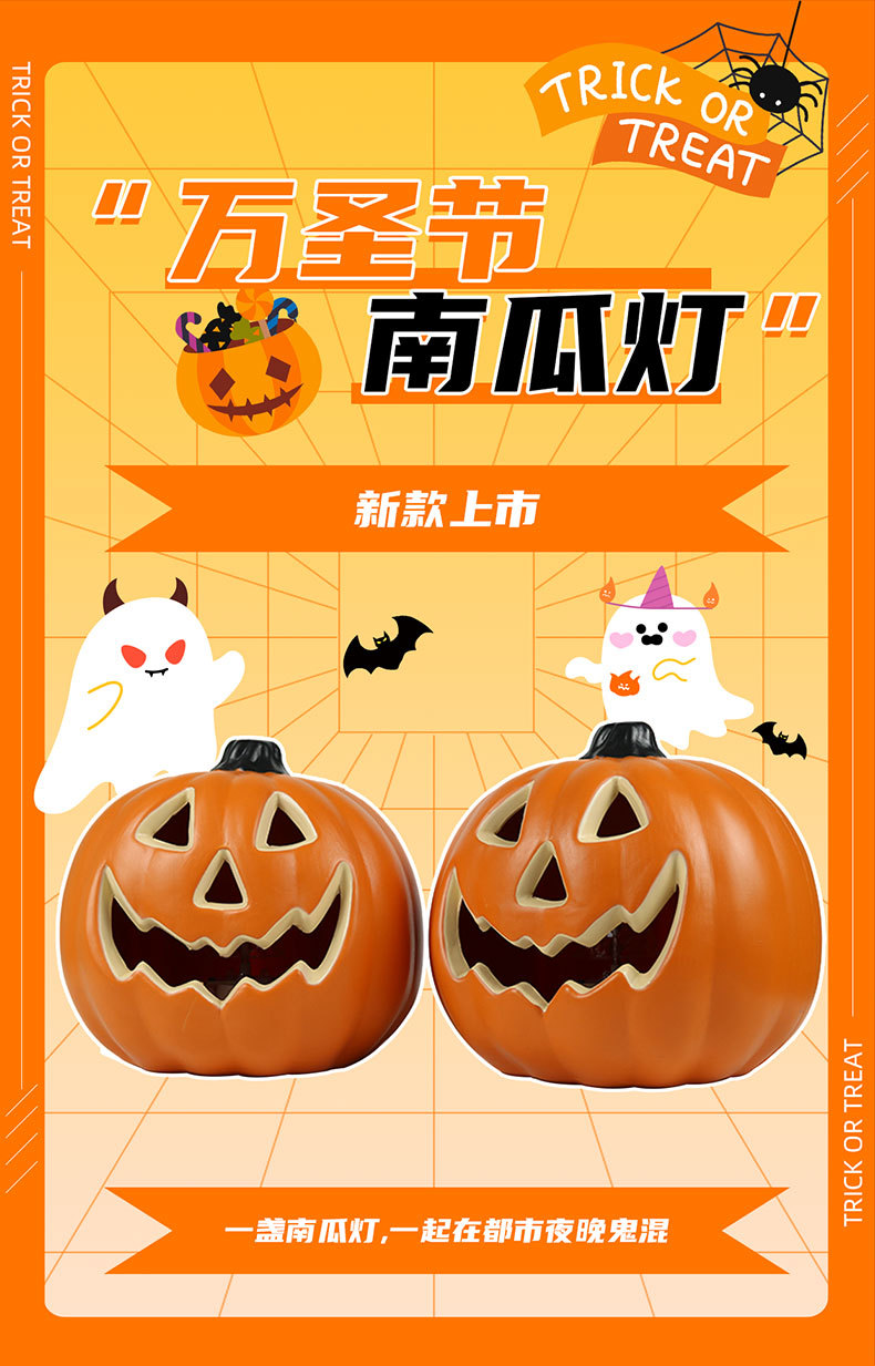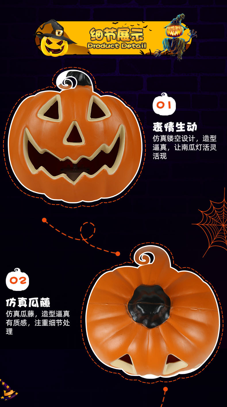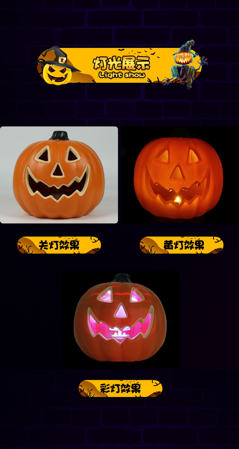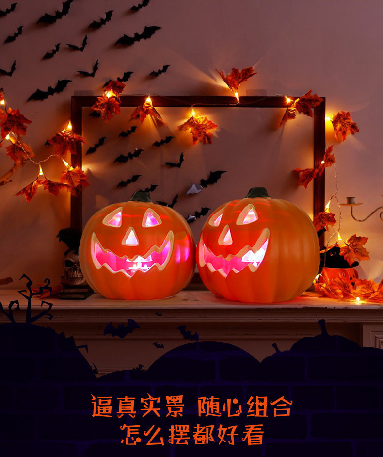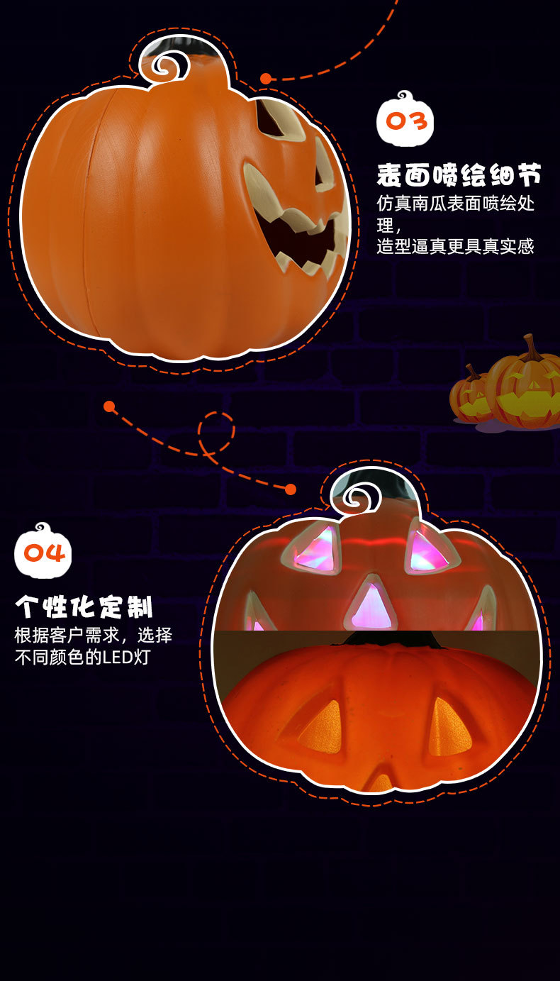 2023跨境新款万圣节装饰南瓜旋转七彩发光南瓜灯场景布置道具摆件