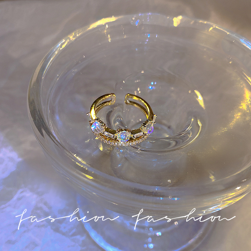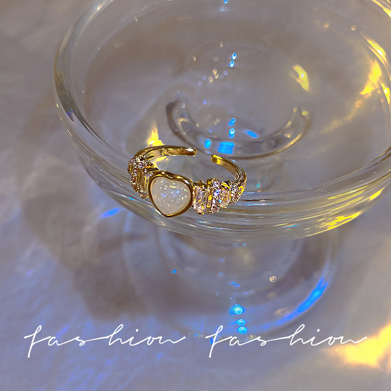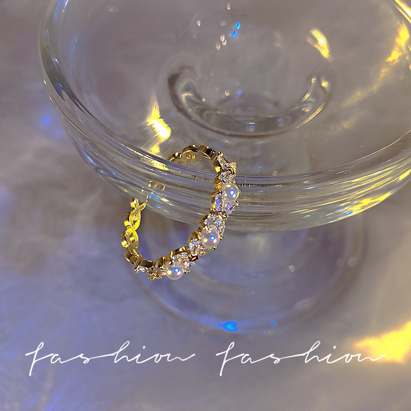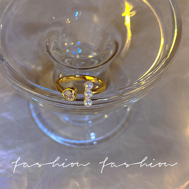 ins潮珍珠锆石戒指女高级感小众气质开口食指环轻奢复古手饰批发