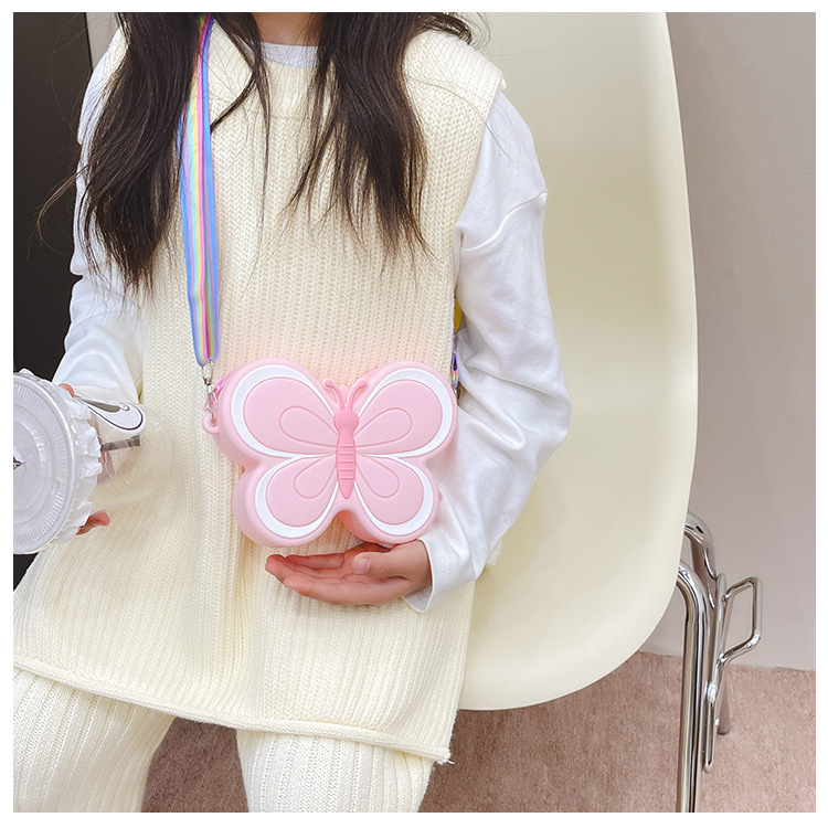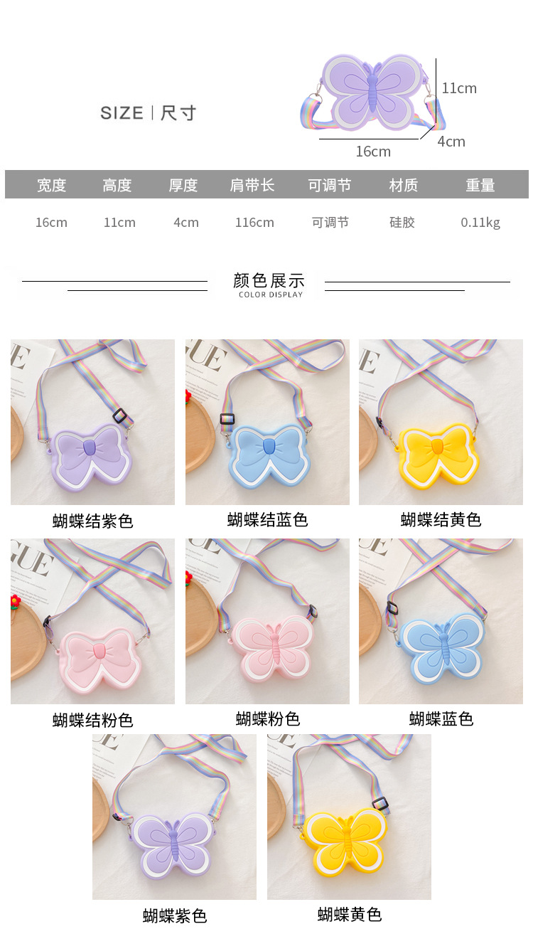 跨境儿童硅胶包 可爱蝴蝶单肩包ins风糖果色蝴蝶结包包女童斜跨包